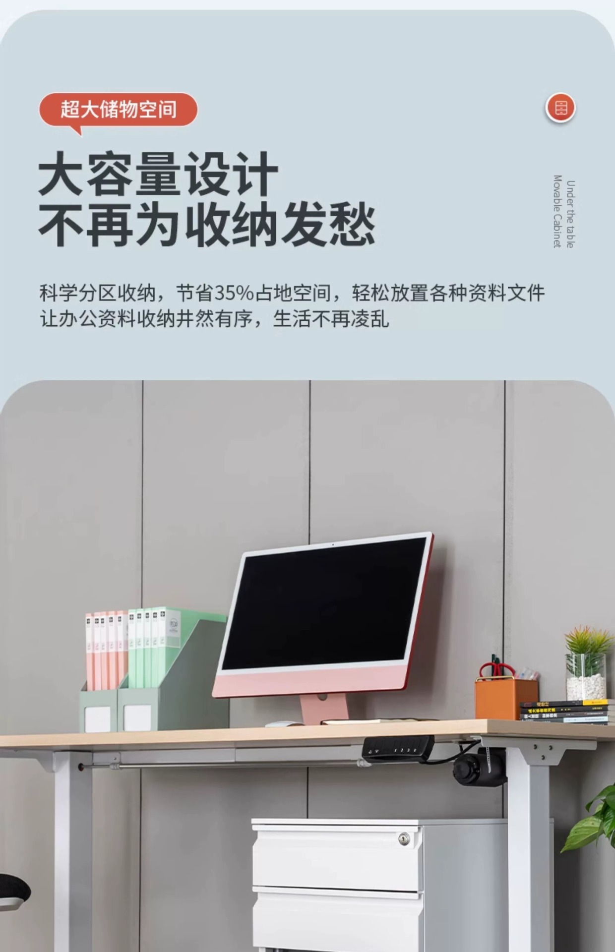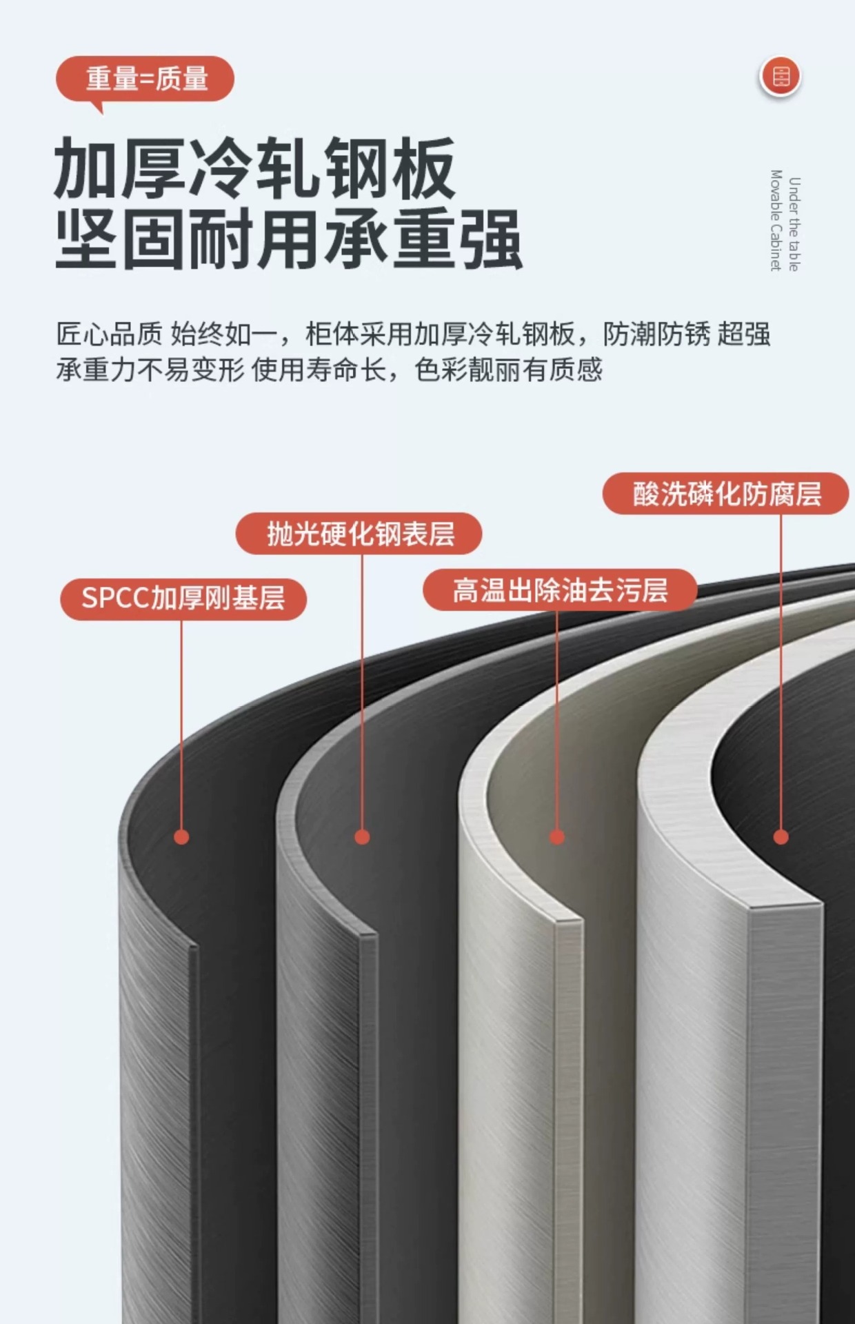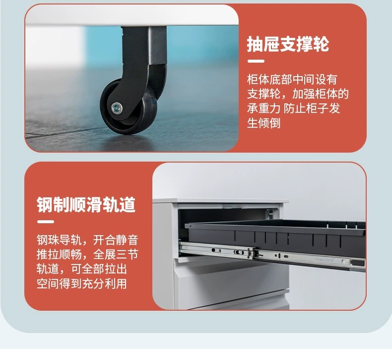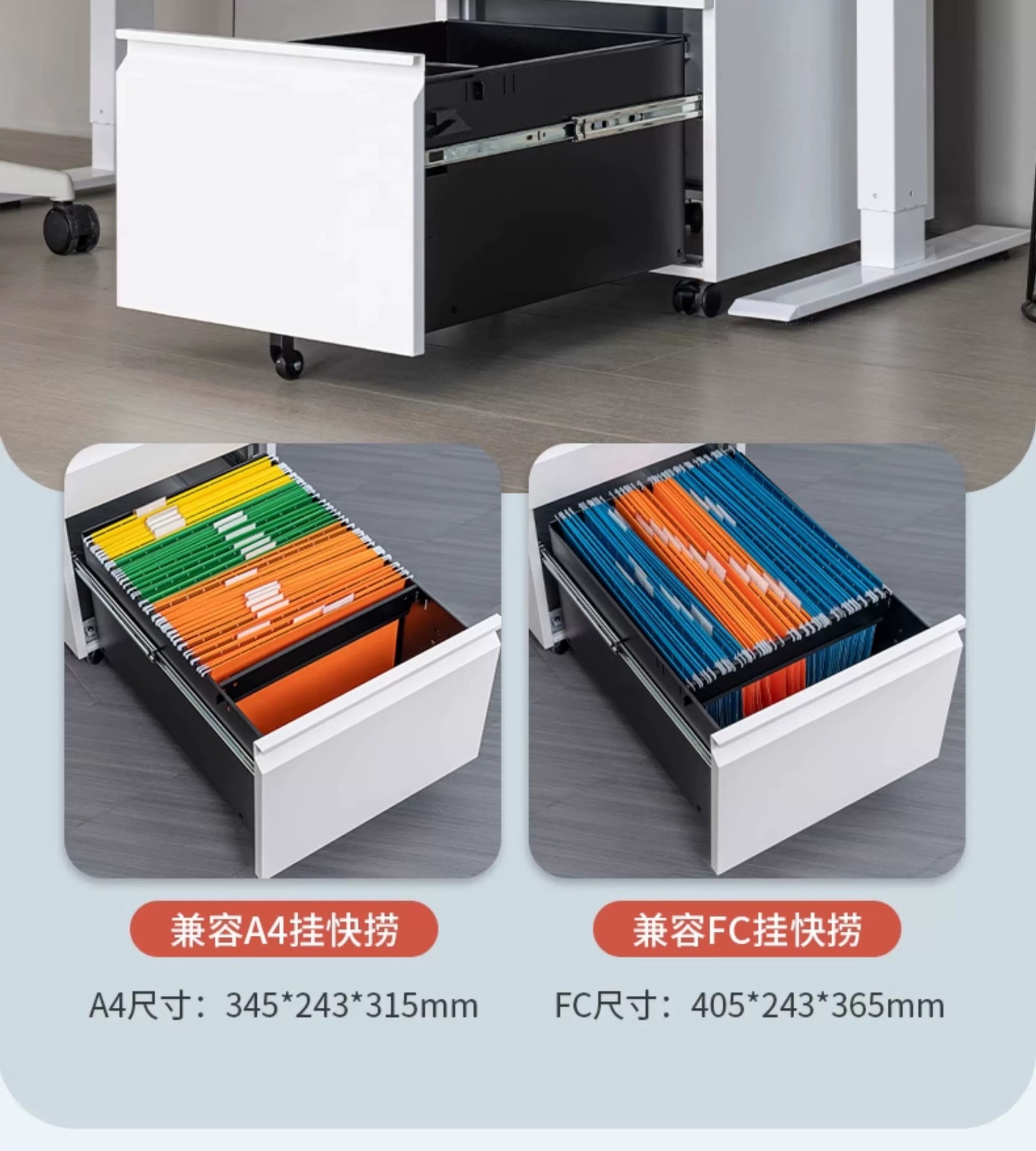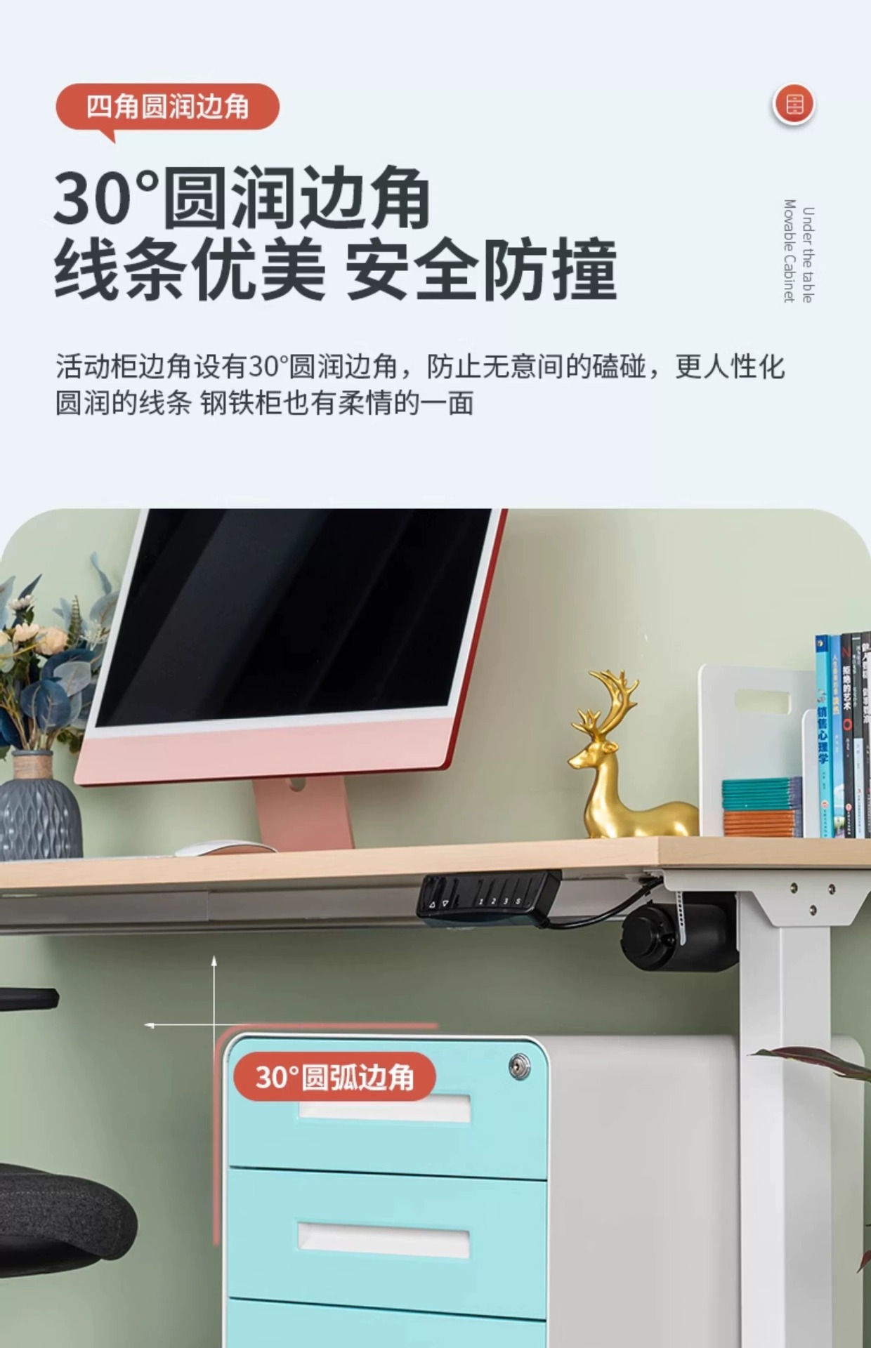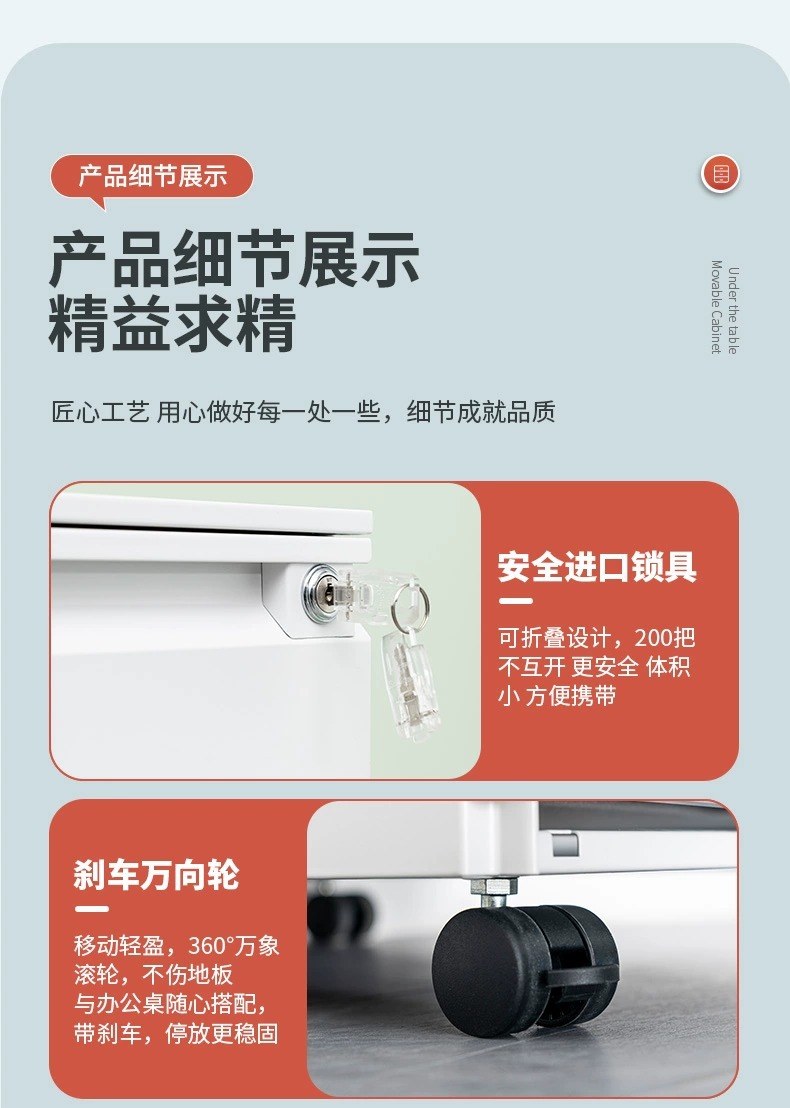 办公活动柜桌下档案资料矮柜密码带锁储物柜三抽带轮子铁皮文件柜