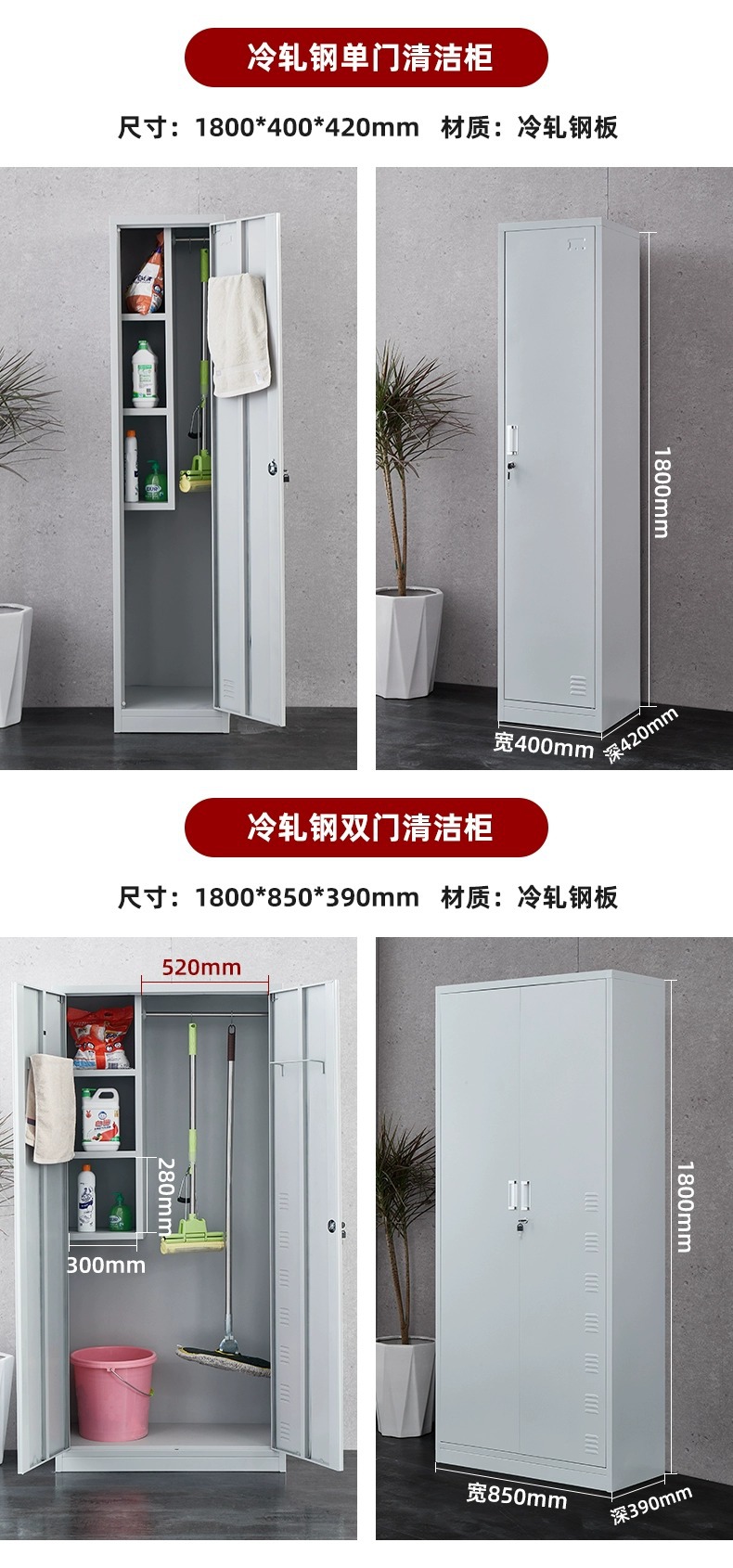 不锈钢清洁柜卫生工具收纳柜教室保洁柜扫把拖把存放柜阳台杂物柜