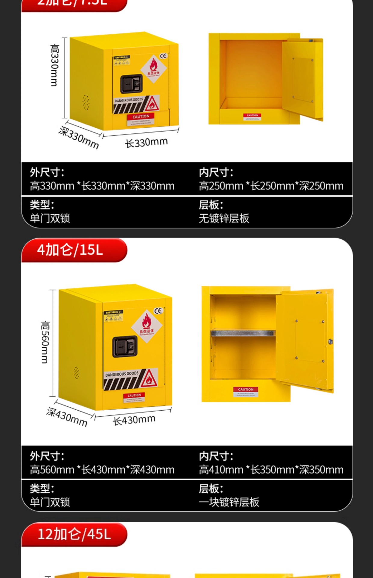 | Colores | Armario a prueba de explosiones de 4 galones,Gabinete a prueba de explosiones de 12 galones,Gabinete a prueba de explosiones de 22 galones,Armario a prueba de explosiones de 30 galones,Armario a prueba de explosiones de 45 galones,Armario a prueba de explosiones de 60 galones,Armario a prueba de explosiones de 90 galones,Armario a prueba de explosiones de 110 galones |