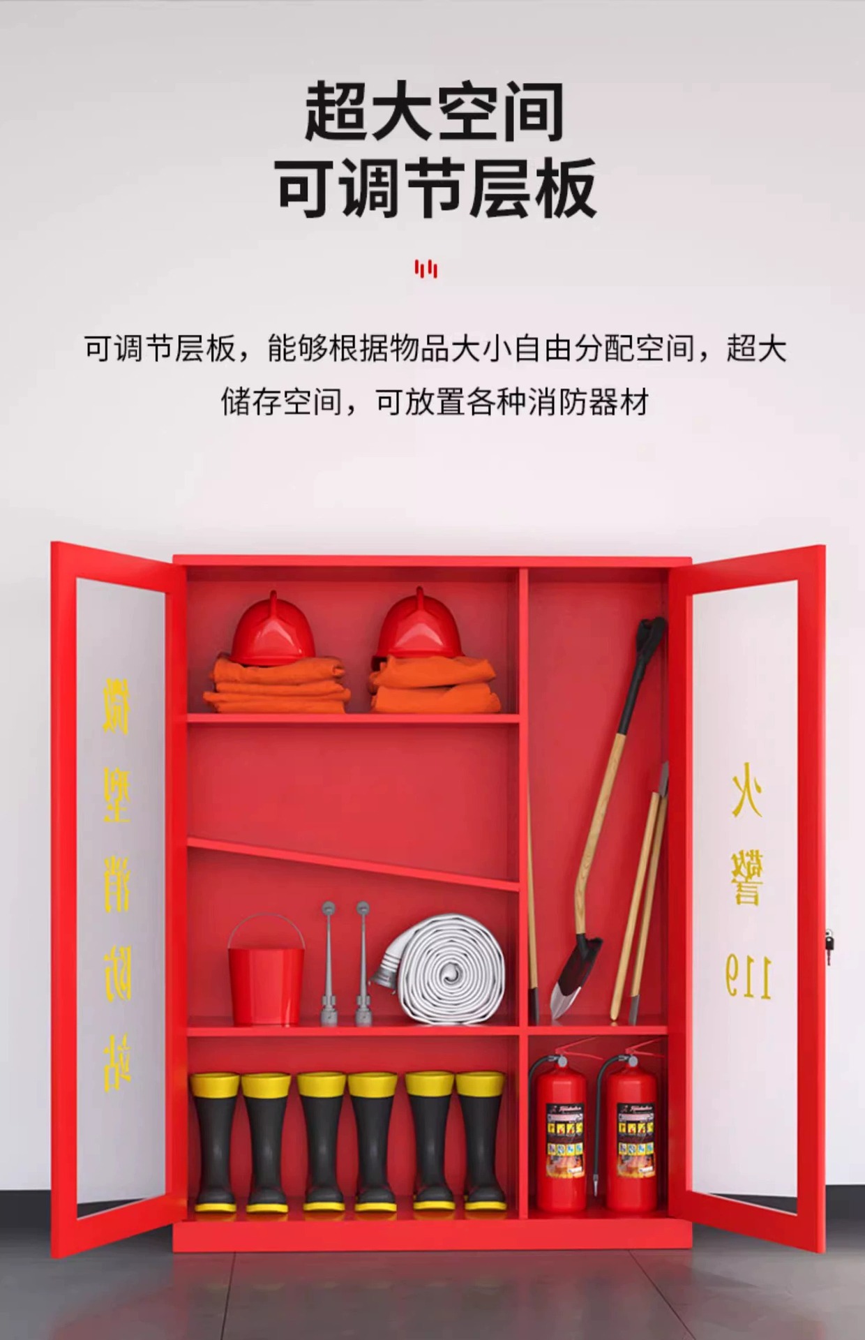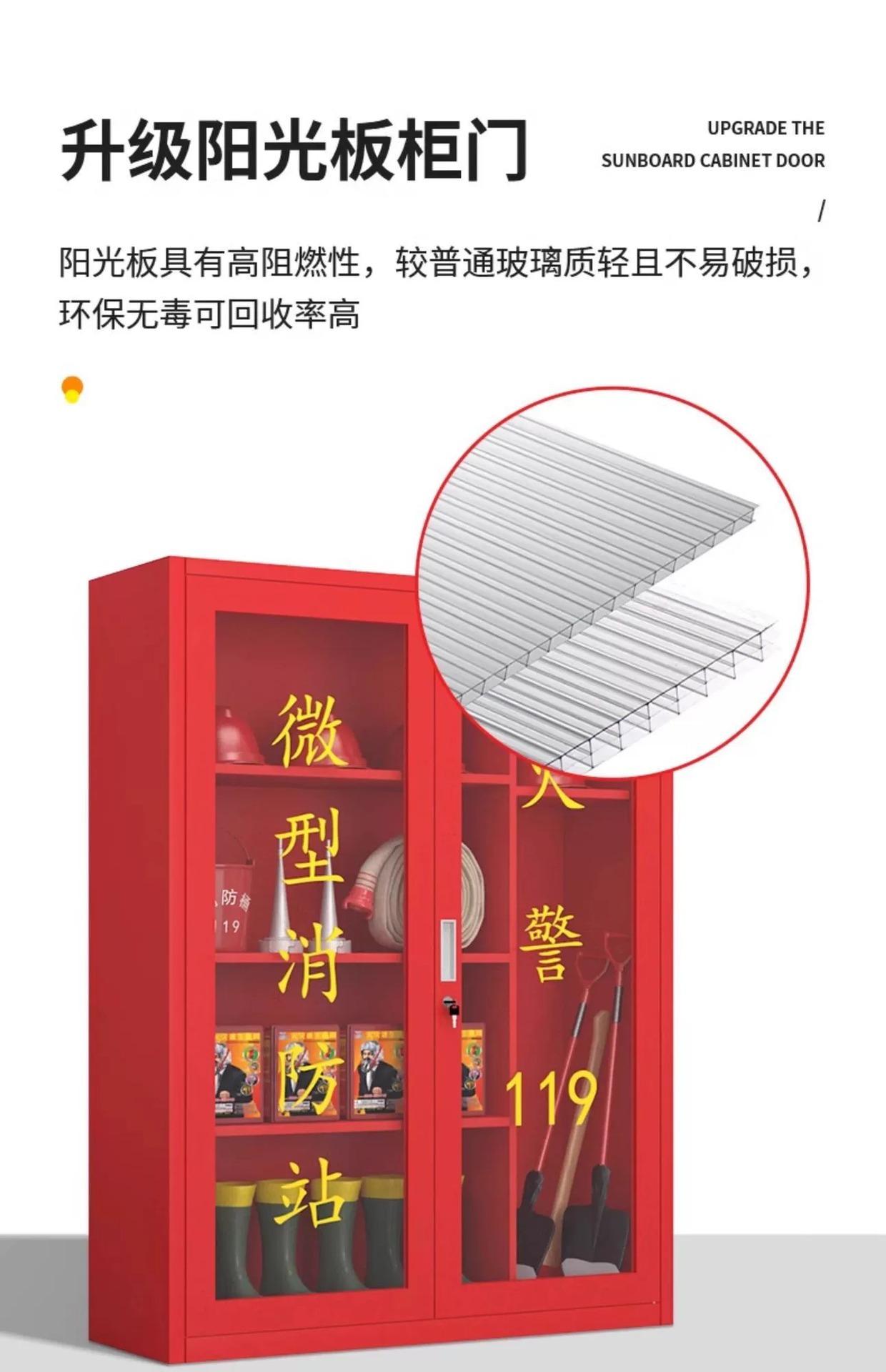 微型消防柜消防站器材存储柜实验室防火工具柜工地应急物资安全柜