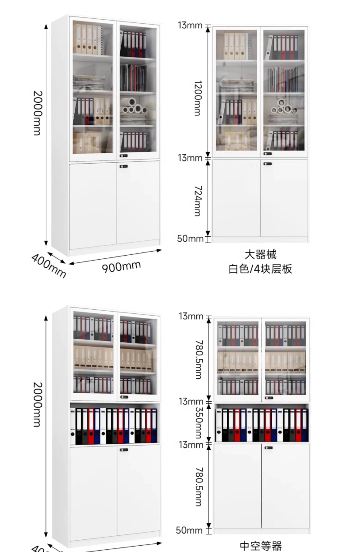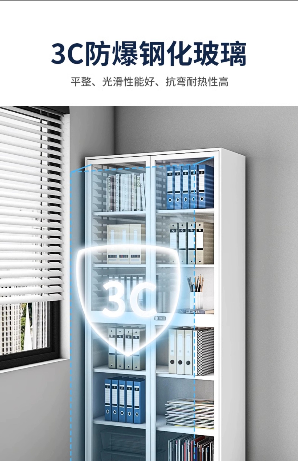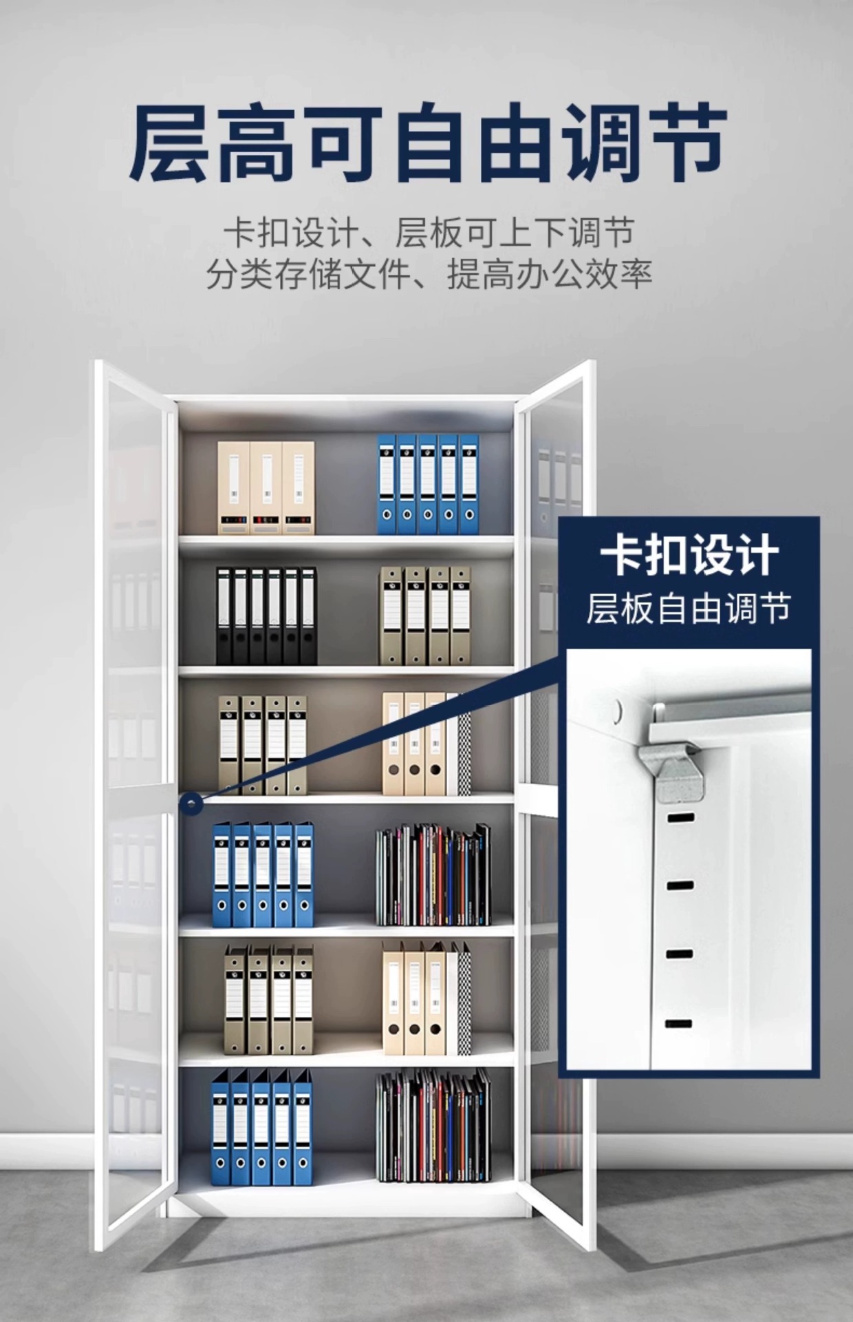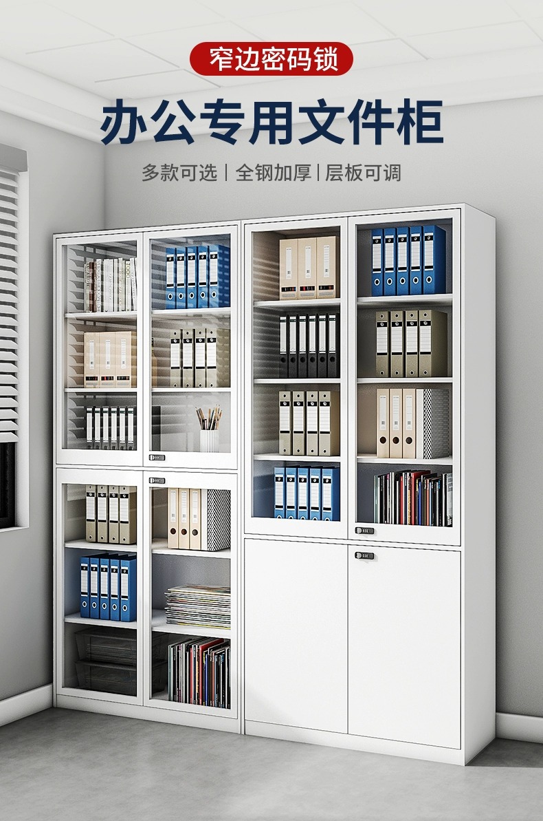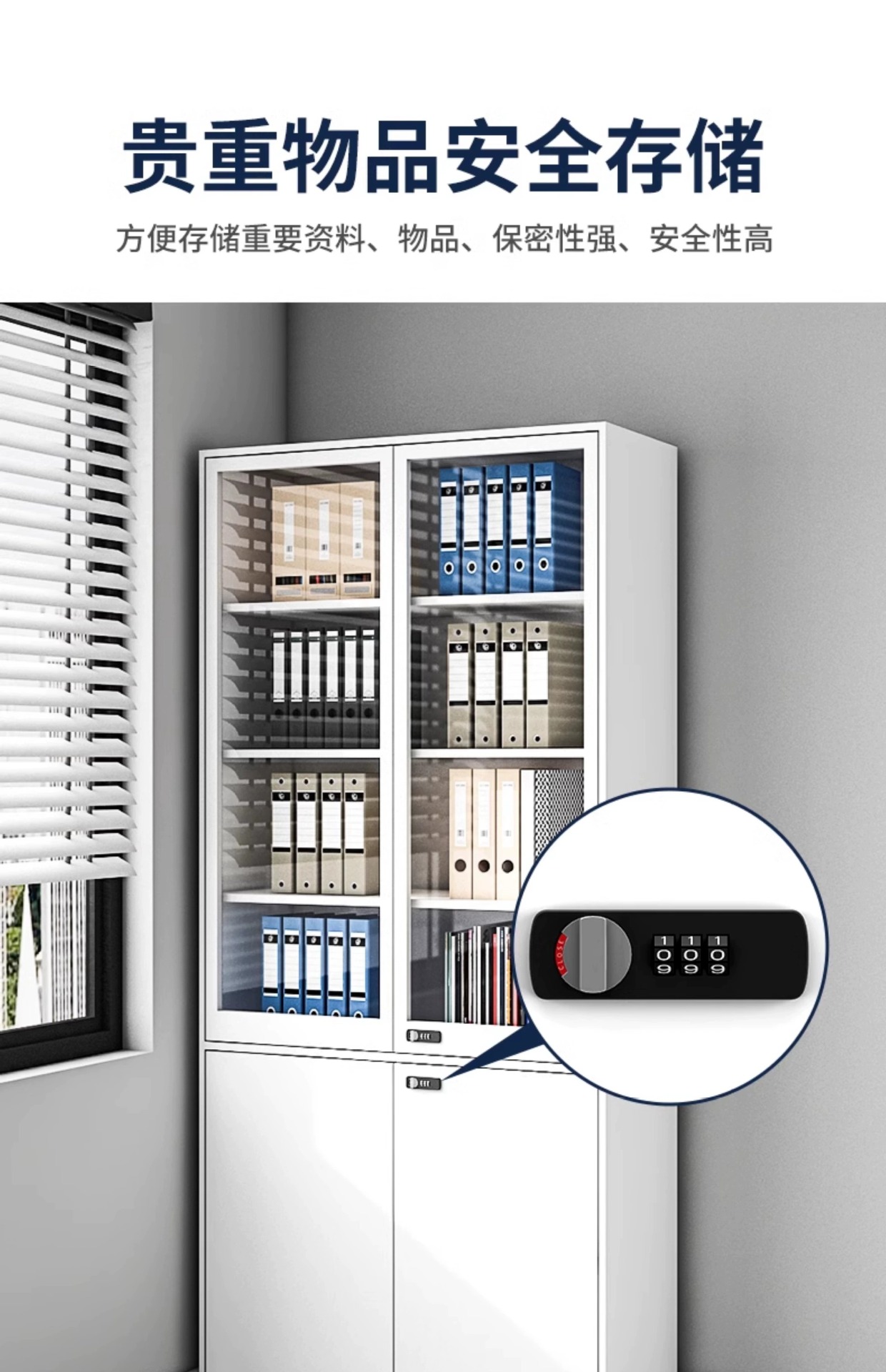 2米高办公文件柜财务资料凭证柜密码锁铁皮档案储物柜玻璃展示柜