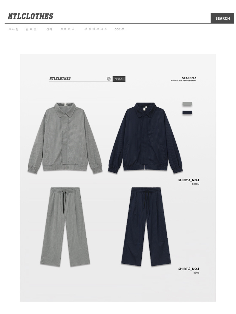 | Color | Camisa gris, camisa azul oculto, pantalones grises, pantalones azul oculto |