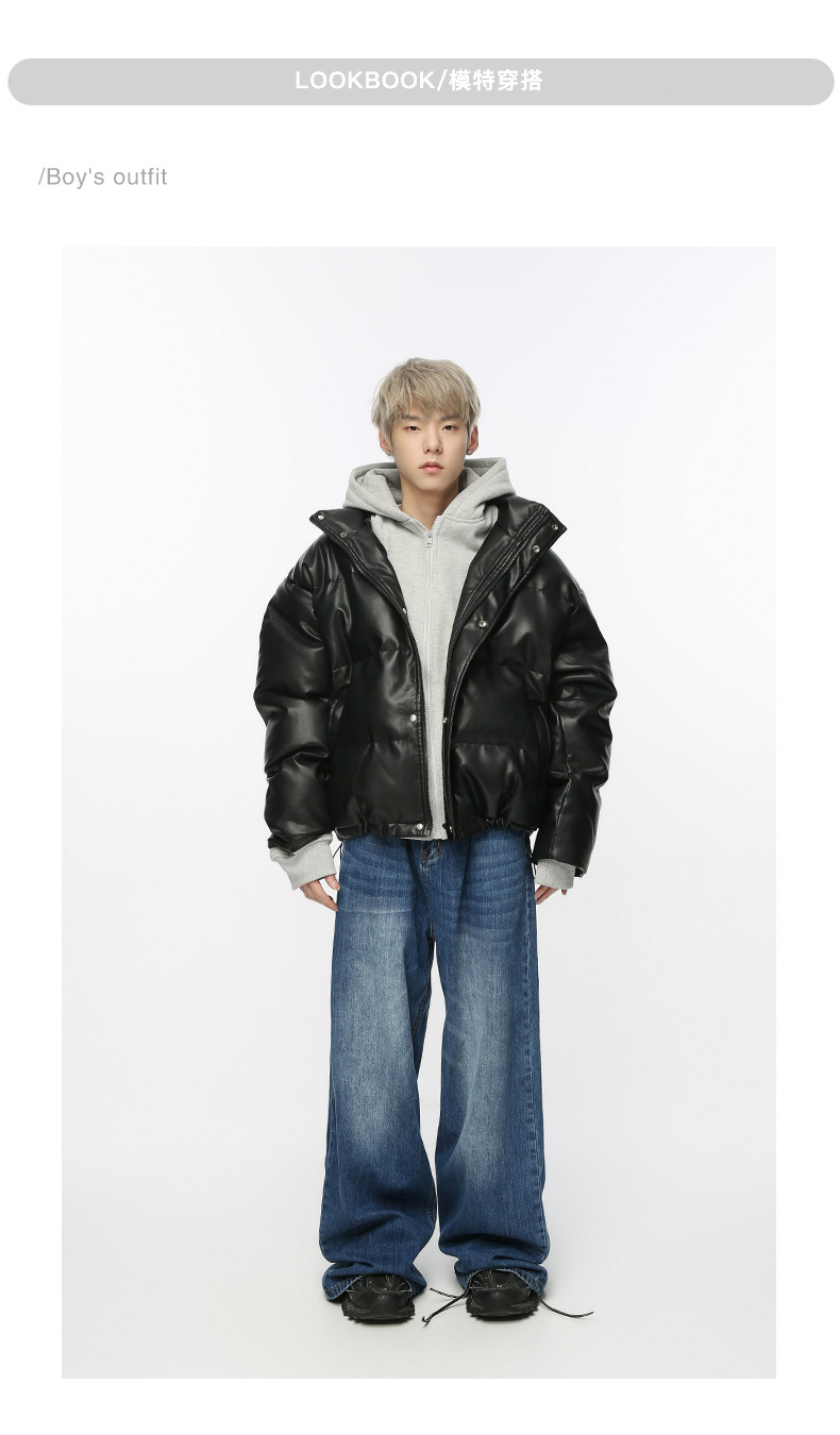 MTLClothes ropa de Hombre | 2023 invierno nuevo estilo coreano suelto falso de dos piezas con capucha de cuero de la PU engrosada abrigo de algodón acolchado para hombres