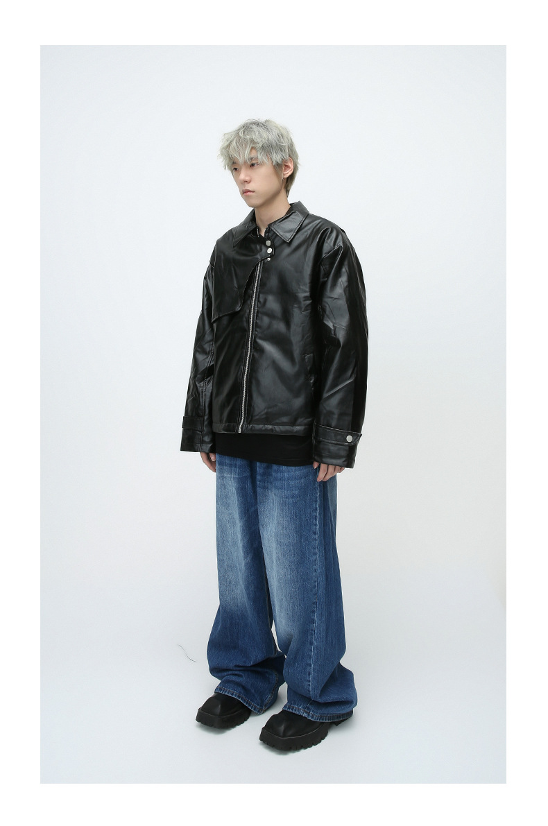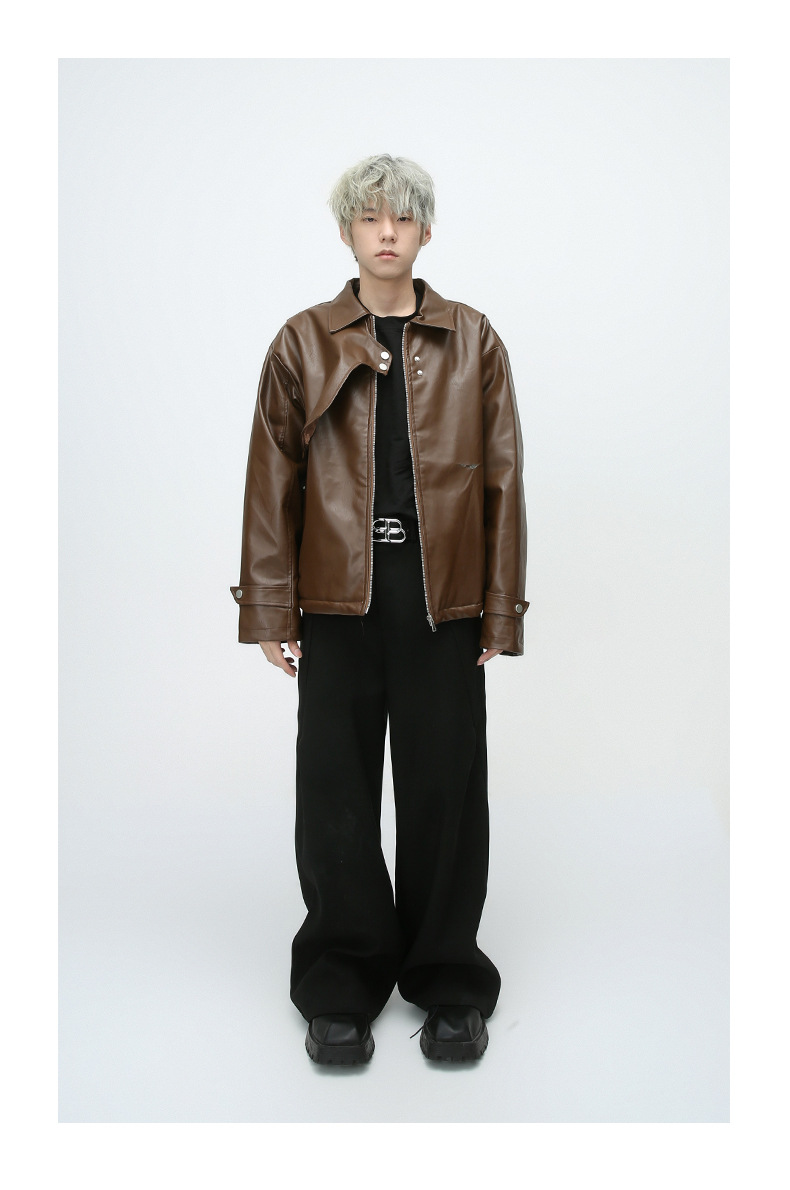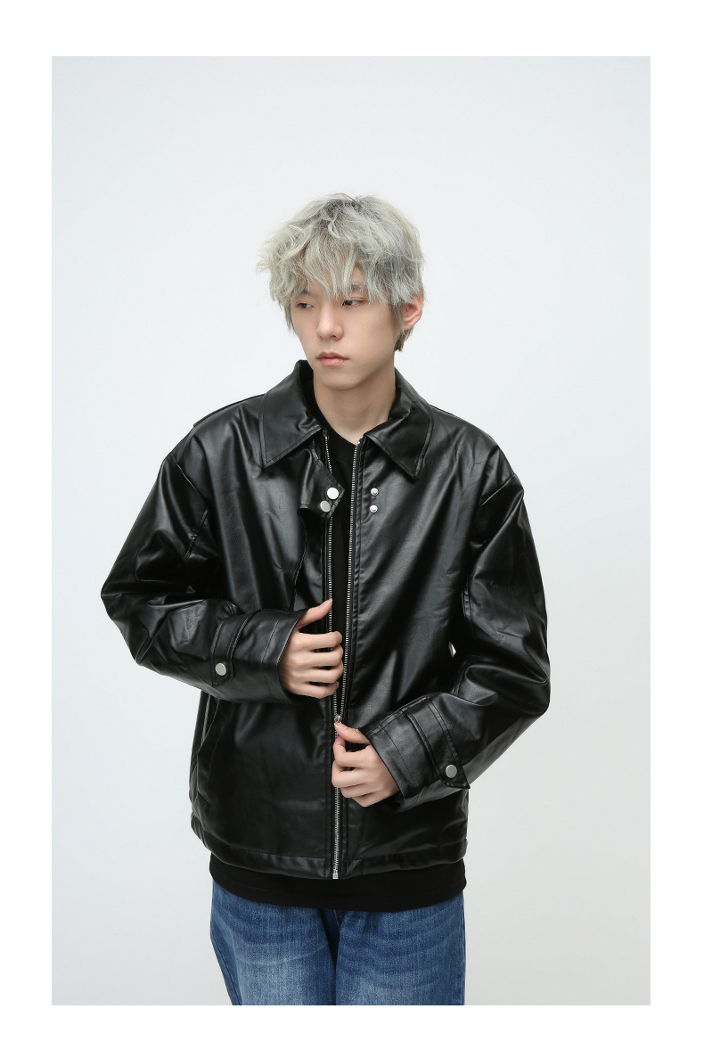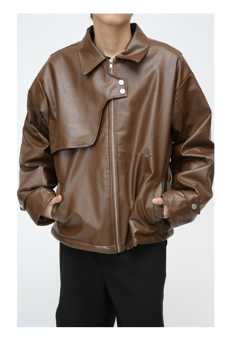 En stock Comercio exterior invierno negocios Caballero caliente cremallera cardigan bolsillo decorativo pu ropa de cuero collar de pie chaqueta de cuero delgada
