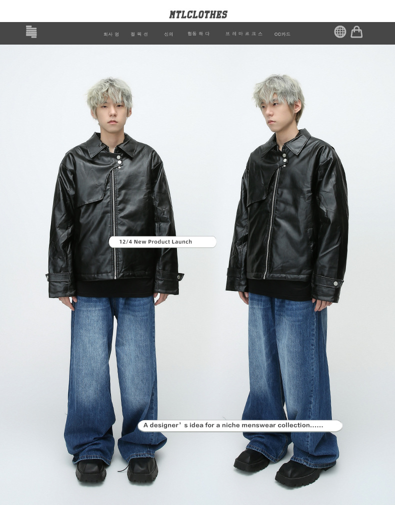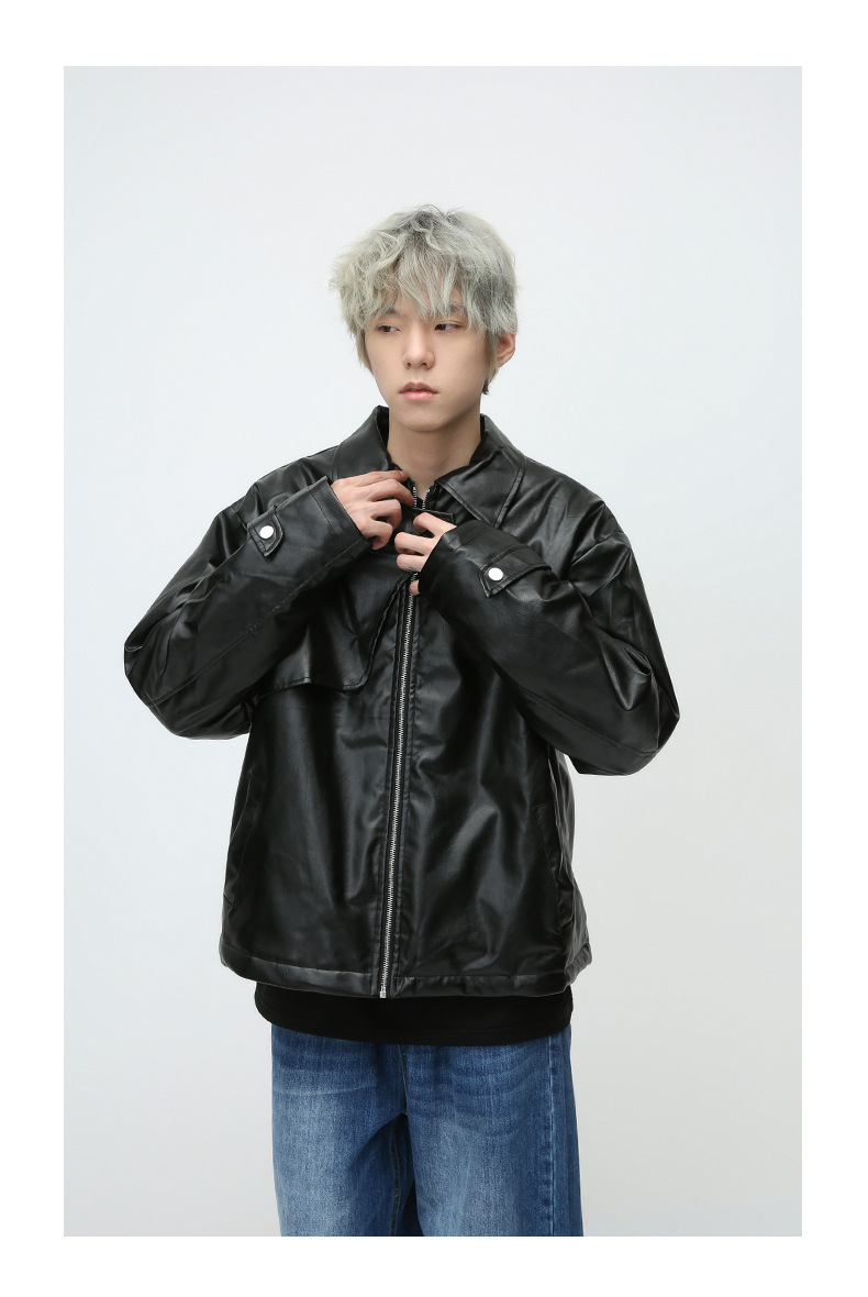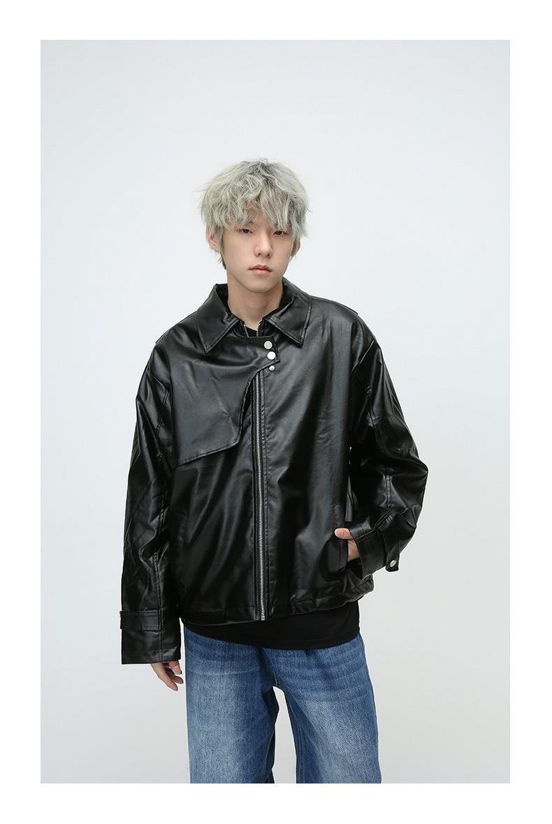 Chaqueta de cuero transfronteriza de comercio exterior con cuello de pie PU chaqueta de cuero de la motocicleta primavera y otoño delgada chaqueta de cuero casual para hombres ebay