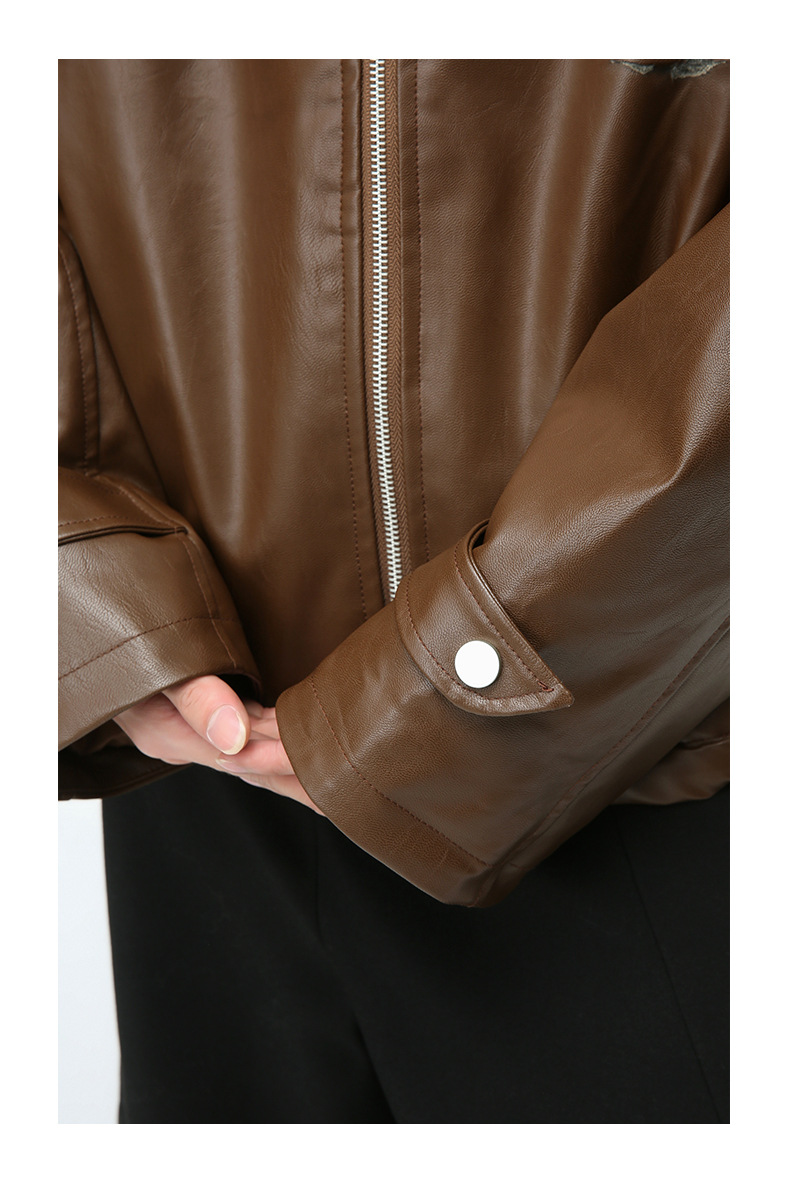 2026 otoño americano retro camiso de cremallera de color sólido chaqueta de béisbol corta abrigo suelto delgado chaqueta de cuero casual