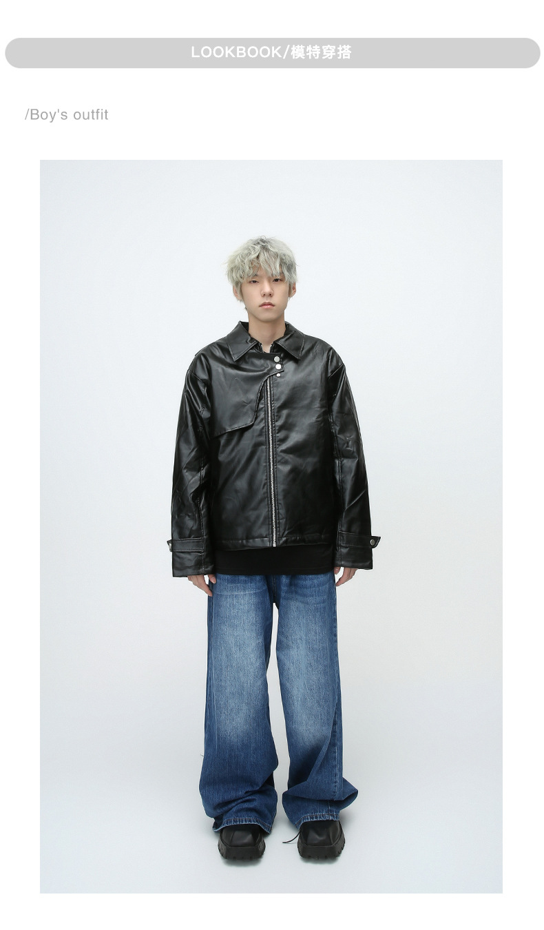 PY2105 estilo explosivo chaqueta de cuero con costuras de mezclilla de calidad original más chaqueta de cuero gruesa de terciopelo tiene grandes productos P155