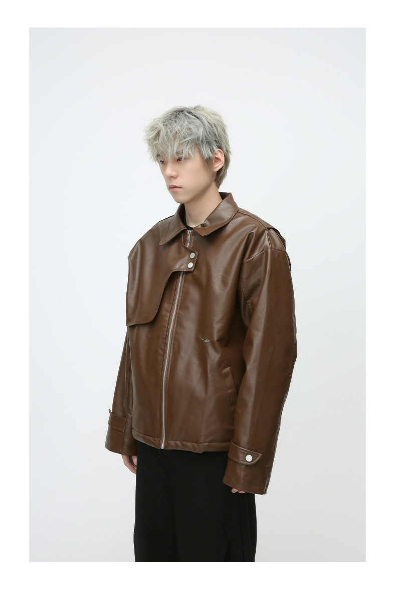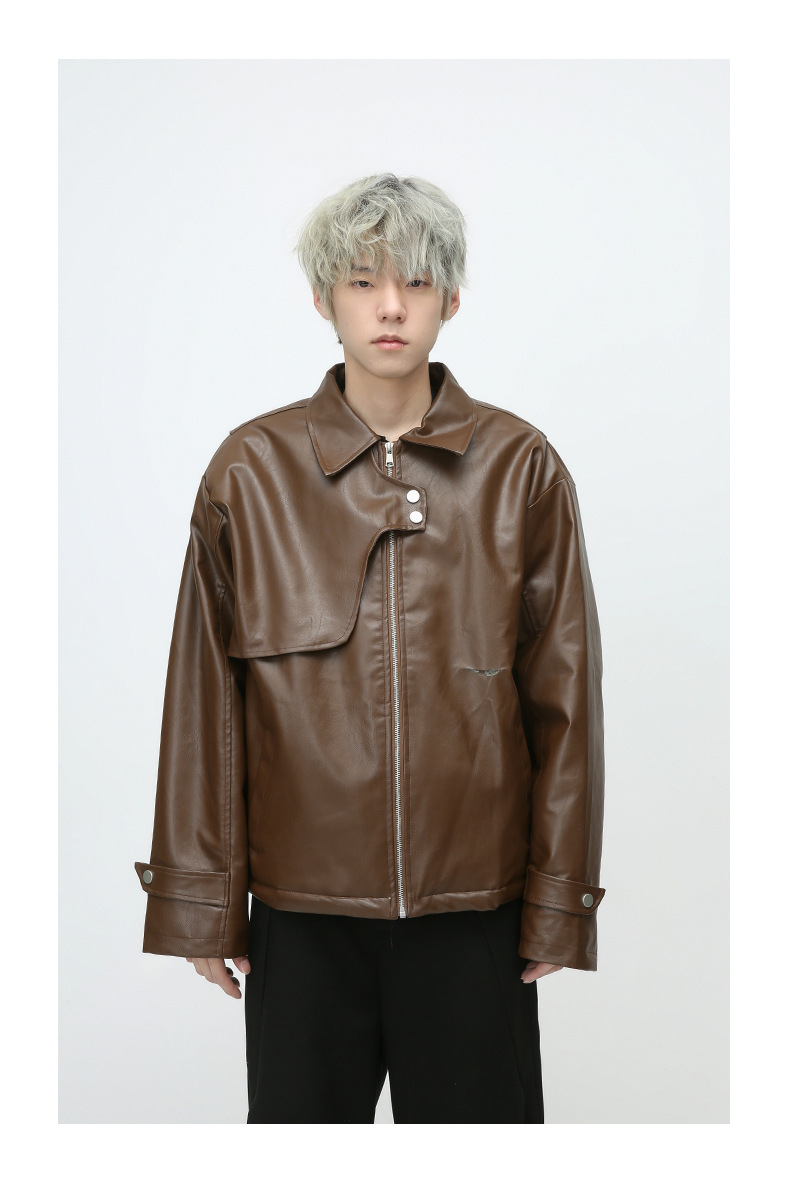 Mtlclothes ropa de Hombre | 2023 Otoño e Invierno nuevo americano retro motocicleta acolchado abrigo cuero para hombres