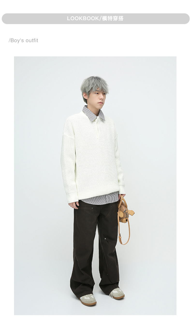 2024 primavera y otoño pantalones vaqueros de cintura elástica todo fósforo para hombres, pantalones de pierna ancha rectos sueltos para adolescentes de la calle principal