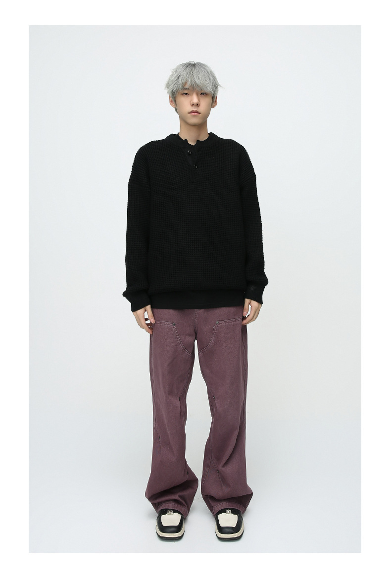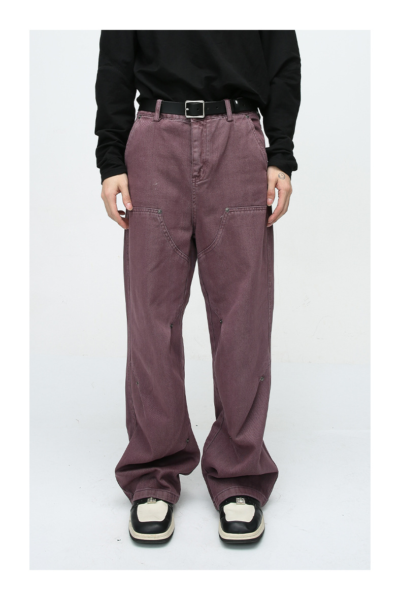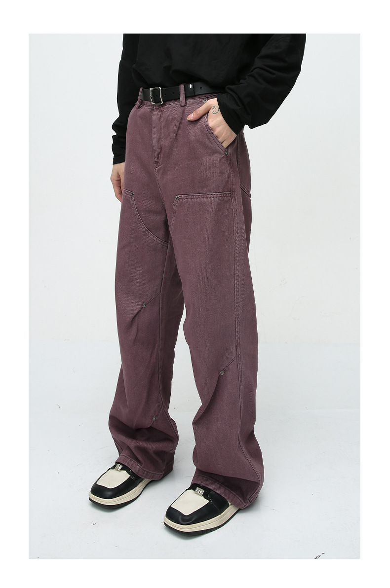 MTLCLOTHES para hombre | Vaqueros lavados sueltos de color sólido de algodón recto americano de calle alta
