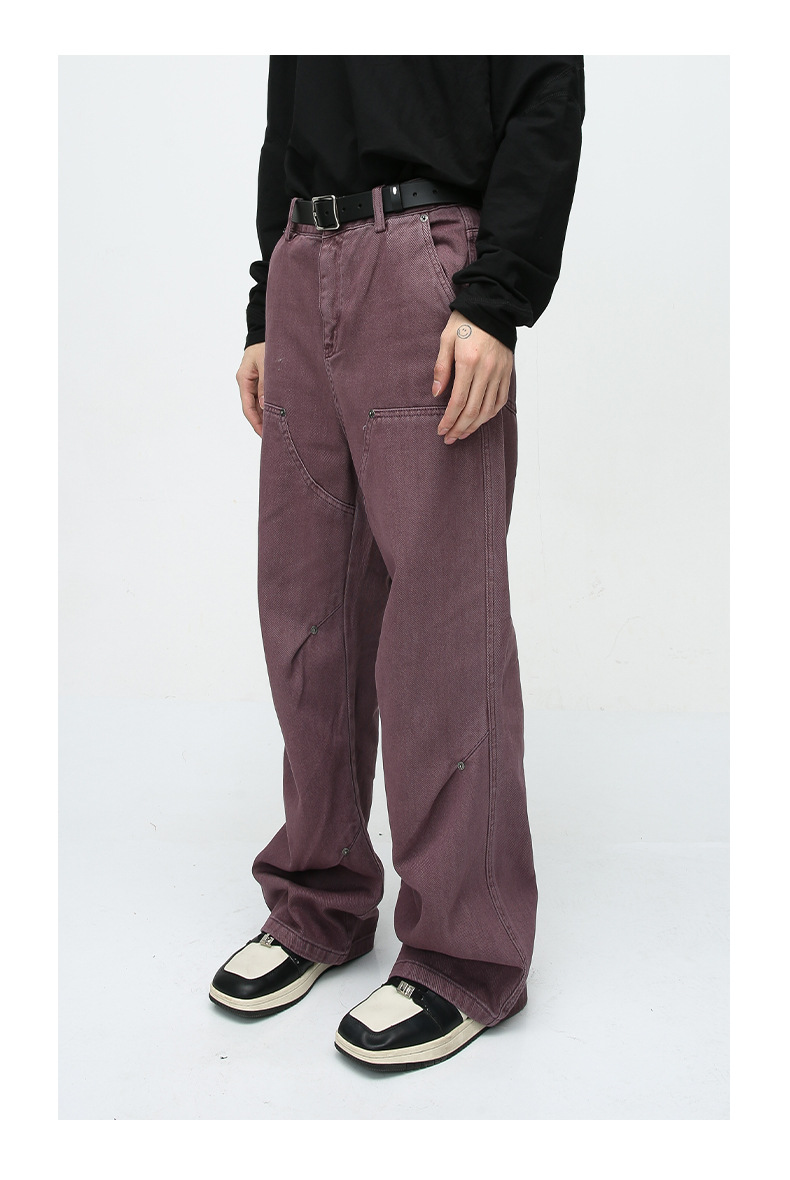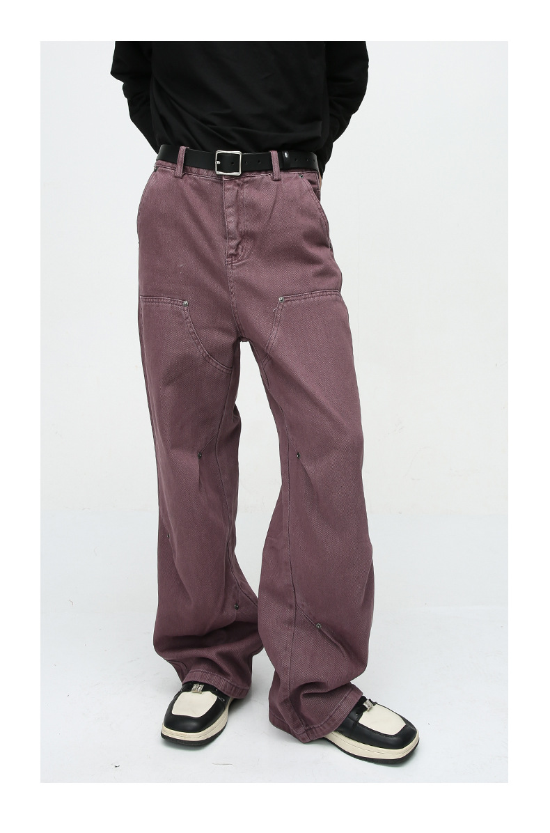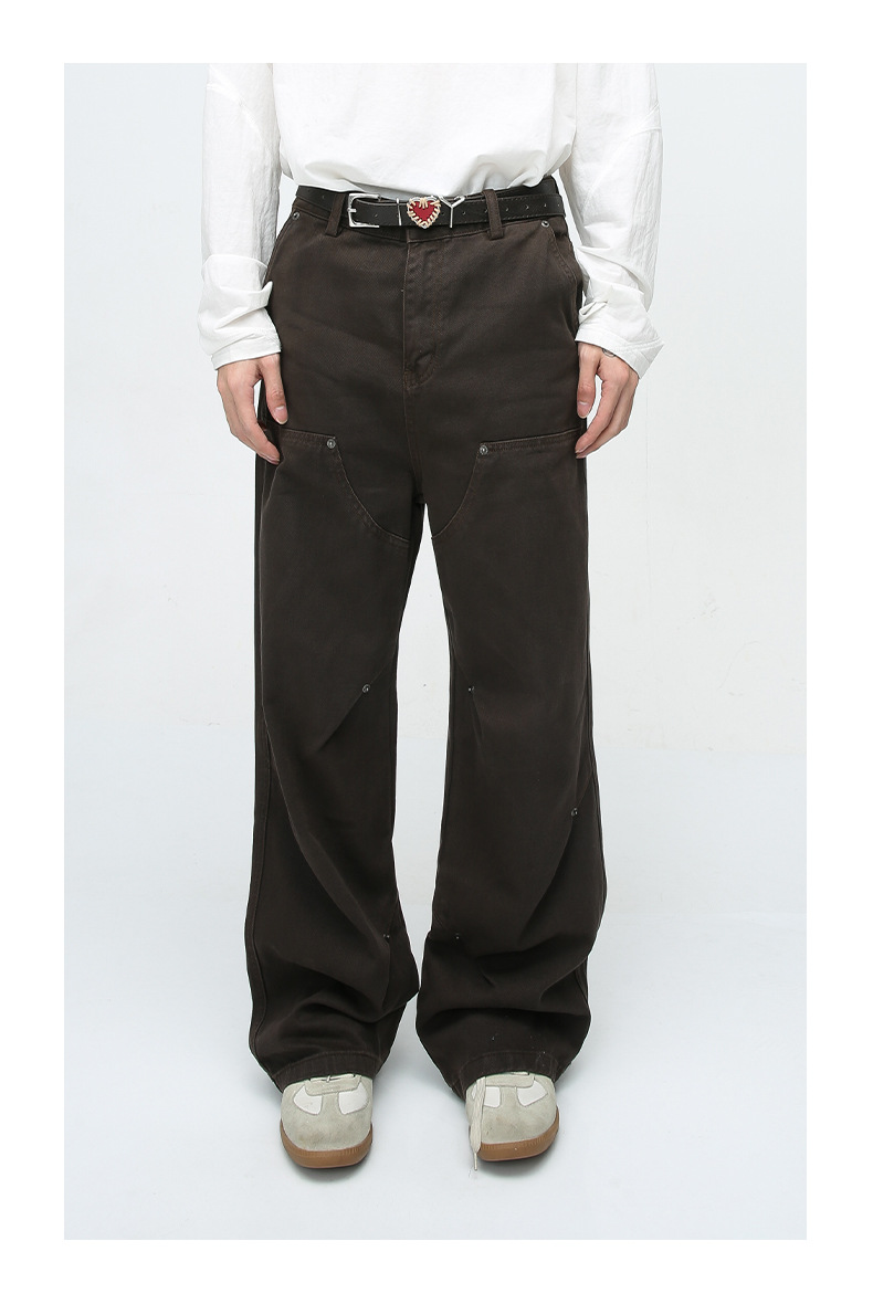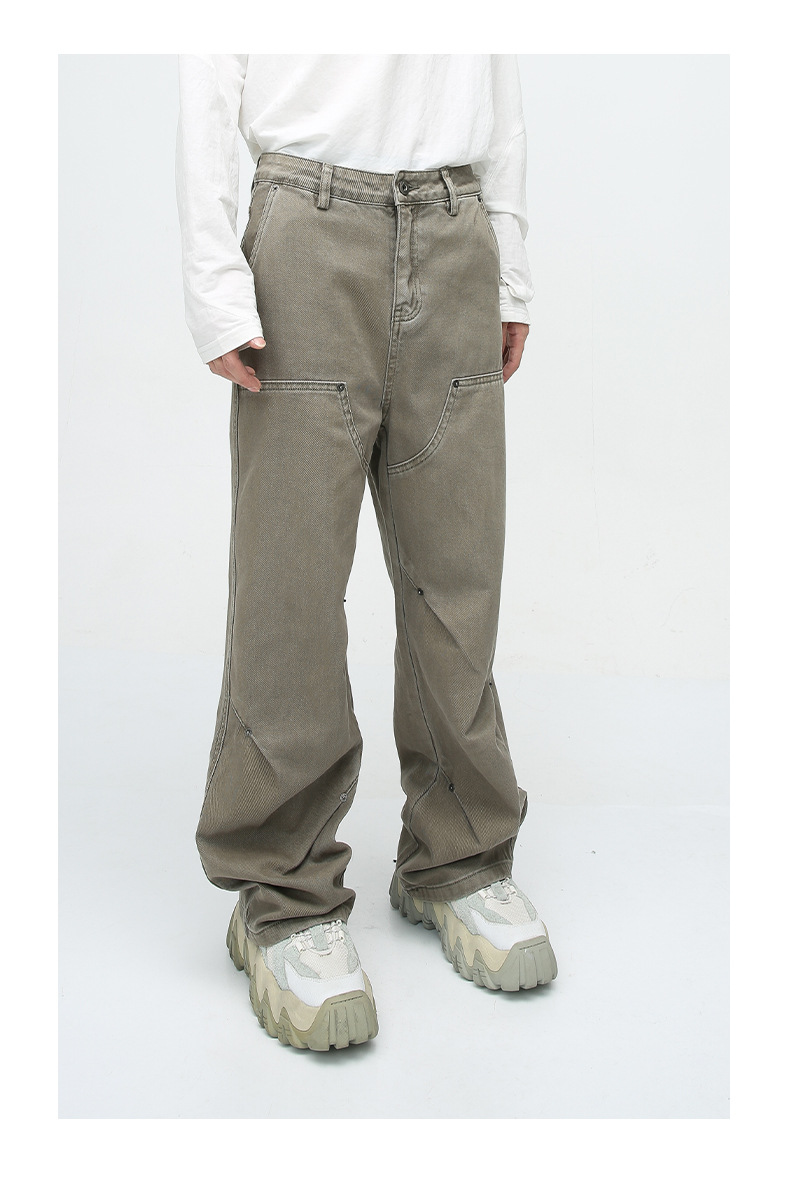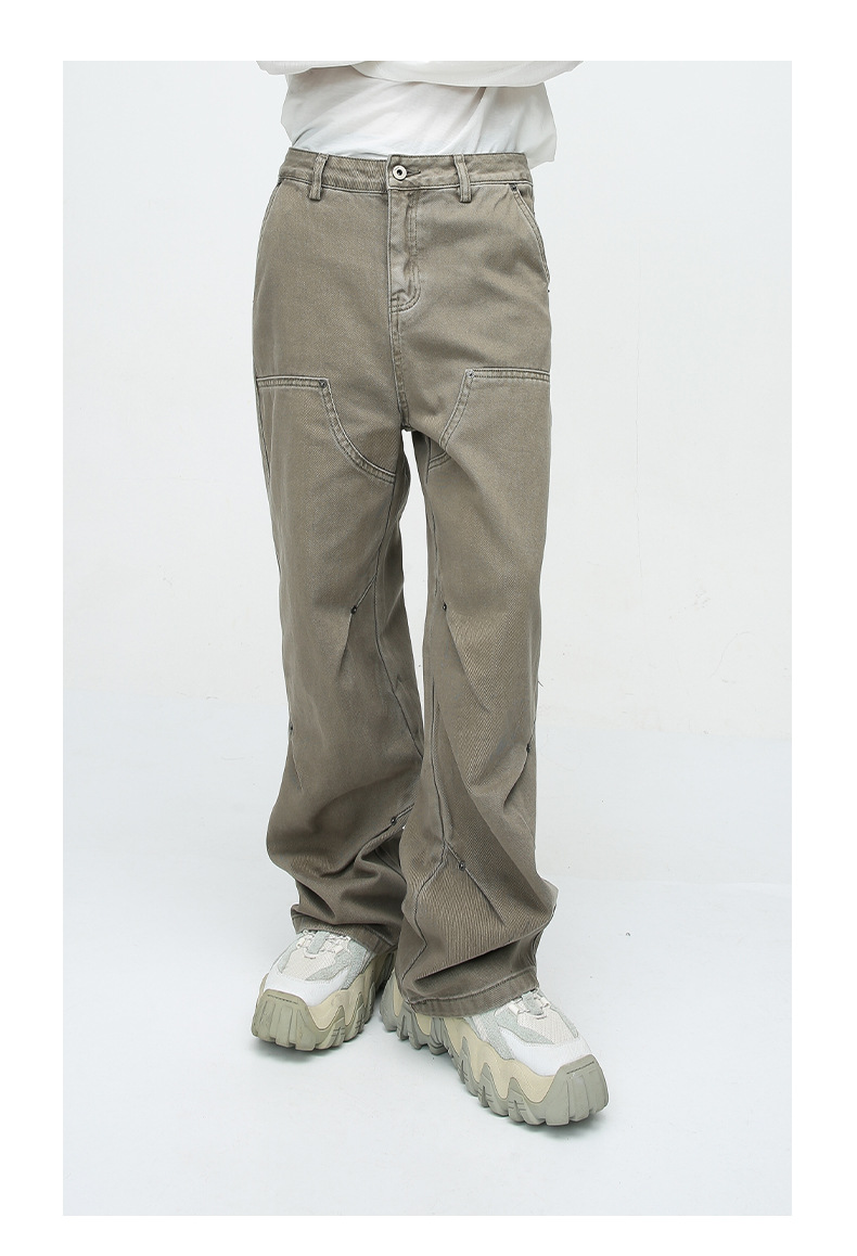 MTLClothes ropa de Hombre | 2023 cuatro estaciones nuevo vintage remache decorativo recto casual jeans hombres