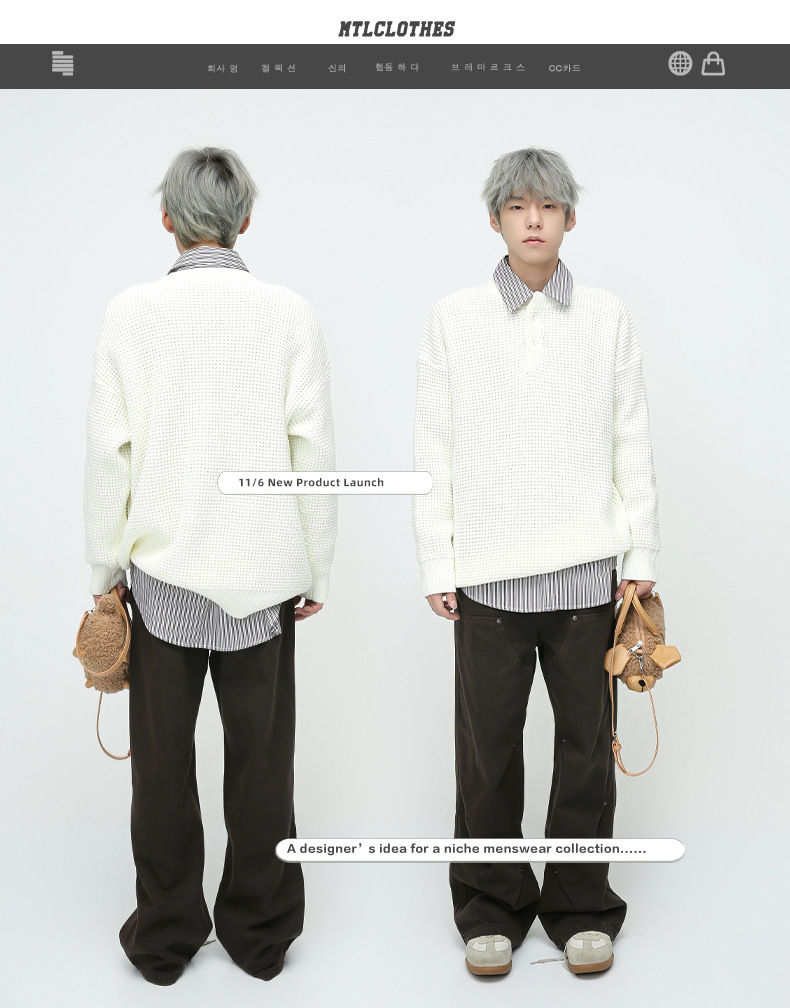 Ropa para hombre MTLCLOTHES | Vaqueros casuales de estilo coreano, versátiles, vintage, desgastados, de pierna ancha y holgados, a la moda.