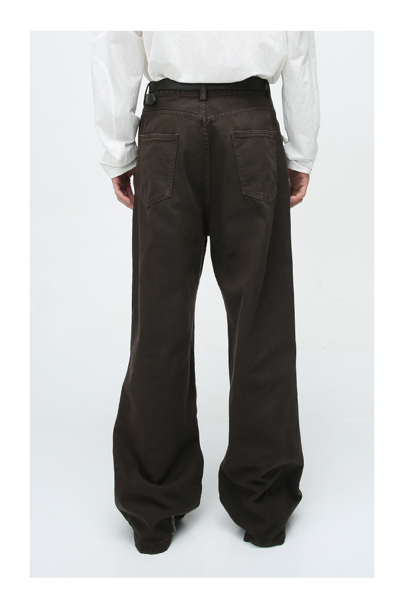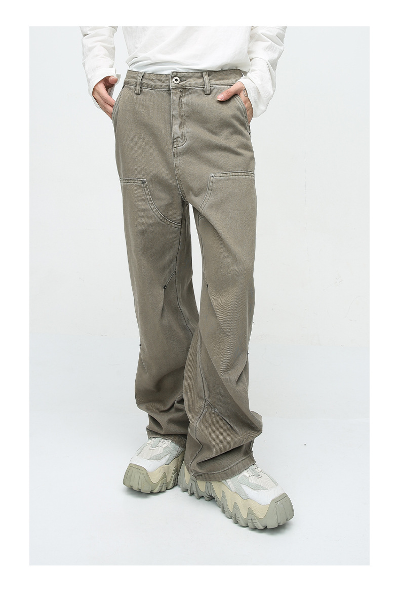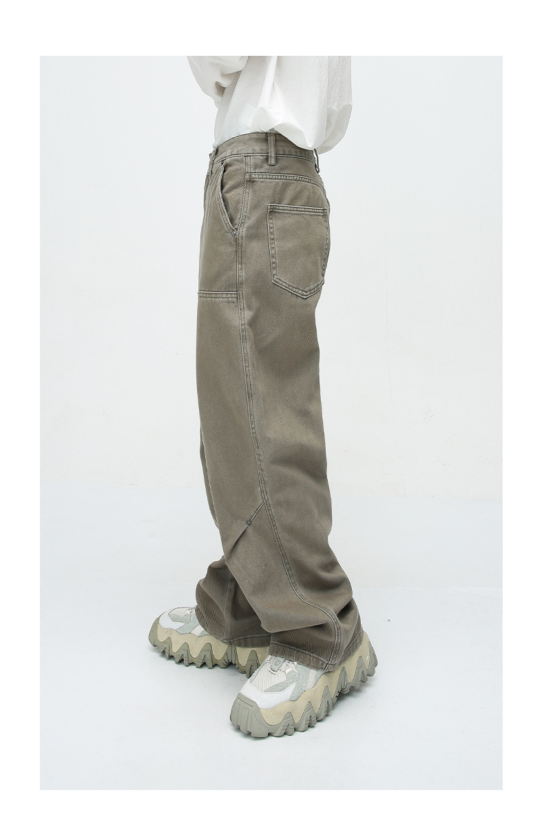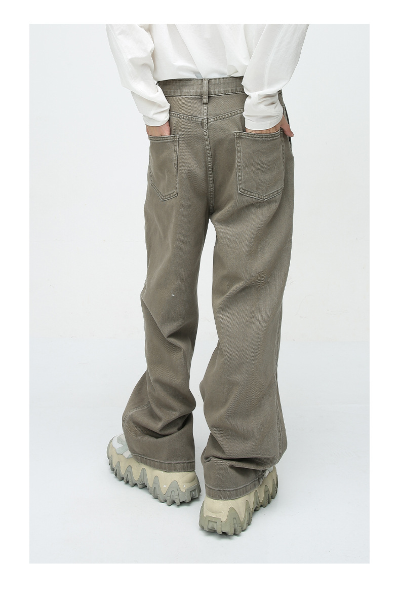 Pantalones vaqueros viejos lavados de la calle americana de moda Primavera y otoño para hombres Pantalones largos de estilo vibe de la calle alta de tendencia suelta recta