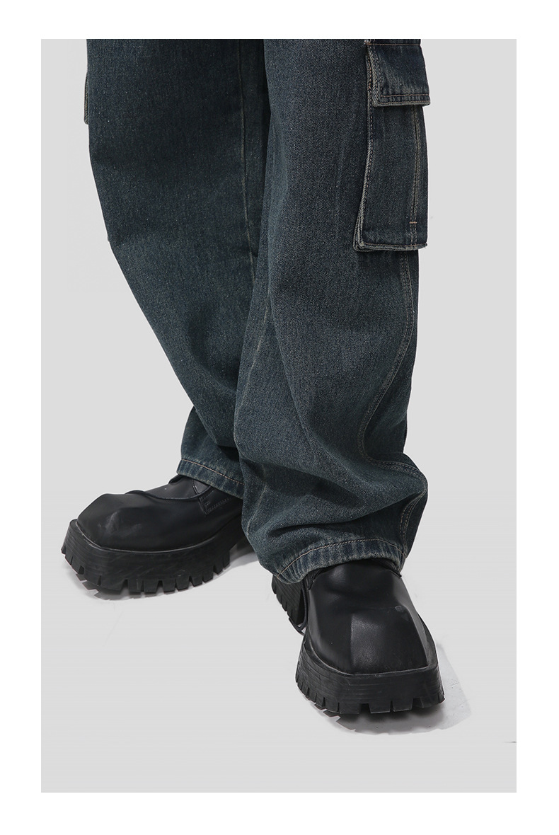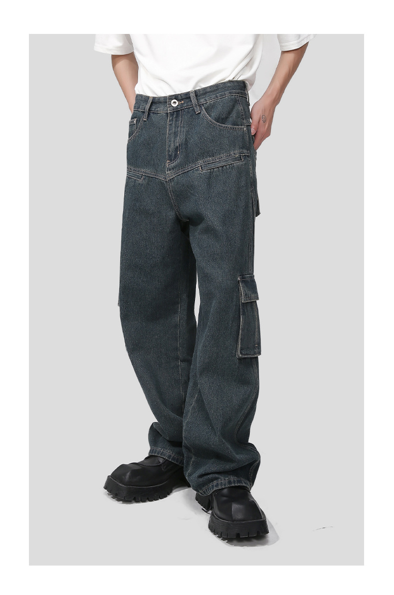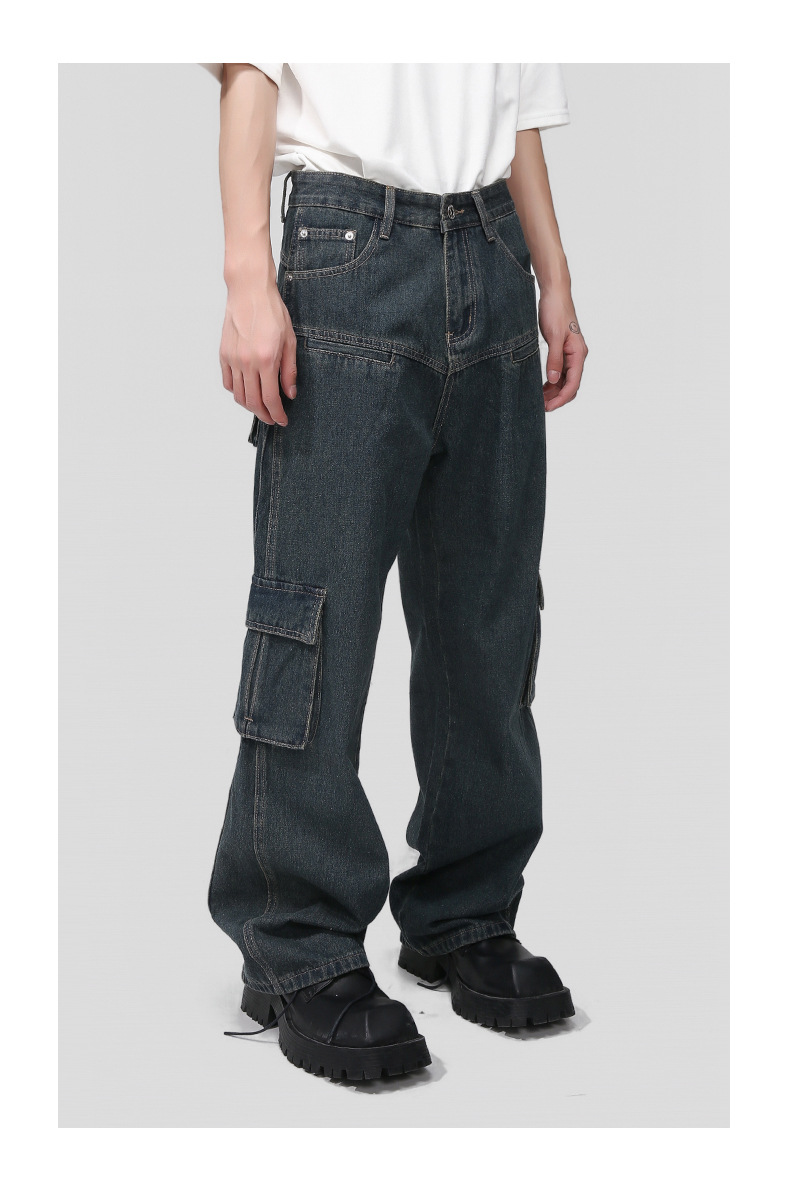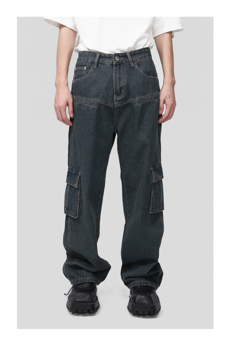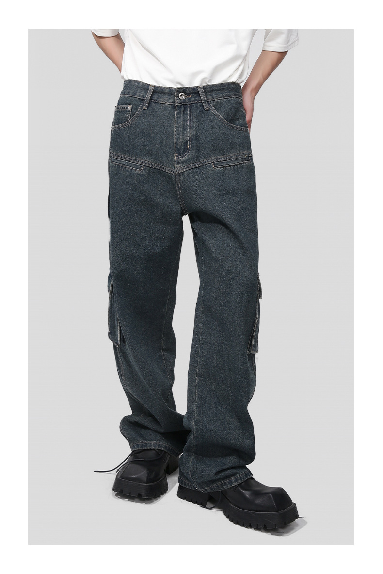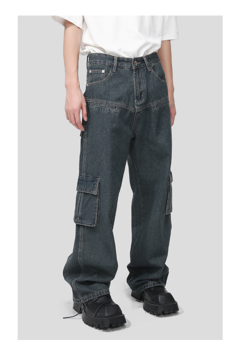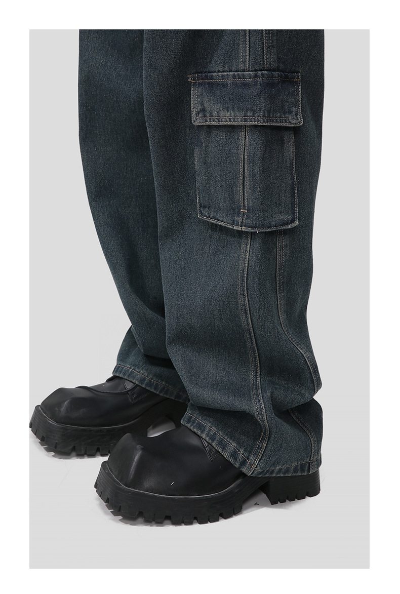 Mtlclothes ropa de Hombre | 2023 otoño nuevo diseño retro americano multi-Bolsillo ropa de trabajo jeans moda