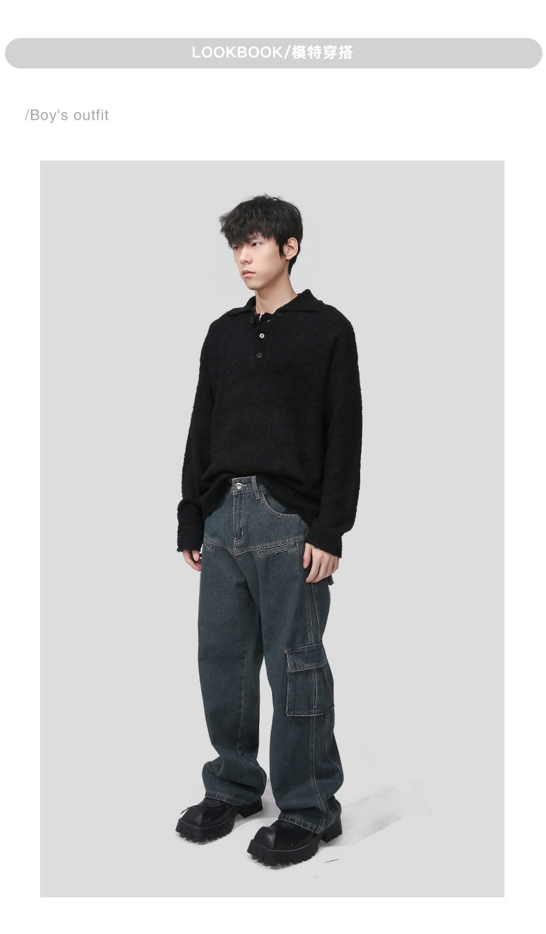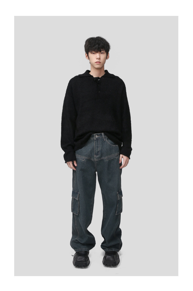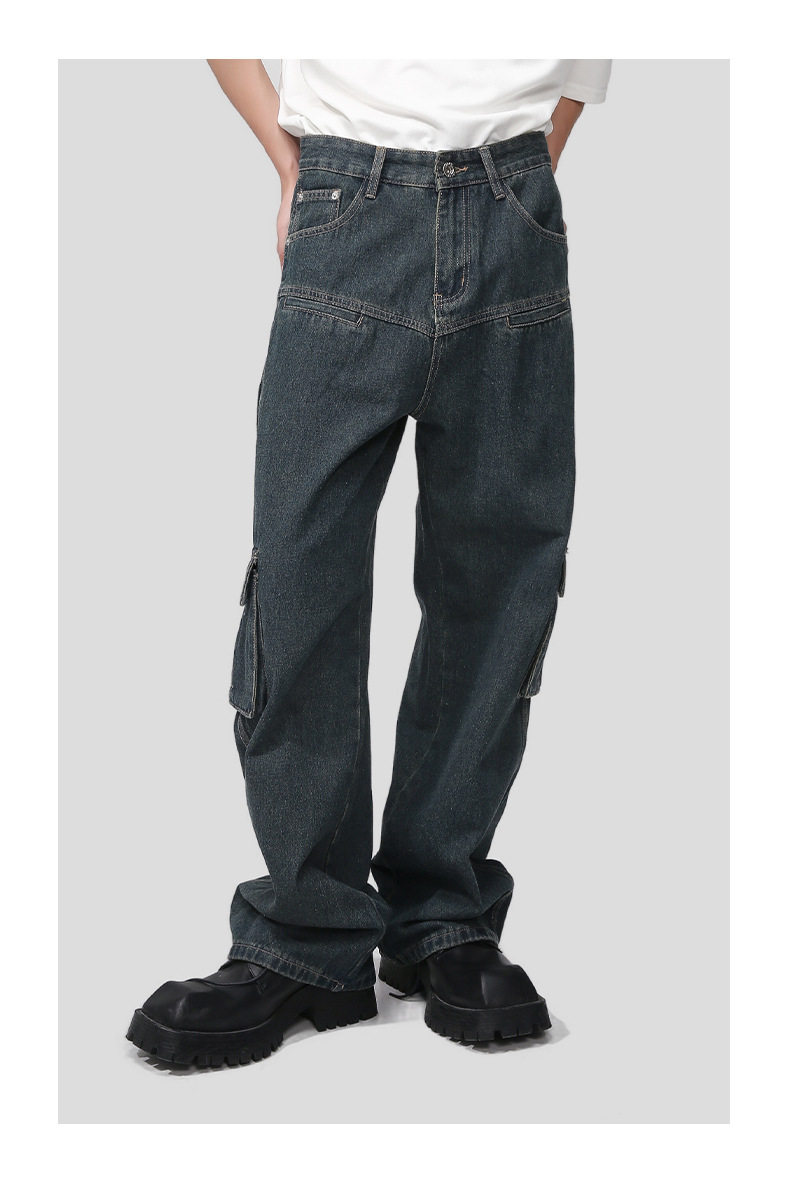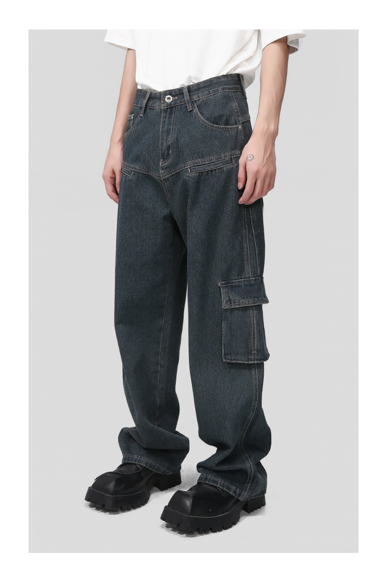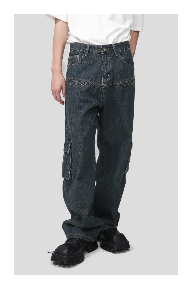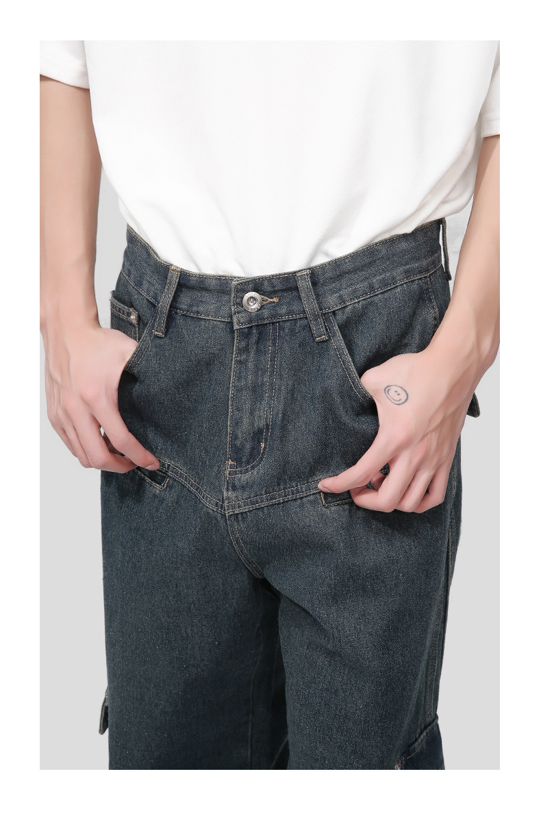 Mtlclothes ropa de Hombre | 2023 otoño nuevo diseño retro americano multi-Bolsillo ropa de trabajo jeans moda