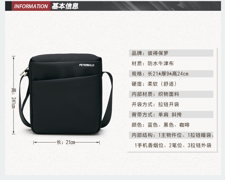 PETERBOLO / Peter Paul bolso de hombre mochila de lona de hombro mochila de tela de Oxford mochila de ocio viaje de ocio