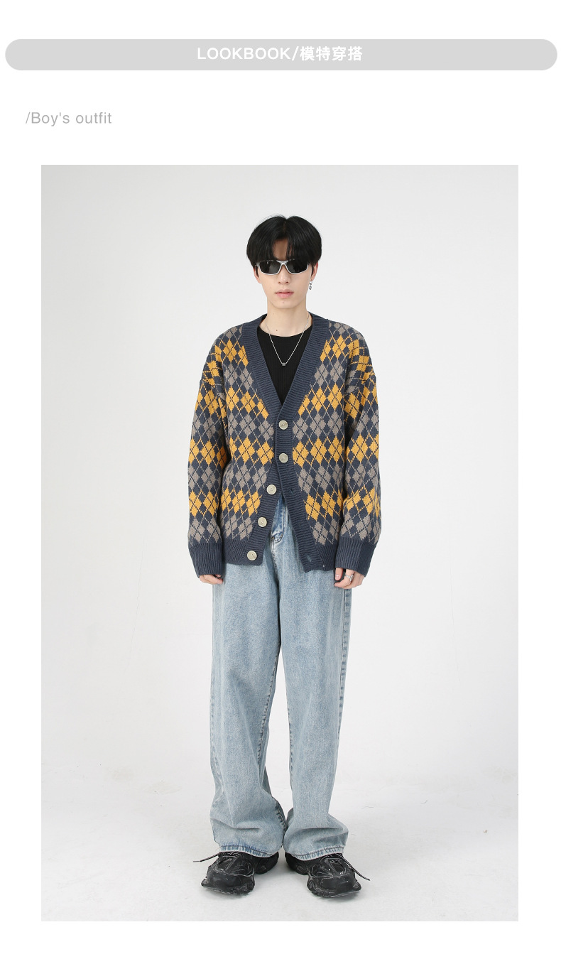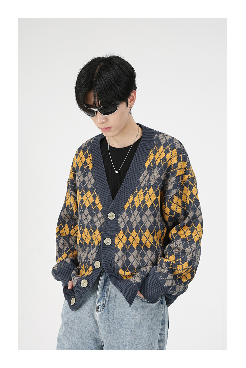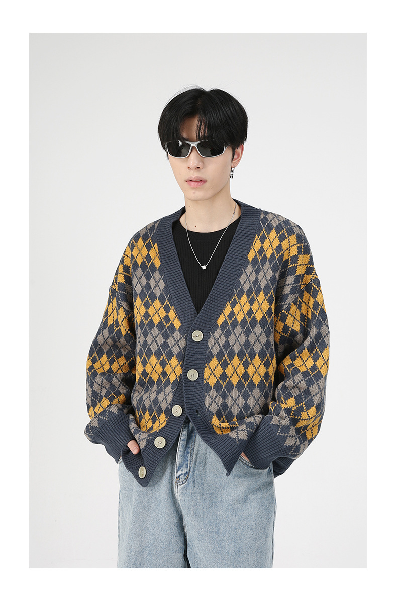 Mtlclothes ropa de Hombre | Nuevo estilo coreano flojo suéter abrigo hombres rombo cuello en V punto cardigan