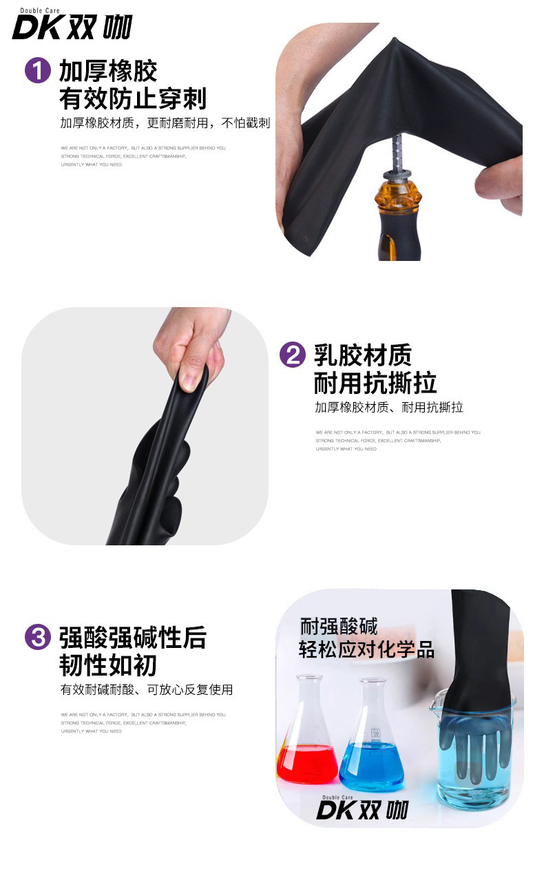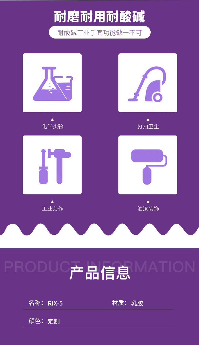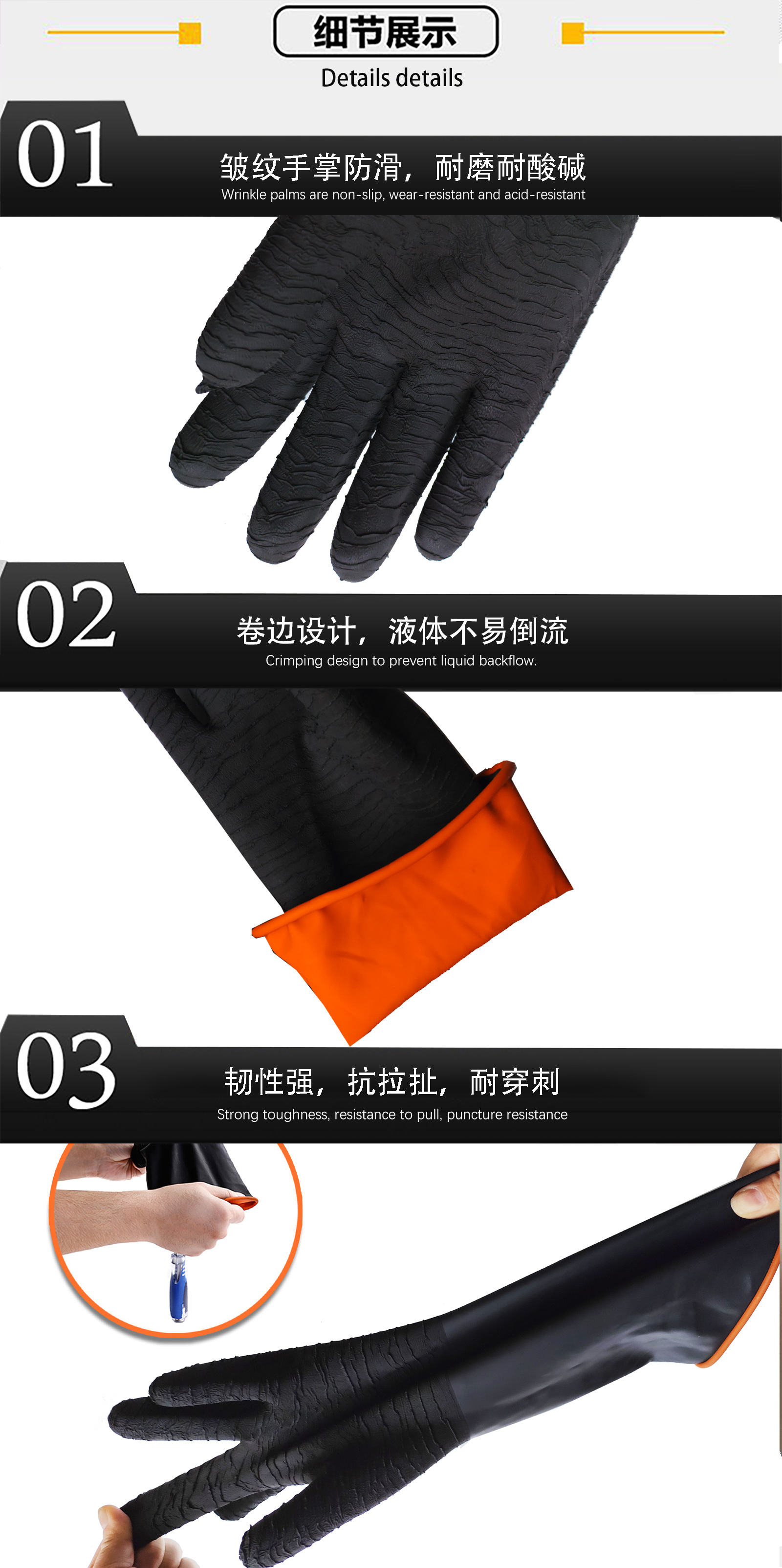 | característica | Guantes resistentes a ácidos y álcalis. |