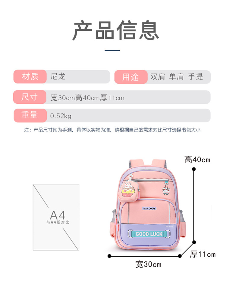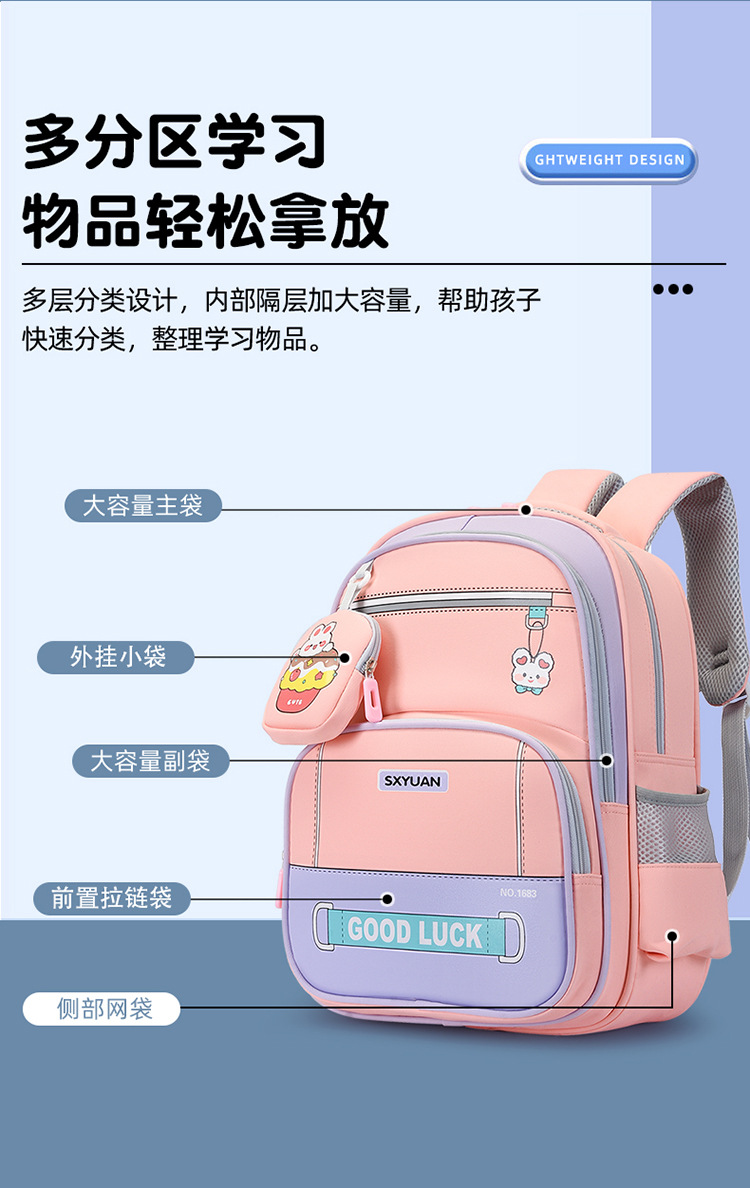 Mochila mayorista para estudiantes de primaria nueva mochila para niños y niñas de grado 1 - 3, mochila ligera para reducir la carga, mochila de ocio resistente al desgaste