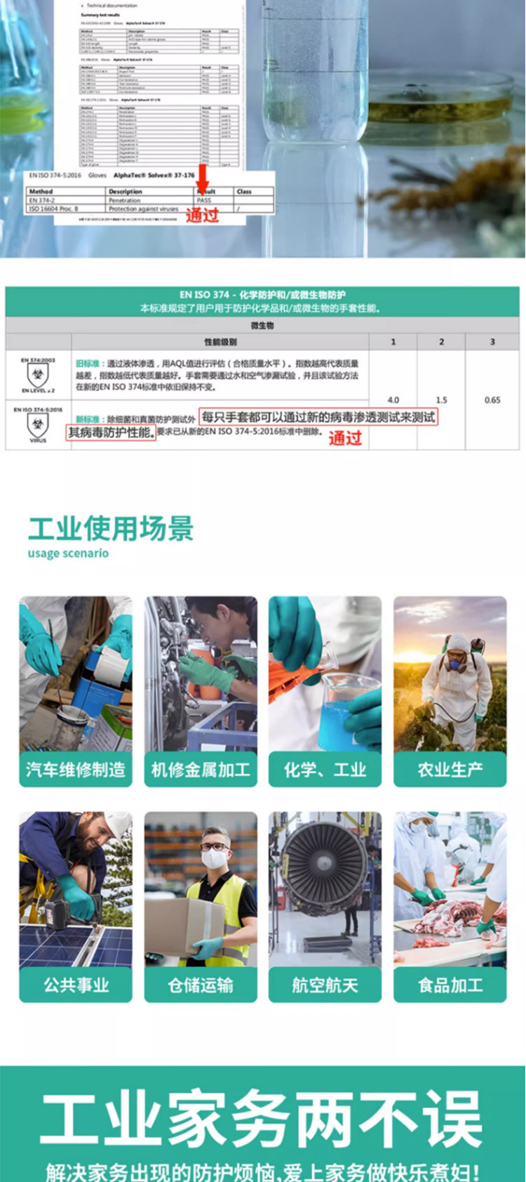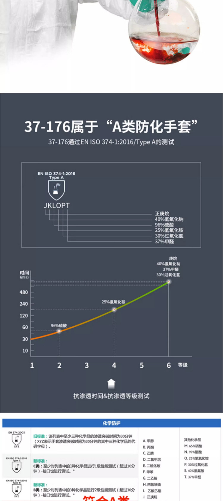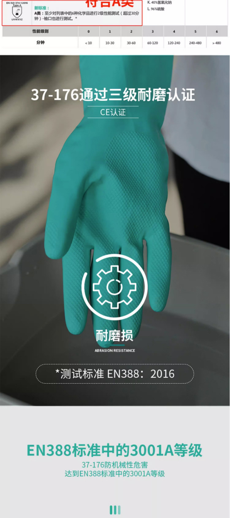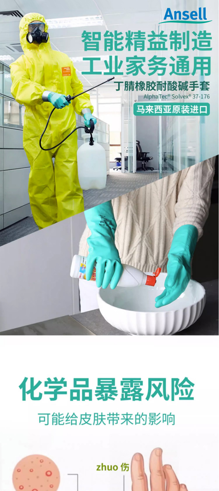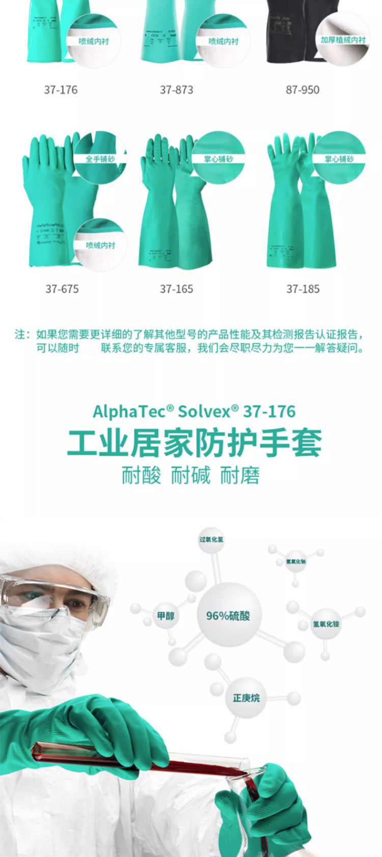 Ansier 37-176 ácido y álcali resistente solvente industrial flocado anti-químico resistente al aceite de caucho protección química Industria química