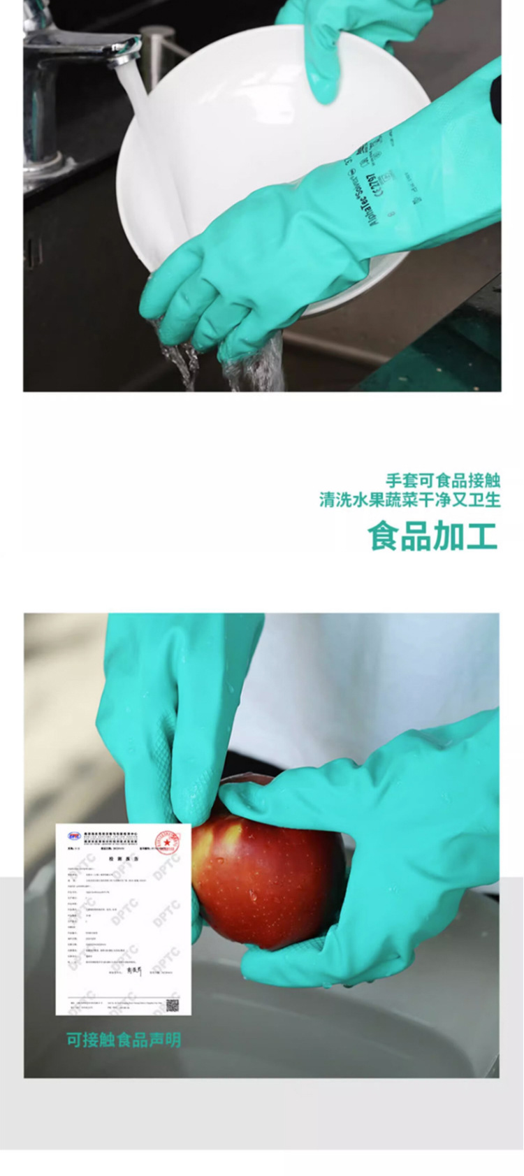 Guantes de nitrilo alargado látex a prueba de aceite anti-químico cocina de goma resistente al desgaste duradero lavado y lavado de ropa doméstica