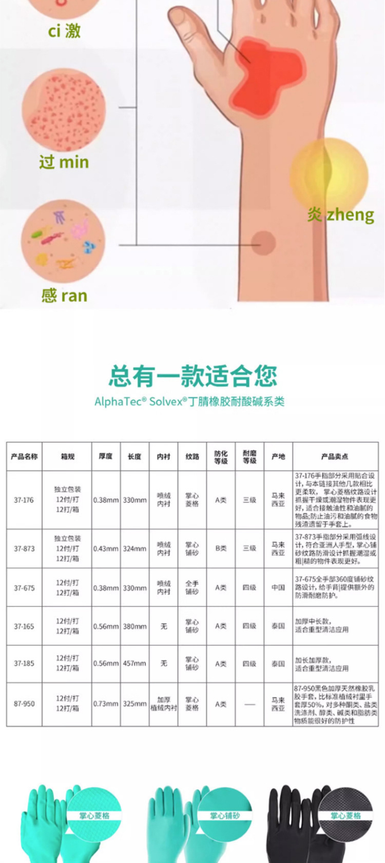 Ansell 37 - 175 / 176 Guantes de caucho de nitrilo resistentes a ácidos y álcali, protección contra el trabajo y la resistencia al desgaste para el hogar