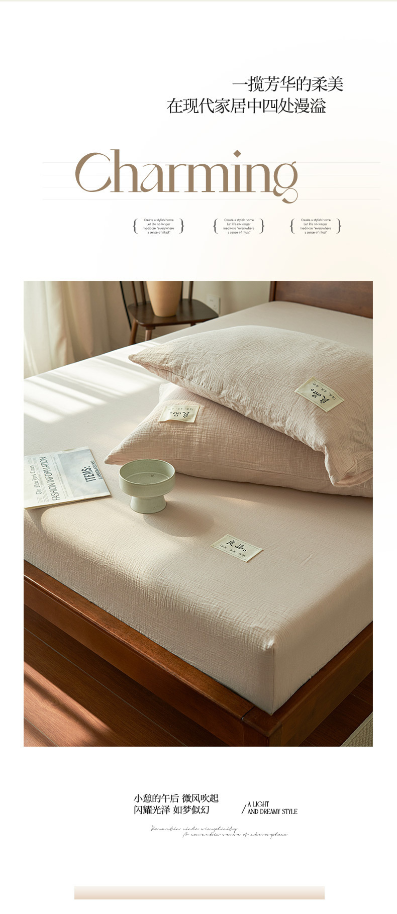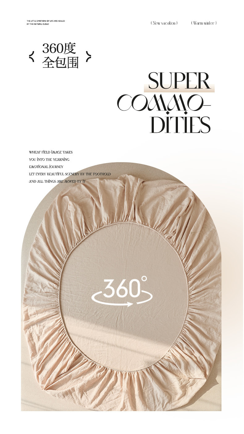 | Especificaciones de tamaño | Una cama de una sola pieza 120x200cm [apropiable para 4 - 25 de espesor de cama], una cama de una sola pieza 150x200cm [apropiable para 4 - 25 de espesor de cama], una cama de una sola pieza 180x200cm [apropiable para 4 - 25 de espesor de cama de 200x220cm [apropiable para 4 - 25 de espesor de cama] Set de tres piezas de cama de 180x200cm + dos cubiertas de almohada del mismo tipo, set de tres piezas de cama de 200x220cm + dos cubiertas de almohada del mismo tipo. |