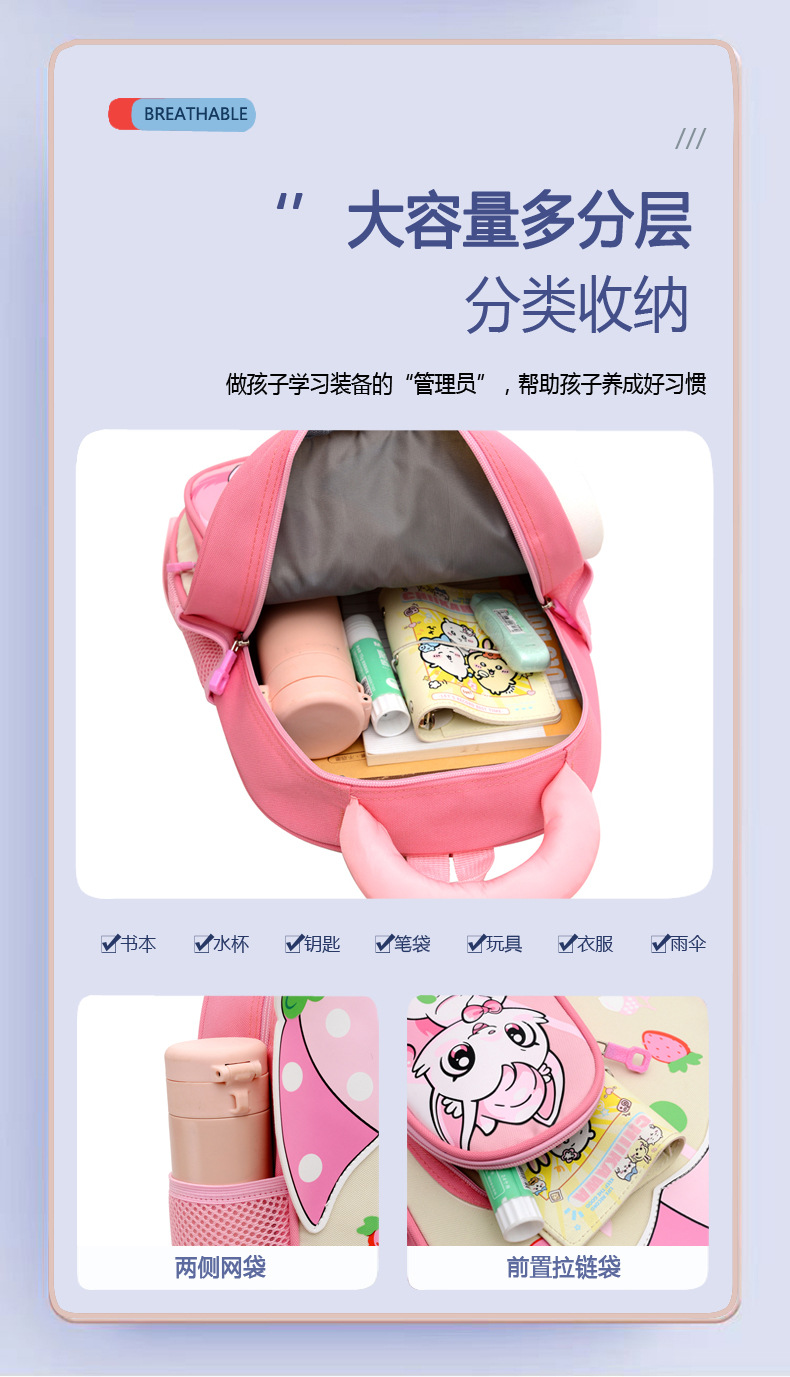 Mochila infantil de dibujos animados mochila de jardín de infantes nueva mochila de dos usos para niñas mochila transpirable preescolar para niños