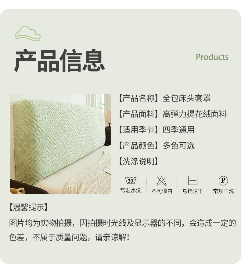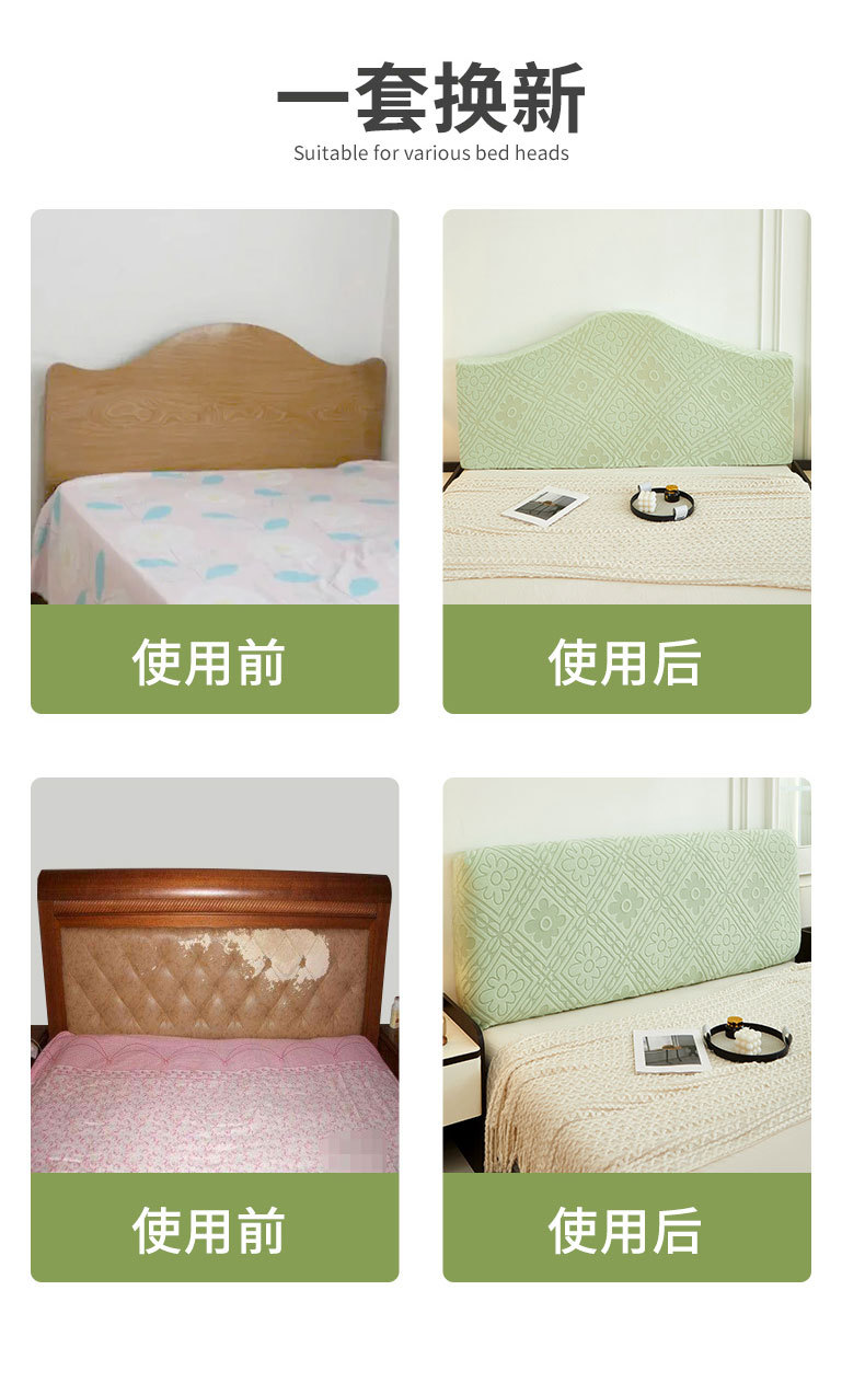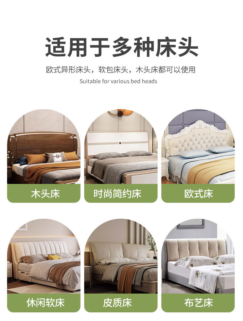 | Tamaño | 1.2 M [adecuado para cabecera de 1.0 - 1.2m], 1.5m [adecuado para cabecera de 1.3 - 1.5m], 1.8m [adecuado para cabecera de 1.6 - 1.8m], 2.0m [adecuado para cabecera de 1.9 - 2.0m], 2.2m [adecuado para cabecera de 2.1 - 2.2m], [la longitud de medición de la cabecera de la cama será la longitud más larga], [la altura de la cabecera de la cama dentro de 80cm] |