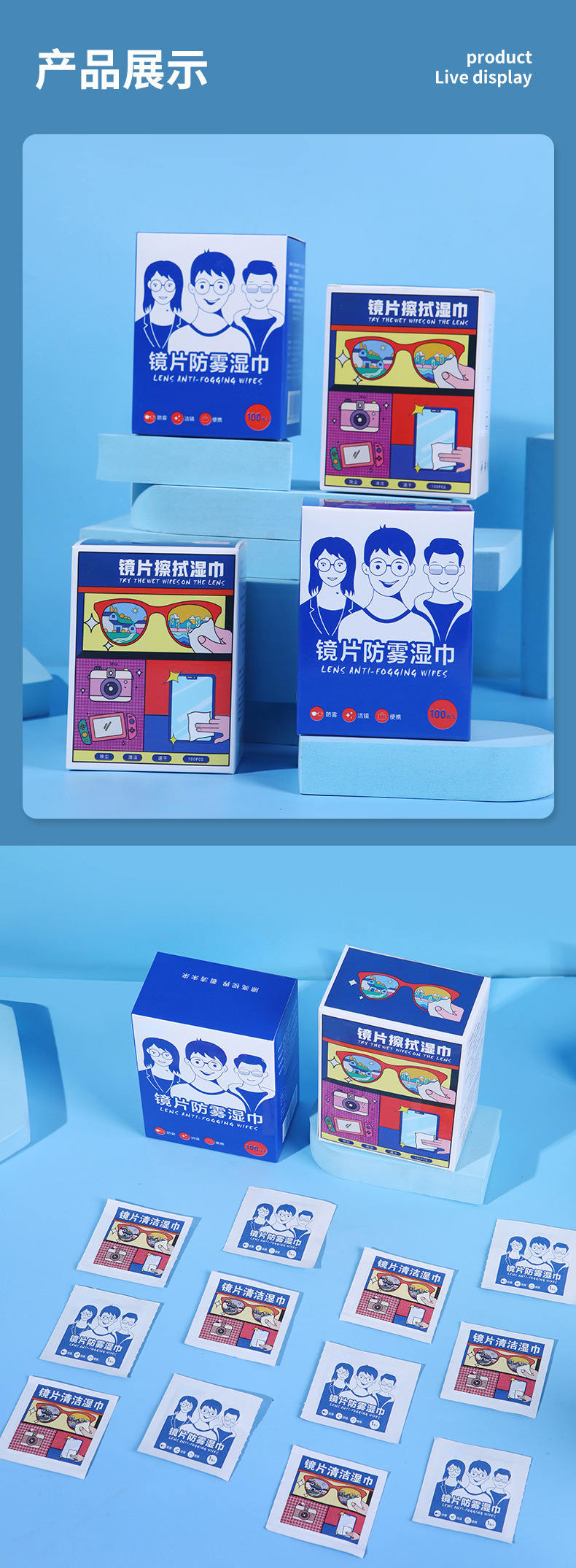 Lentes limpias toallitas anti-fog toallitas de gafas toallitas de papel desechable toallitas de gafas toallitas de pantalla de teléfono celular toallitas de lente