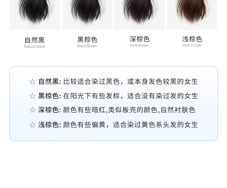 颜色:棕黑色 自然黑 深棕色 浅棕色