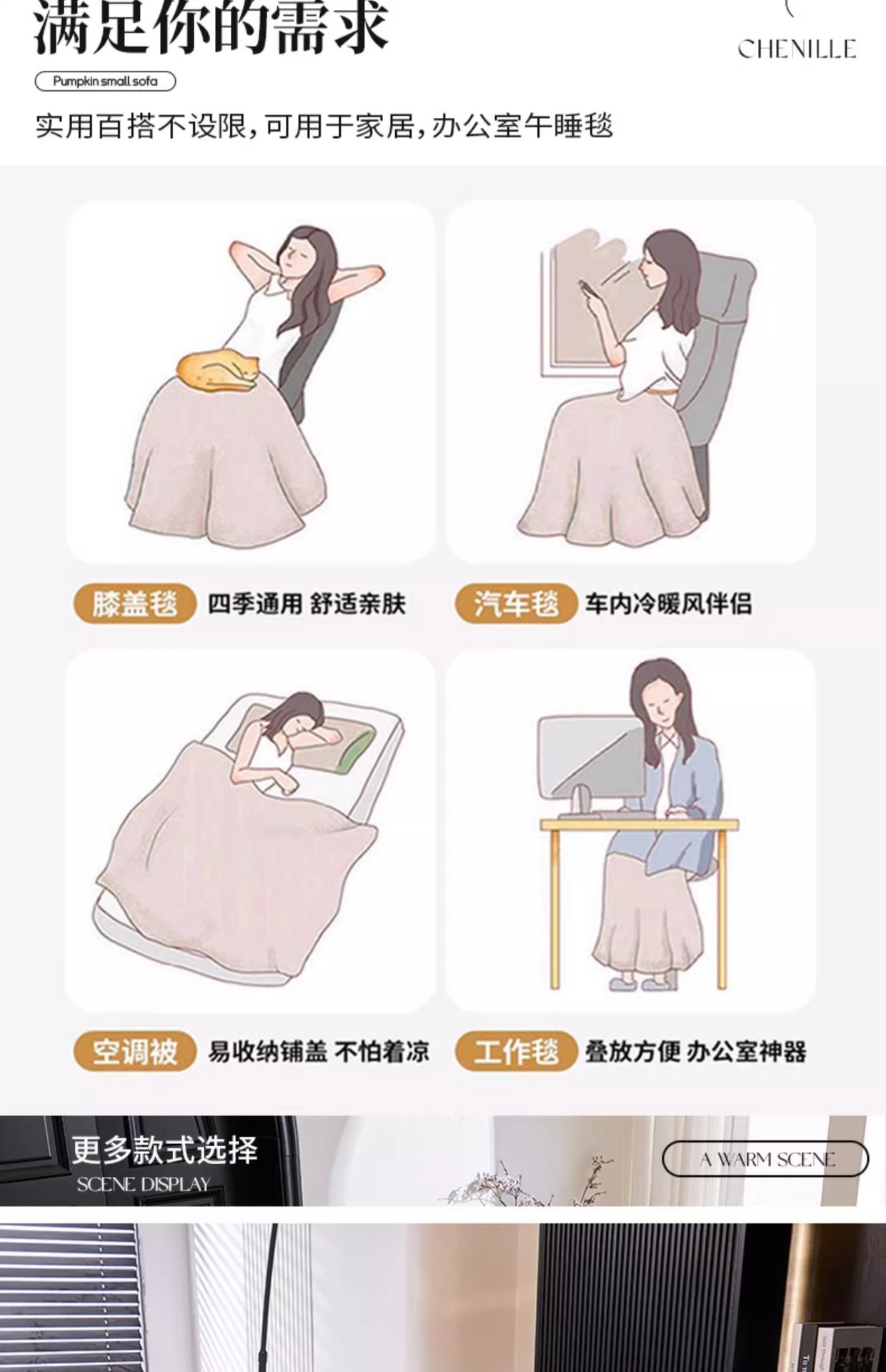 | Colores | Nieman-Red Bean | Tejido de chenilla,Coriander-Apple Green | No puedo dejarlo,Coriander-Cream Orange | Un segundo trae una atmósfera relajada,Café de té con leche de cilantro | Ambiente hogareño minimalista,Pabellón Nieman-Manxiang | Crea una sala de estar ideal |