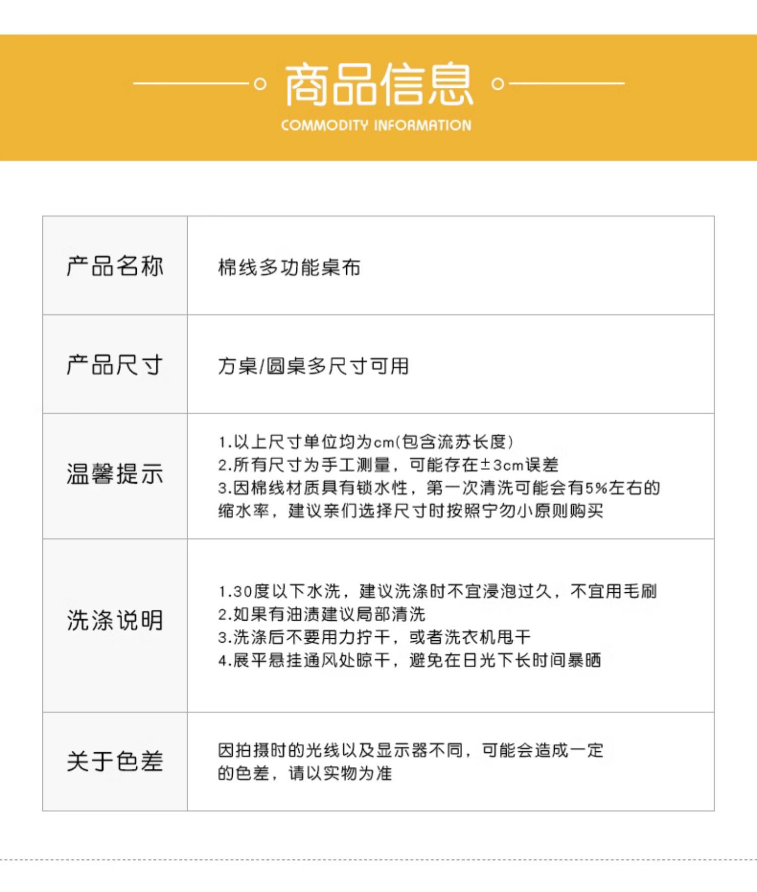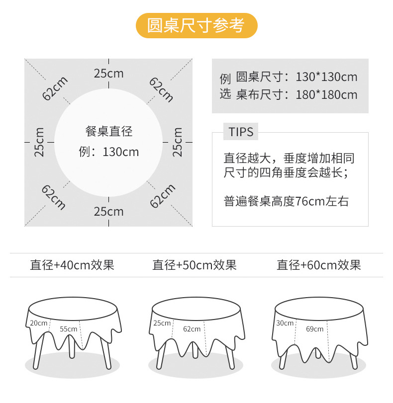 | Tamaño | 90x90 cm (para mesas redondas / cuadradas), 90x120cm (para mesas largas), 90x150cm (para mesas largas), 90x180cm (para mesas largas), 90x210cm (para mesas largas), 90x240cm (para mesas largas), 130x130cm (para mesas redondas / cuadradas), 130x180cm (para mesas largas), 130x230cm (para mesas largas), 130x260cm (para mesas largas), 180x180cm (para mesas cuadradas / mesas redondas), 180x230cm (para mesas largas / sofá), 180x260cm (para mesas largas / sofá), 180x300cm (para mesas largas / sofá), 180x340cm (para mesas largas / sofá), 230x250cm (para mesas largas / sofá), 230x275cm (para mesas largas / sofá), 230x340cm (para mesas / sofá) |
