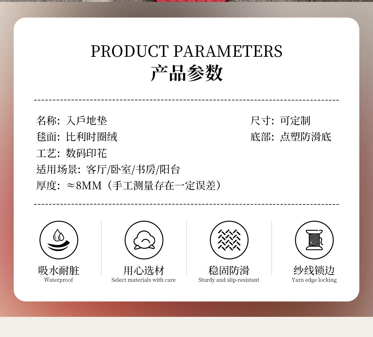 | Colores | Gris-seguro y suave,Rojo-Entrada y salida,Gris-Buena suerte,Rojo-buena suerte,La alegría de la inauguración de la casa blanca,Casa roja-Take Xifu,Gris-todo lo mejor,Gris-todo alegría,Rojo-alegría,Blanco-alegría y paz |