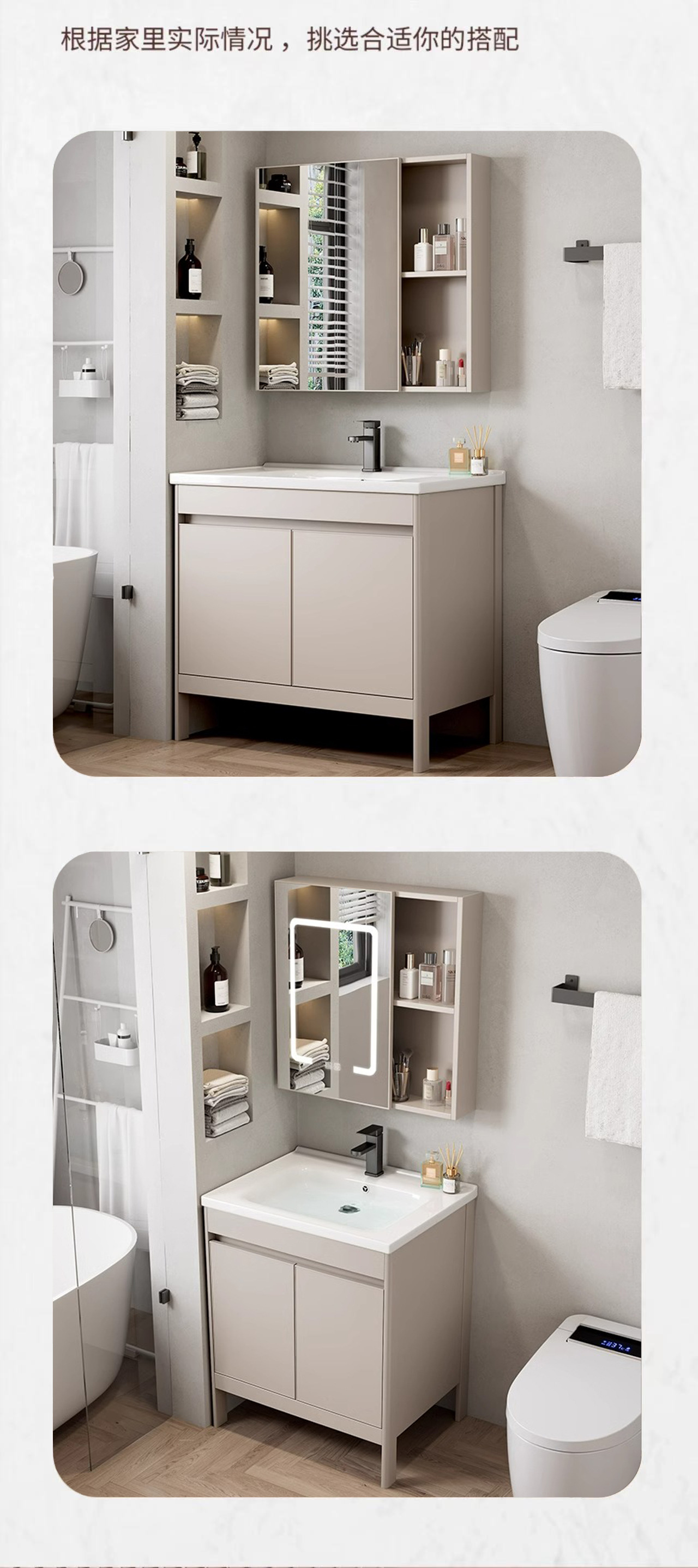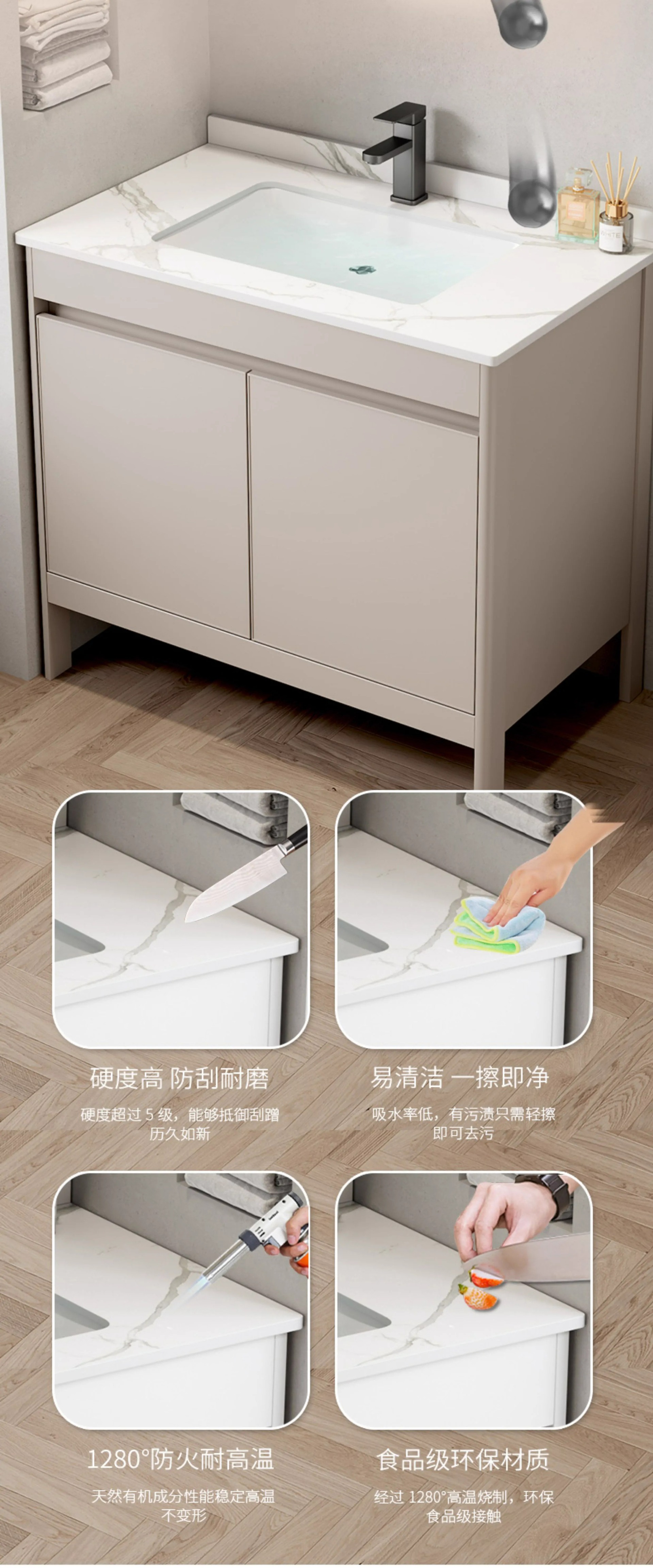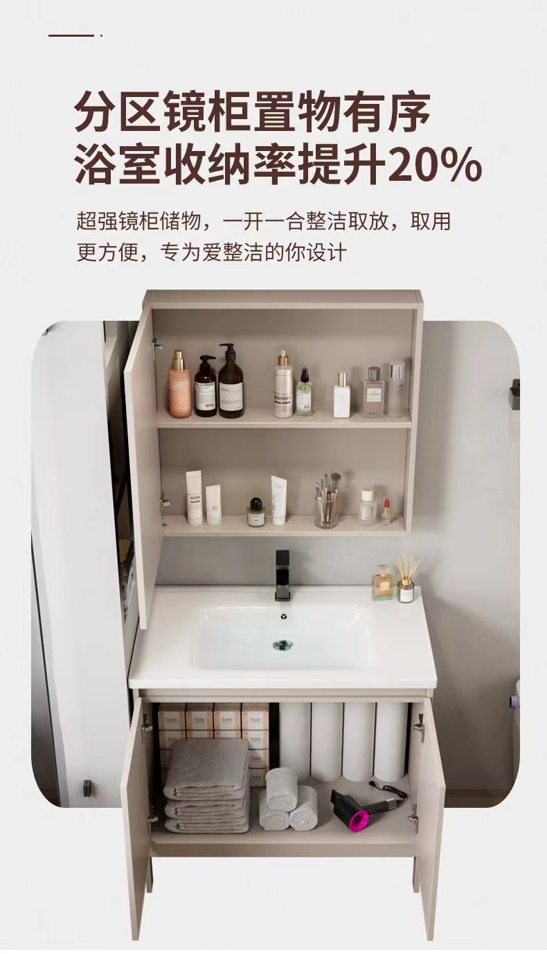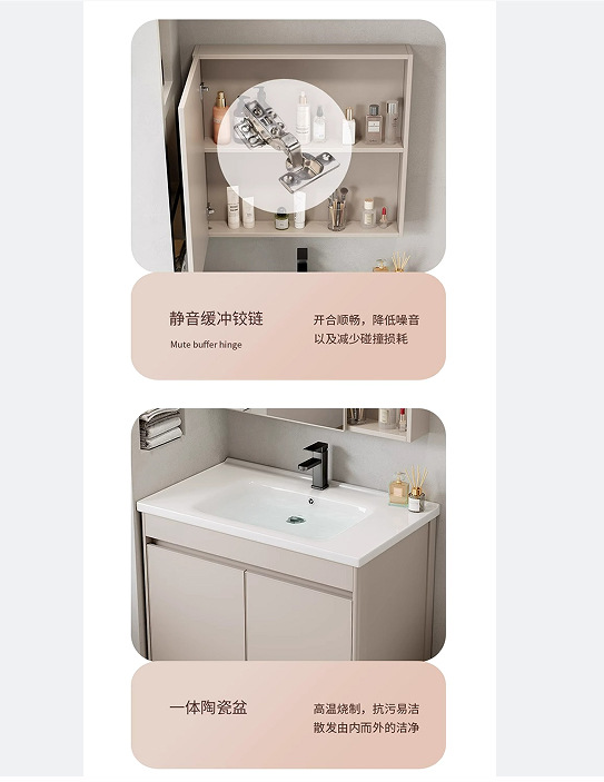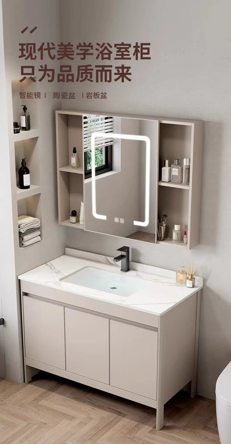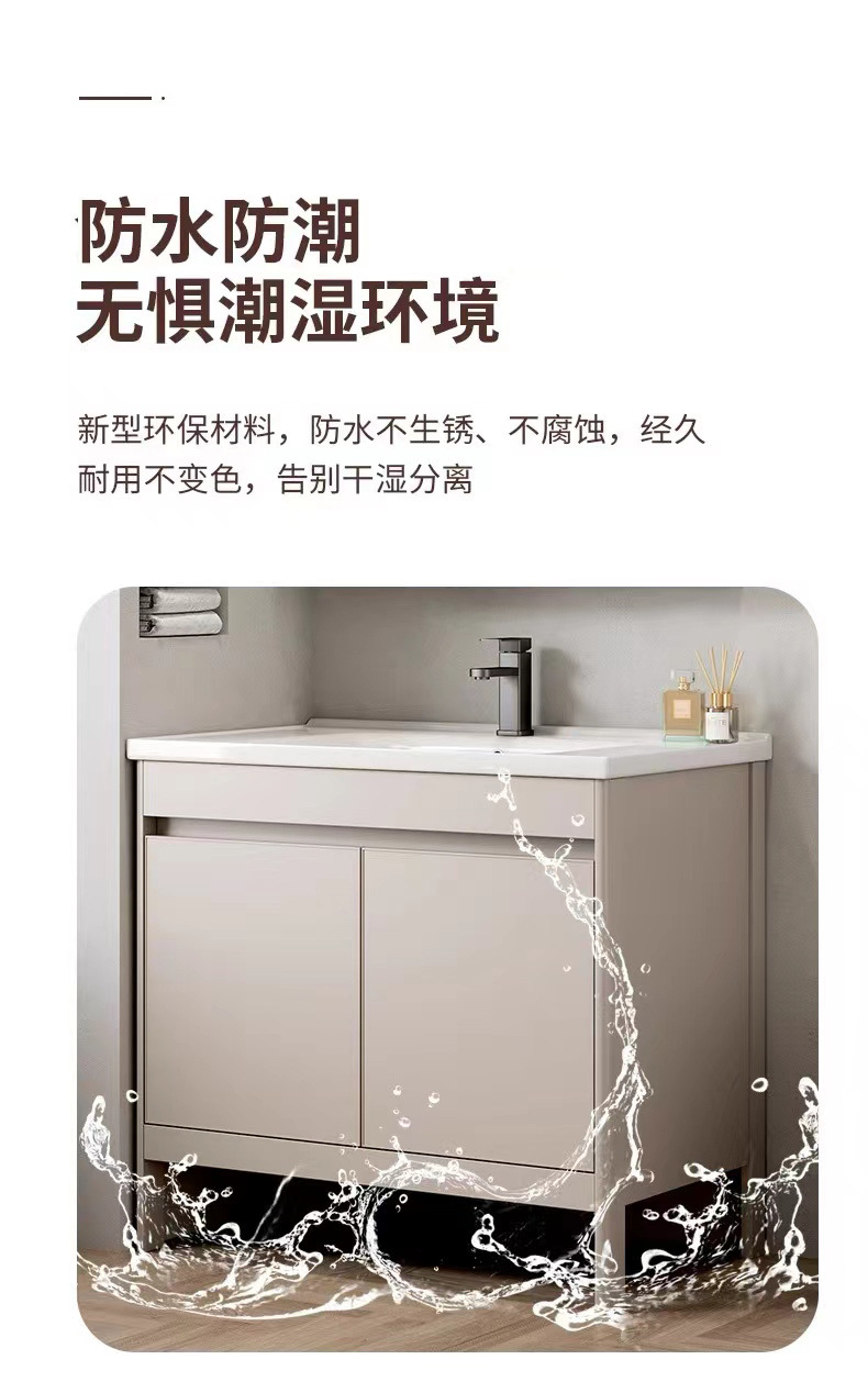 Combinación de gabinete de baño engrosado de aluminio espacial, gabinete de baño de cerámica, lavabo todo en uno, lavabo de piso, combinación de gabinete de lavabo