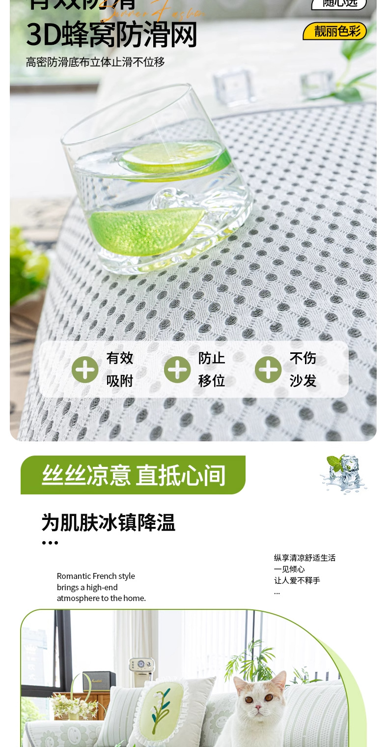 | Colores | Verde claro [estilo romántico con borde ondulado en forma especial],Gris claro [fresco y refrescante para todas las edades],Azul claro [fondo de panal transpirable antideslizante y transpirable],Color café claro [fresco en verano y fresco en verano] |
