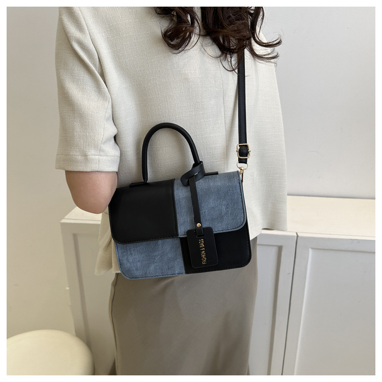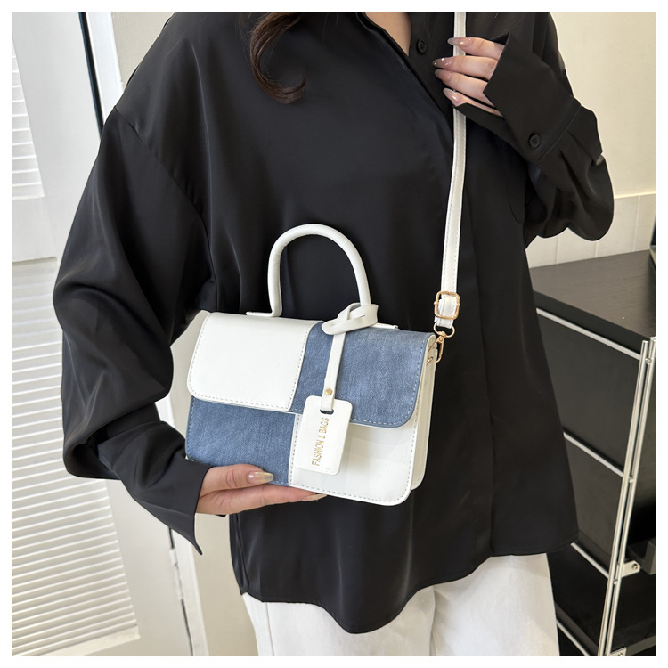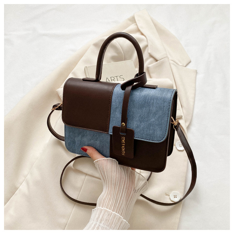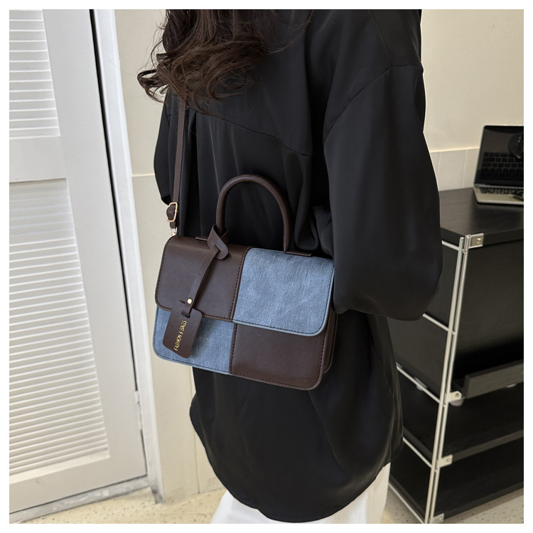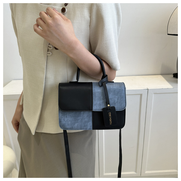 Bolso retro estilo Hong Kong 2025 verano nuevo bolso femenino estilo universitario bolso de mezclilla bolso de mensajero de color de contraste casual