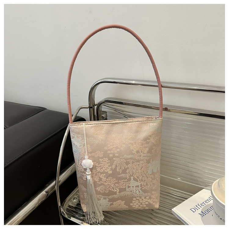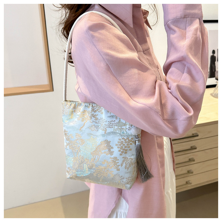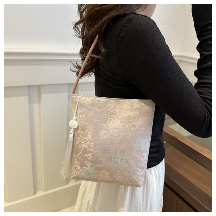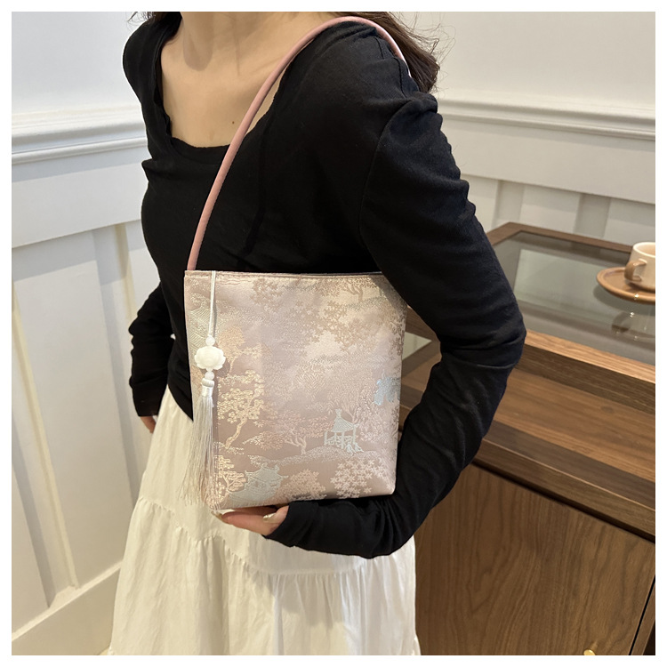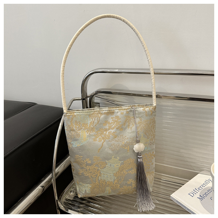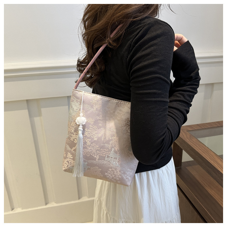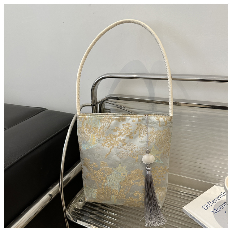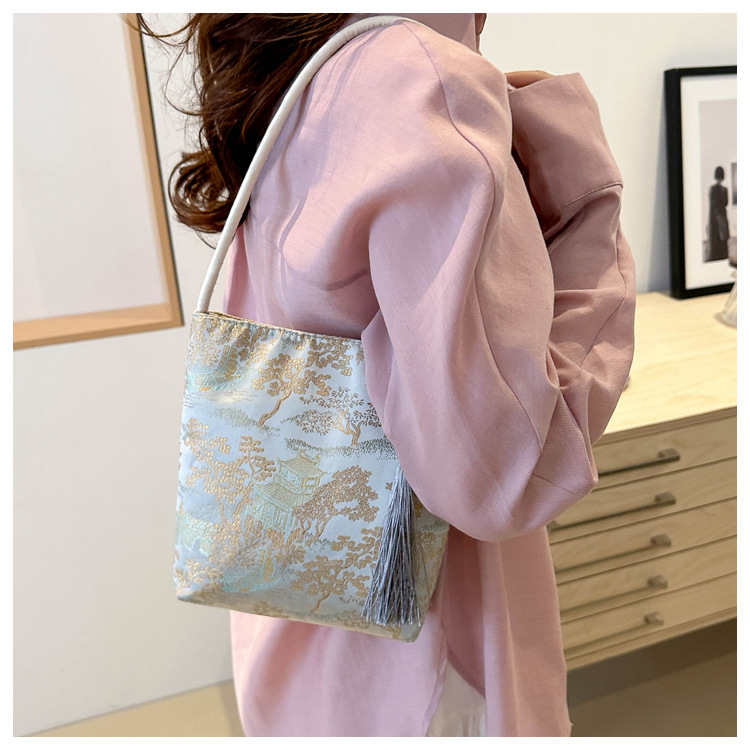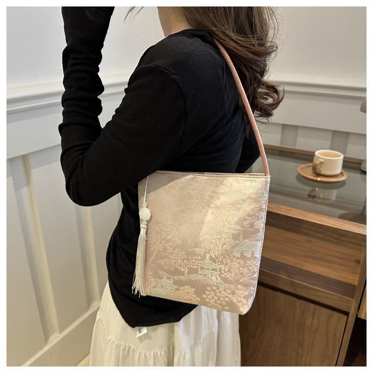 Guofeng shoulder bracket 2024 nuevo estilo de estilo chino nuevo estilo de seda alta sensación de borda shoulder tote para mujeres