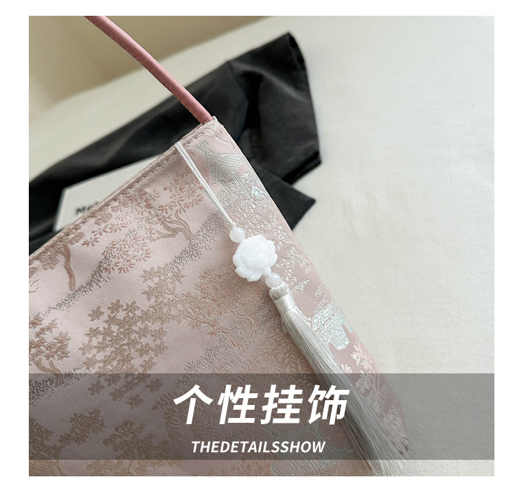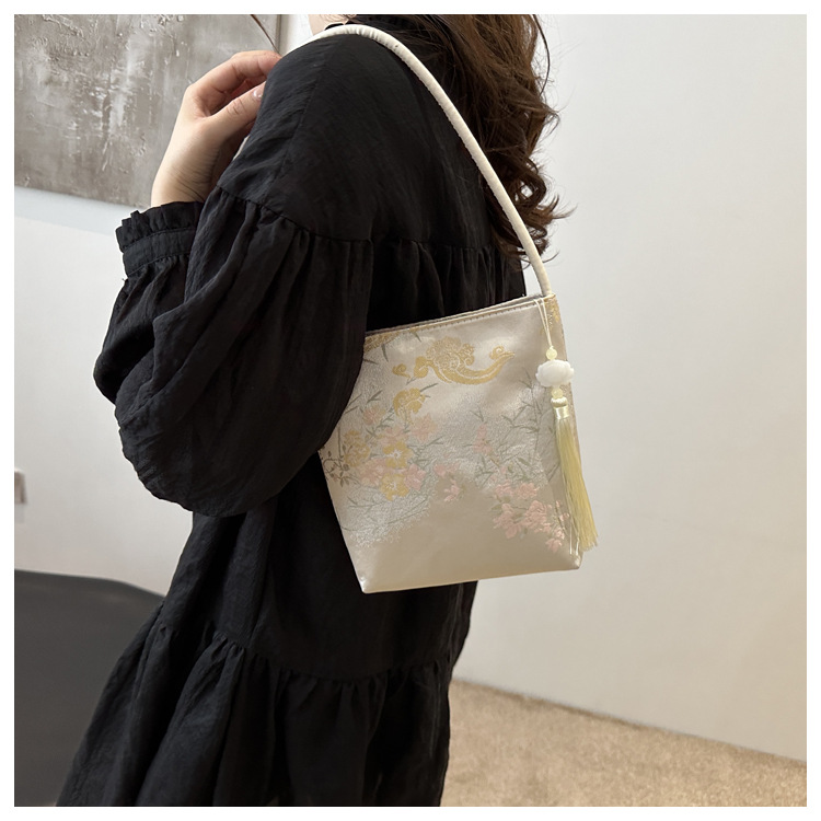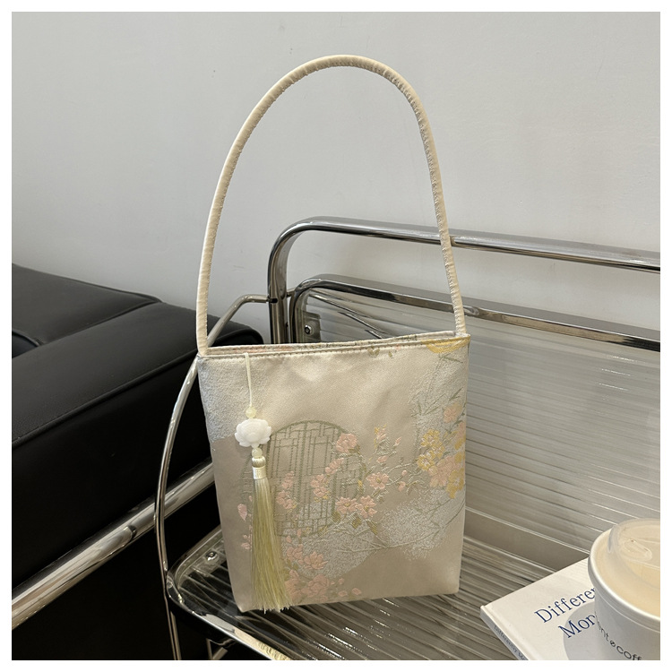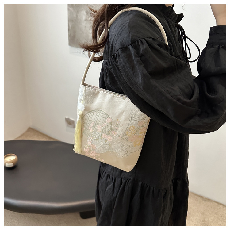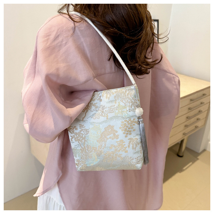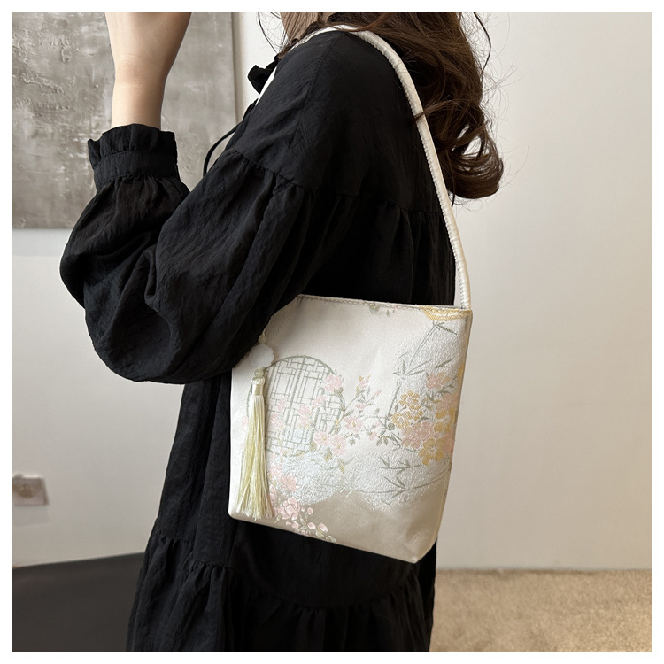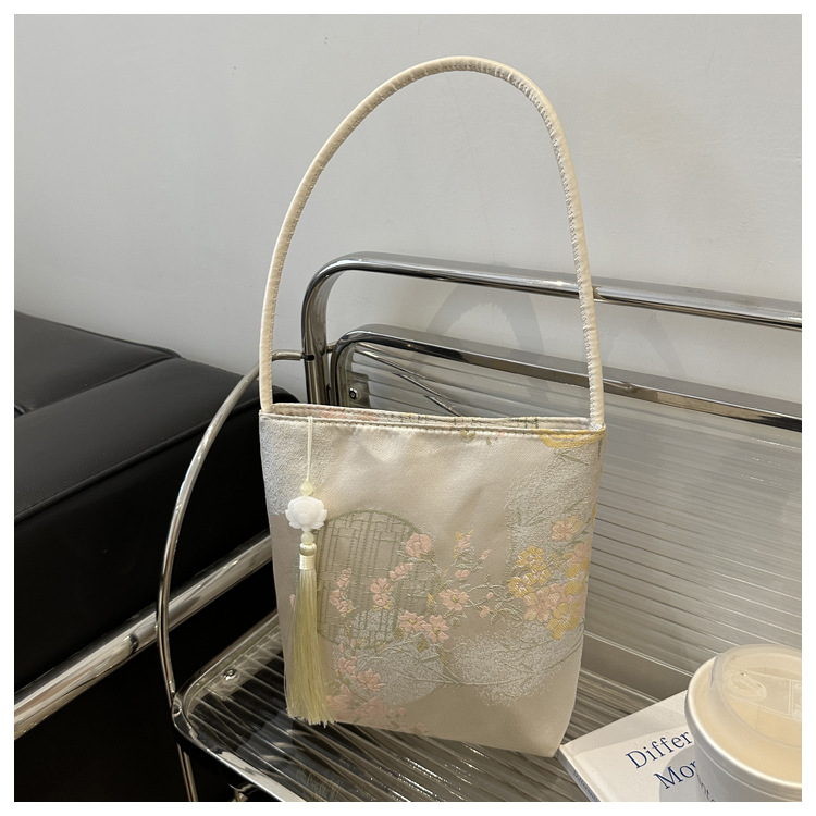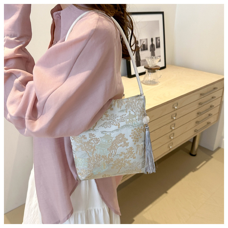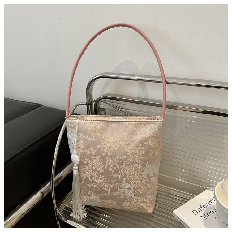 Guofeng shoulder bracket 2024 nuevo estilo de estilo chino nuevo estilo de seda alta sensación de borda shoulder tote para mujeres