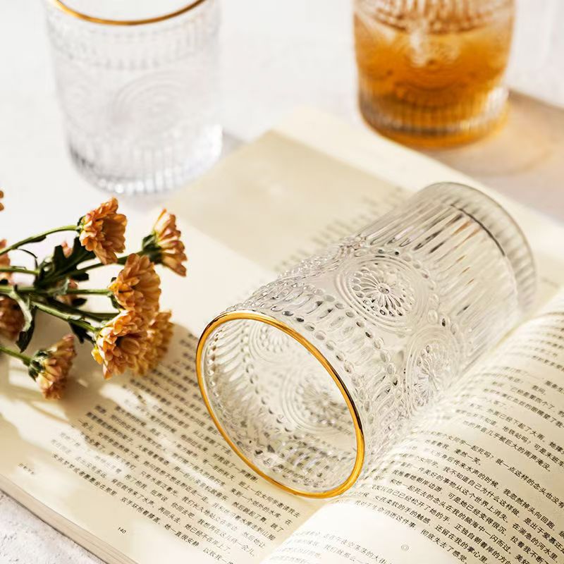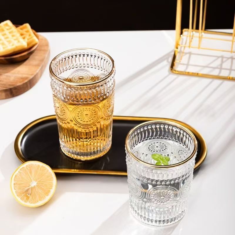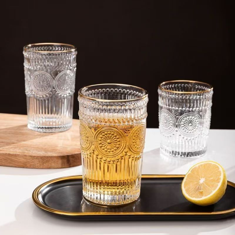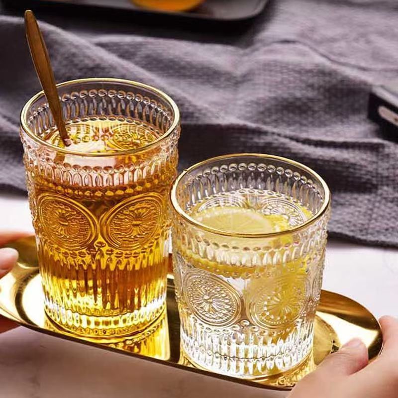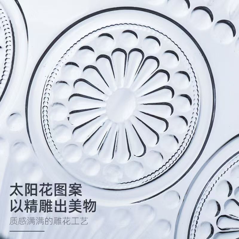 | Color | Transparente bajo, borde dorado bajo, borde dorado alto, borde dorado alto, transparente con las manos, borde dorado con las manos, flores de sol de fondo plano, cuchara de cerezo |