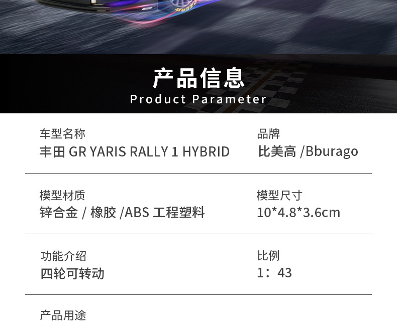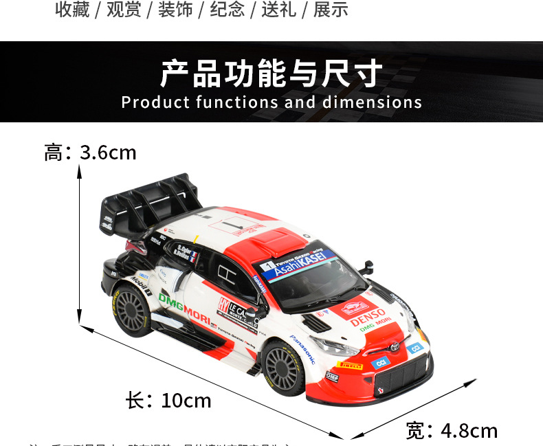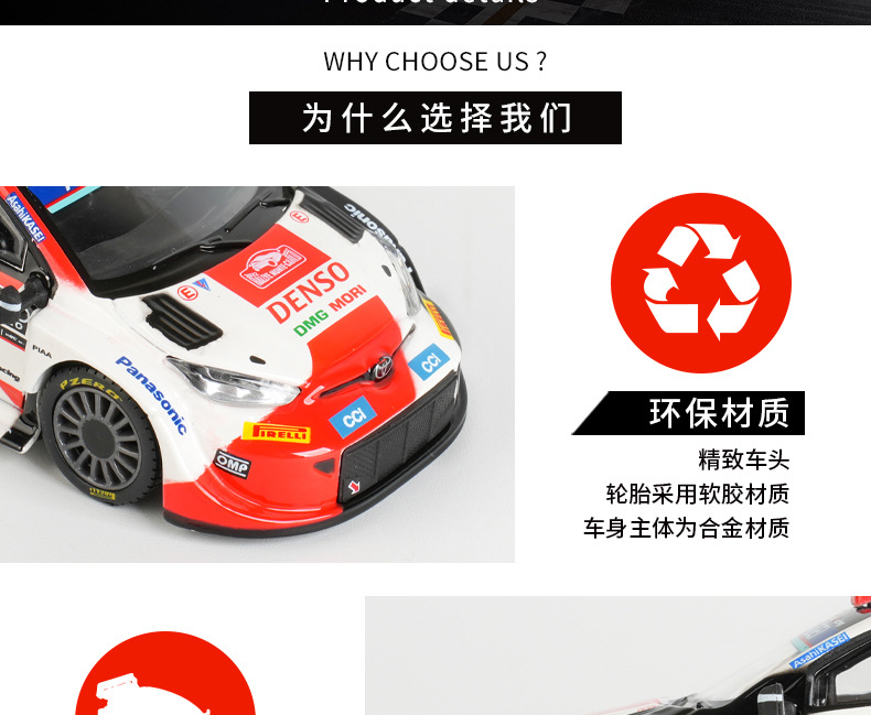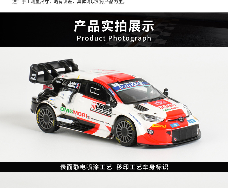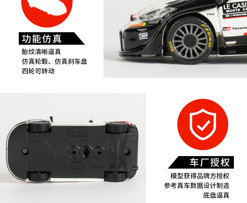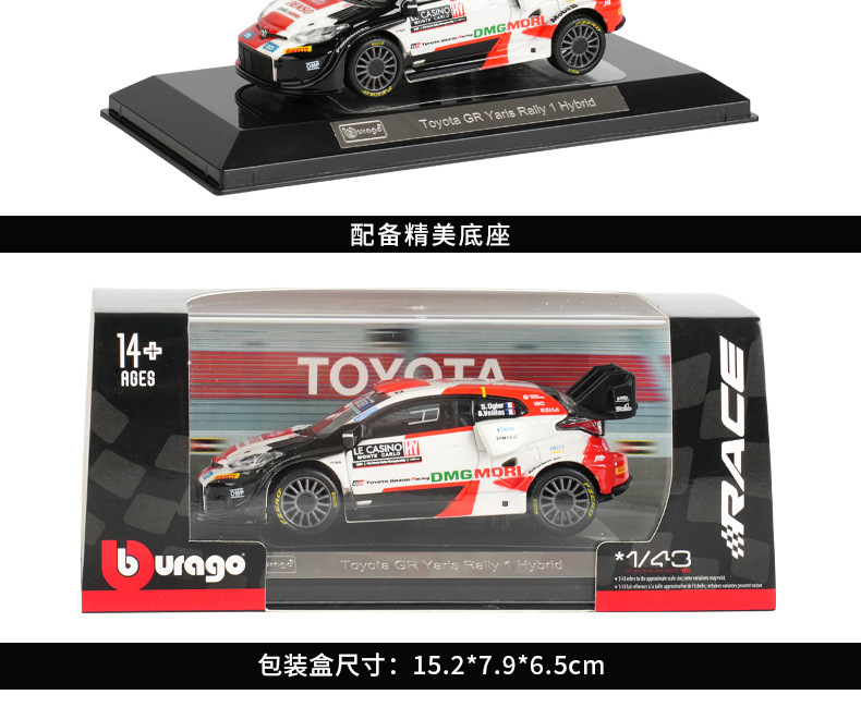 1: 43 Toyota GR Yaris Rally 1 Hybrid Simulación de carreras modelo de automóvil de aleación