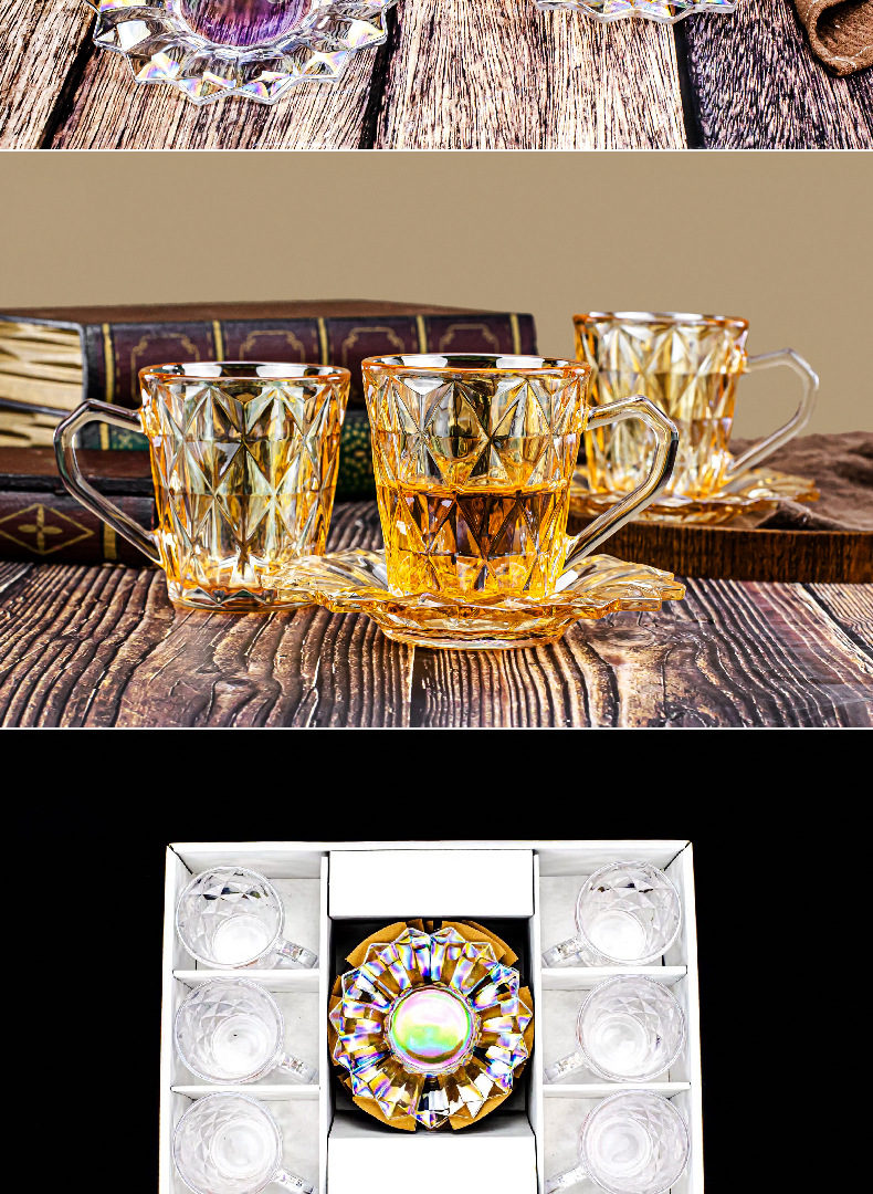 | Colores | Taza pequeña,Taza de mango grande,Blanco 6 tazas 6 platillos,Colorido 6 tazas 6 platos,6 tazas de oro 6 platos |