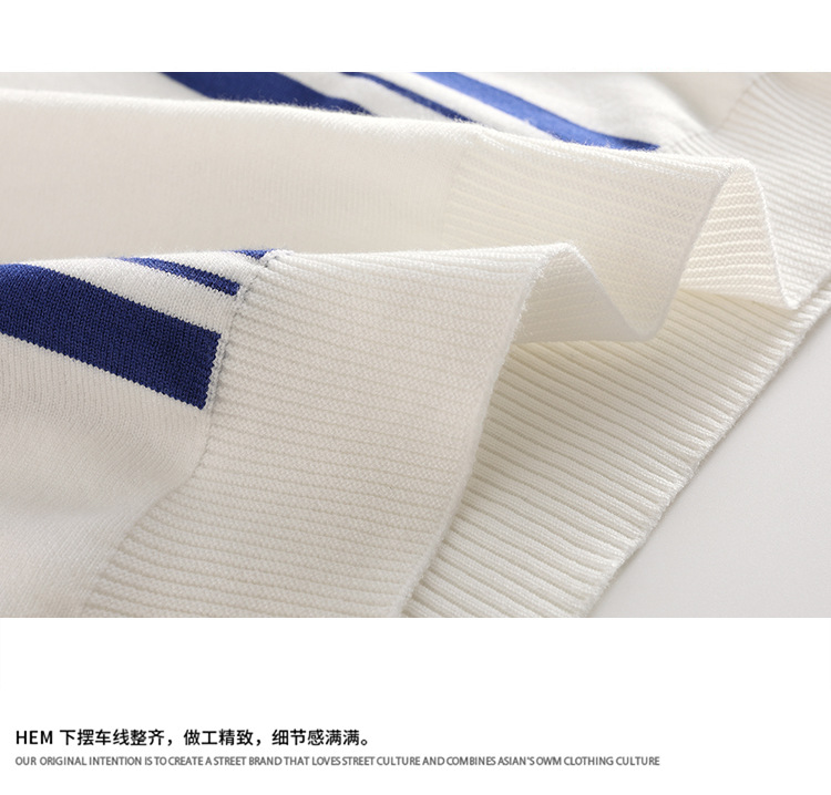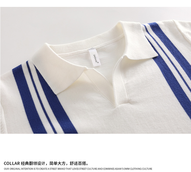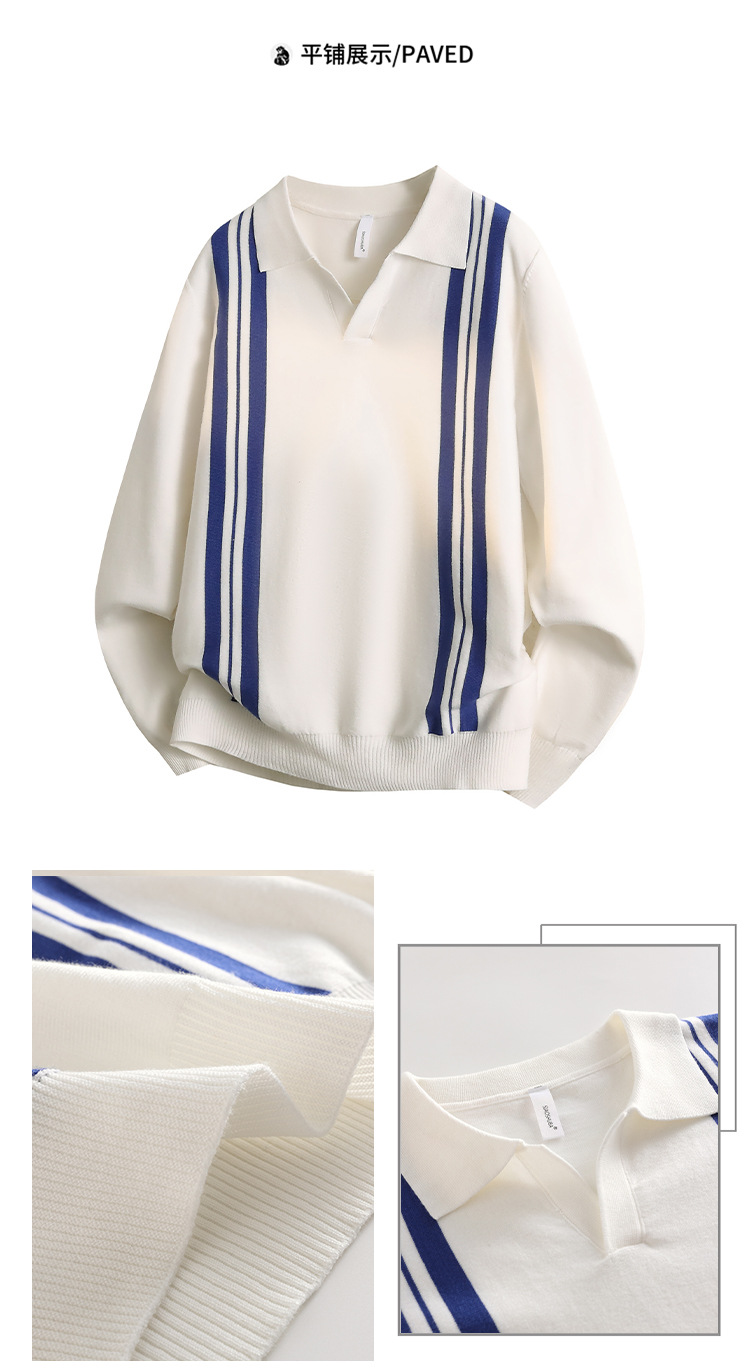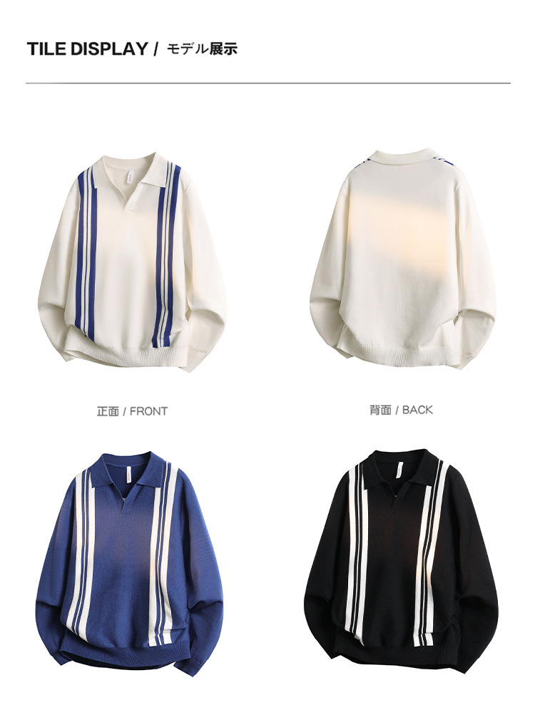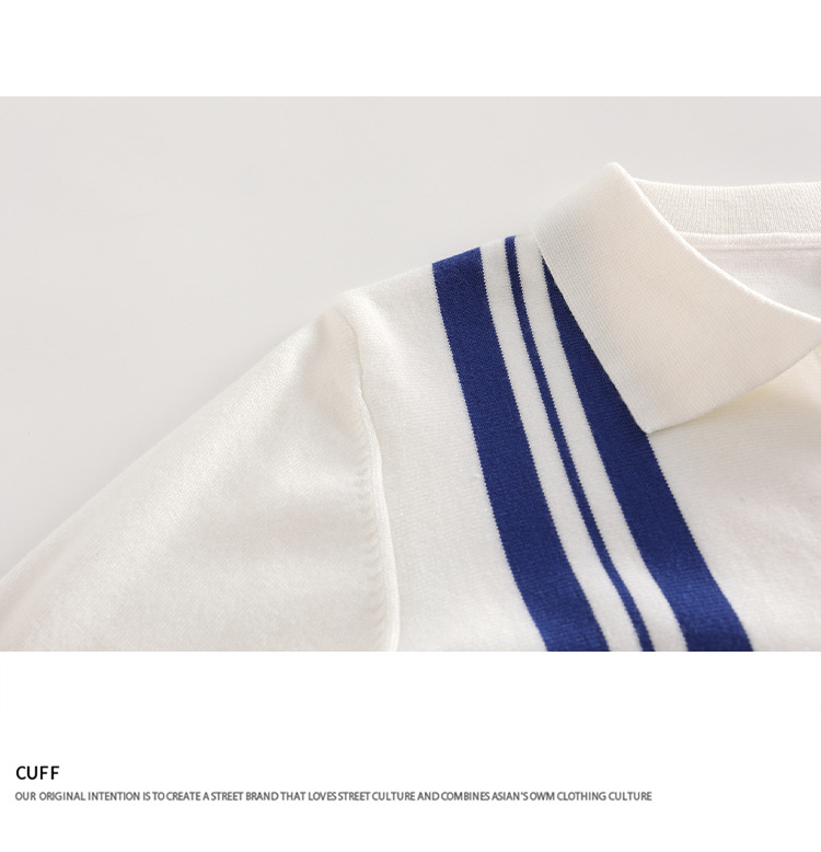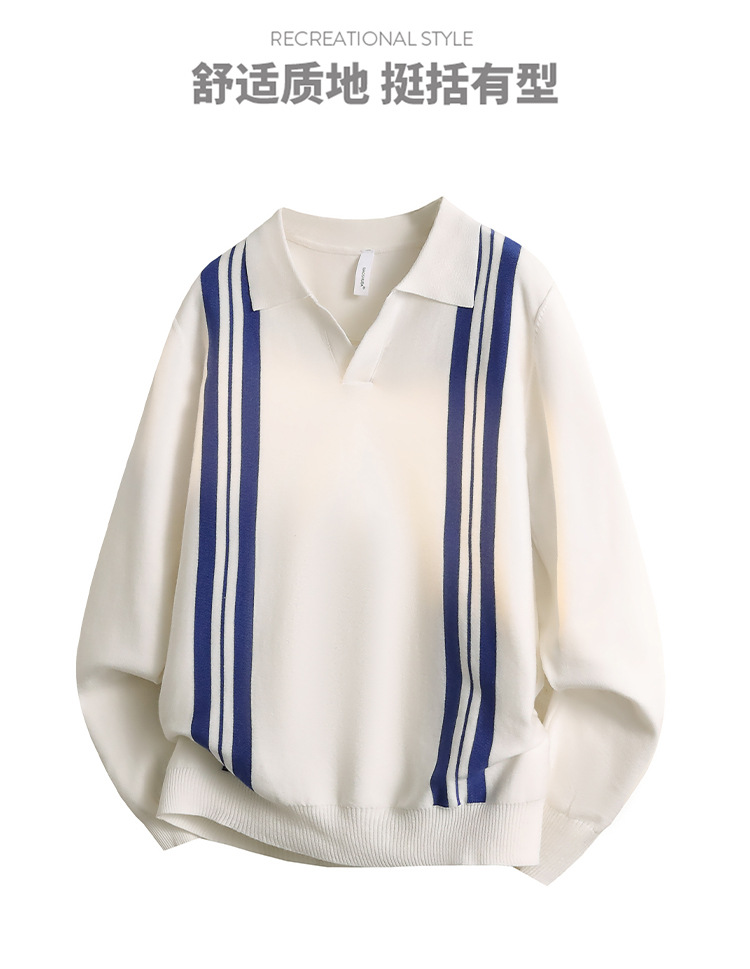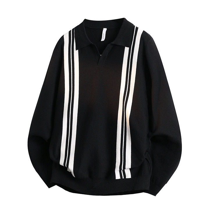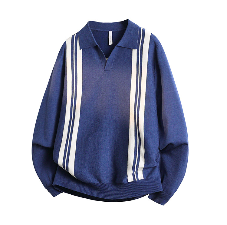 Otoño y invierno ligero maduro moda hombre con solapa suéter delgado tendencia de estilo británico rayas de color contrastante camisa polo de punto casual