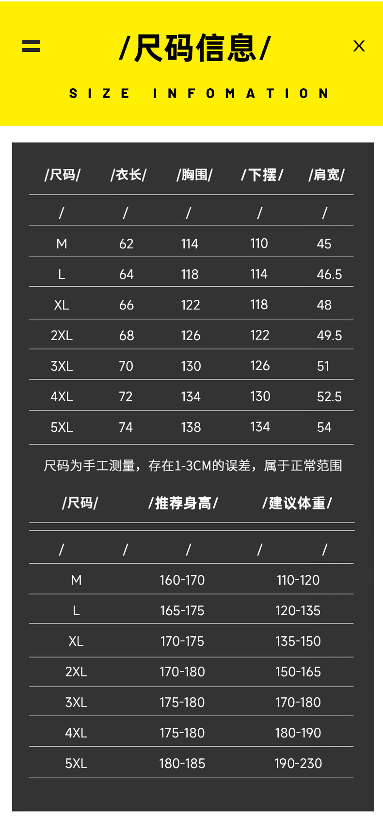 | Talla | M,L,XL,2XL,3XL,4XL,5XL |