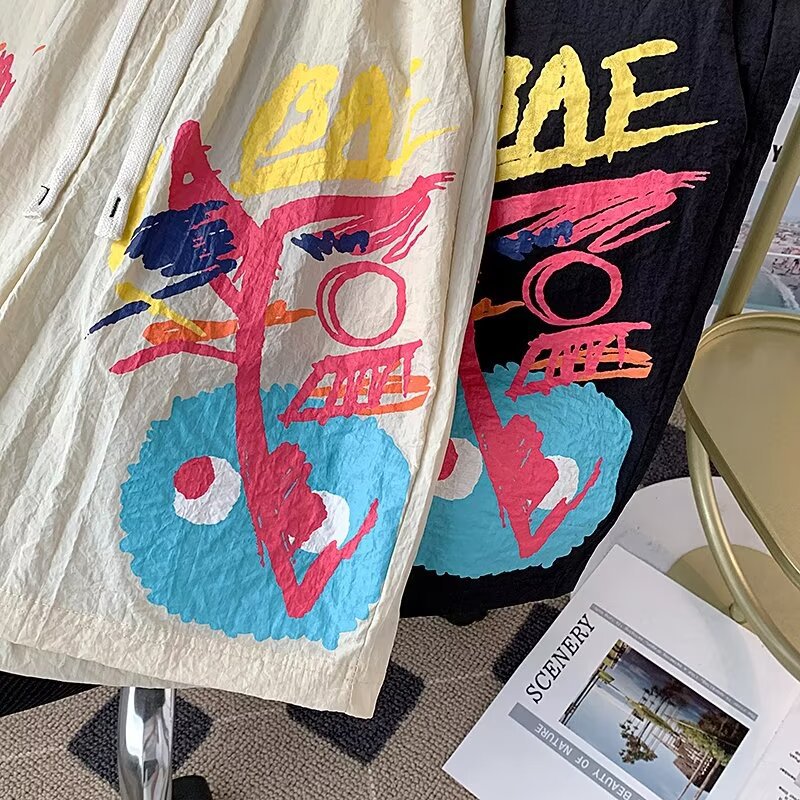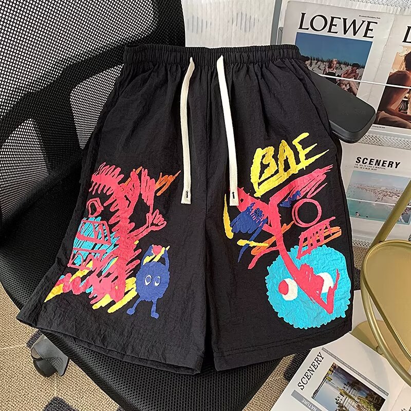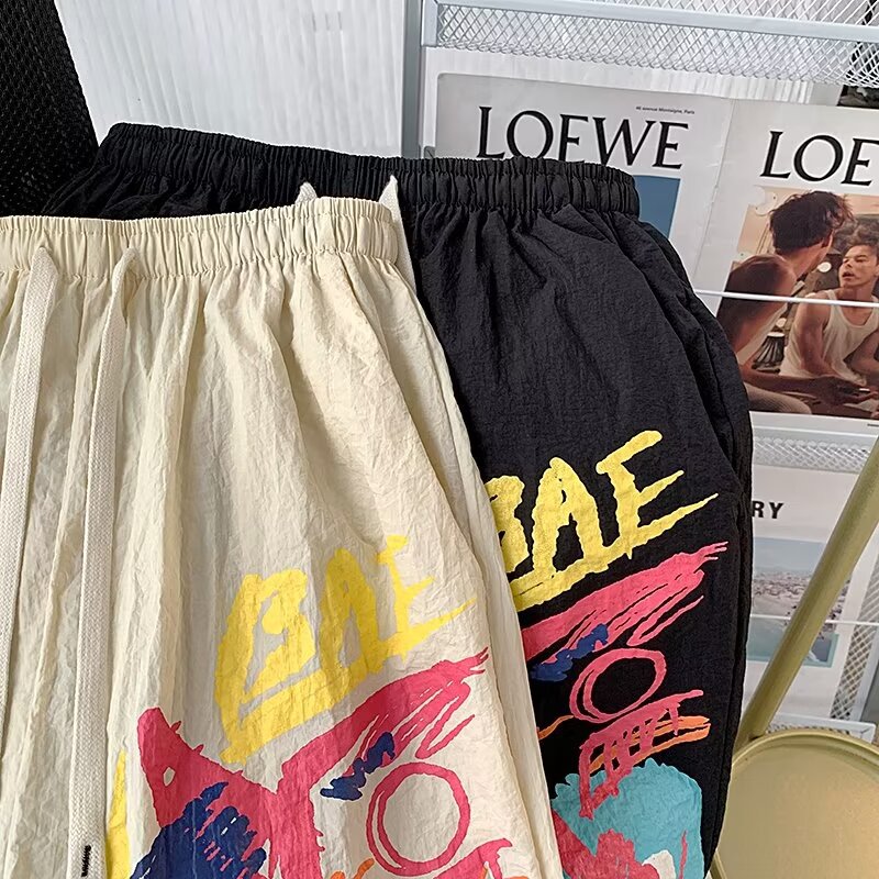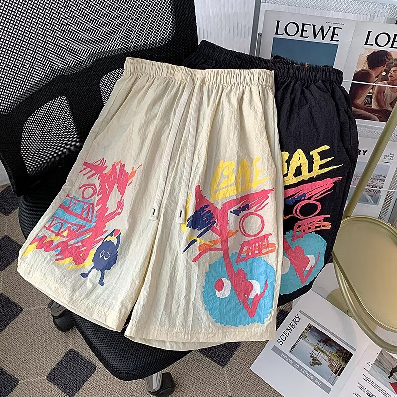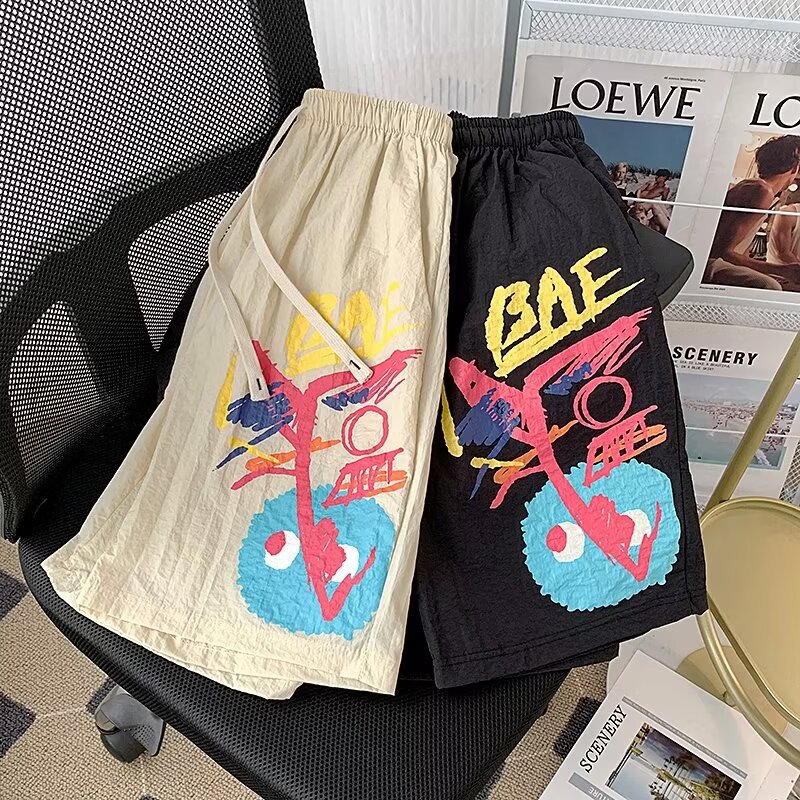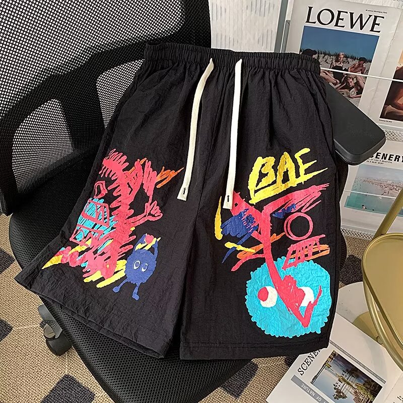 American Graffiti Casual Shorts Hombres Nuevos pantalones de verano de secado rápido de cinco puntos Pantalones de playa sueltos