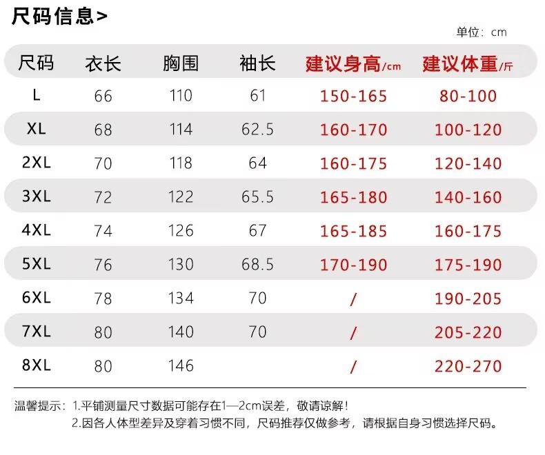 | Talla | M,L,XL,2XL,3XL,4XL,5XL,6XL,7XL,8XL |
