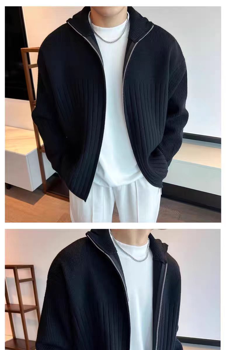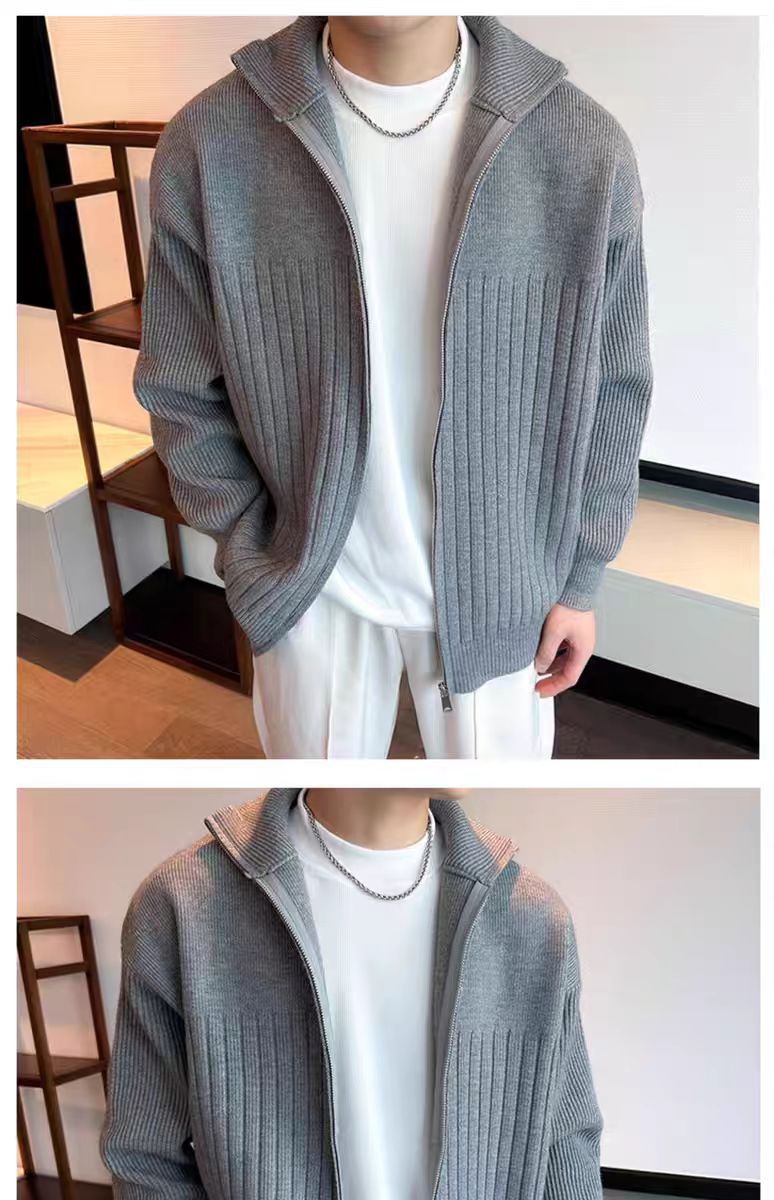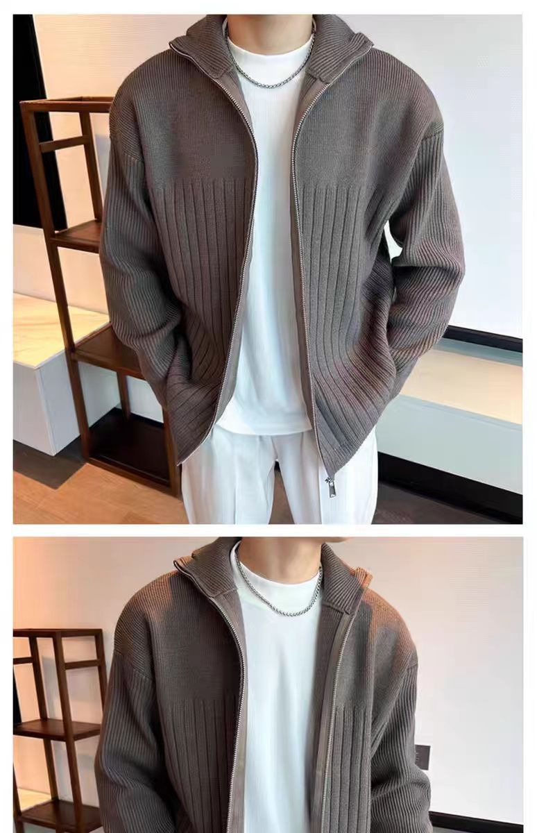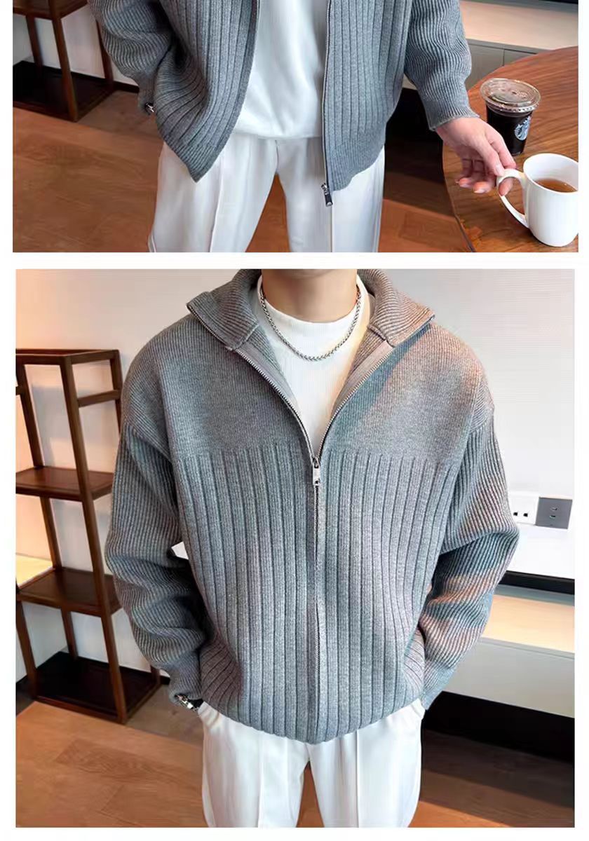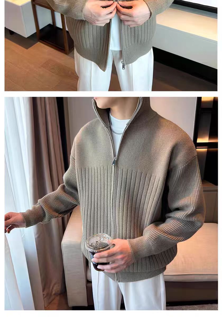Color sólido retro holga camisa de punto suéter de cuello alto de hombre con cremallera de cuello de moda cardigan chaqueta de alta calidad simple