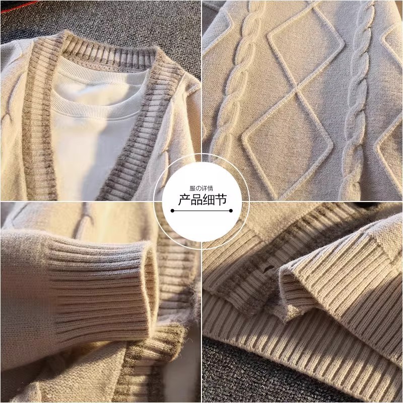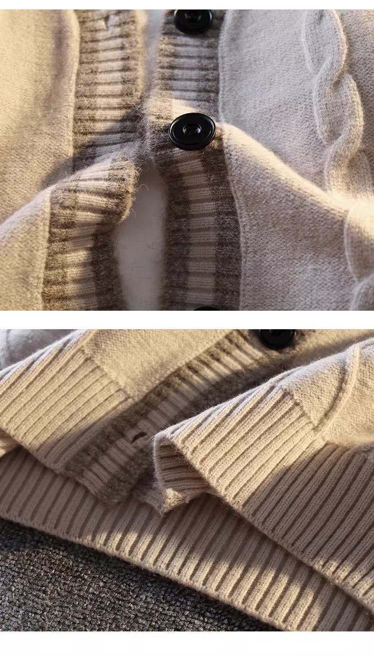 Nuevo abrigo de suéter engrosado con forro polar para hombre de estilo coreano casual cardigan suéter forrado de lana superior Otoño e Invierno moda