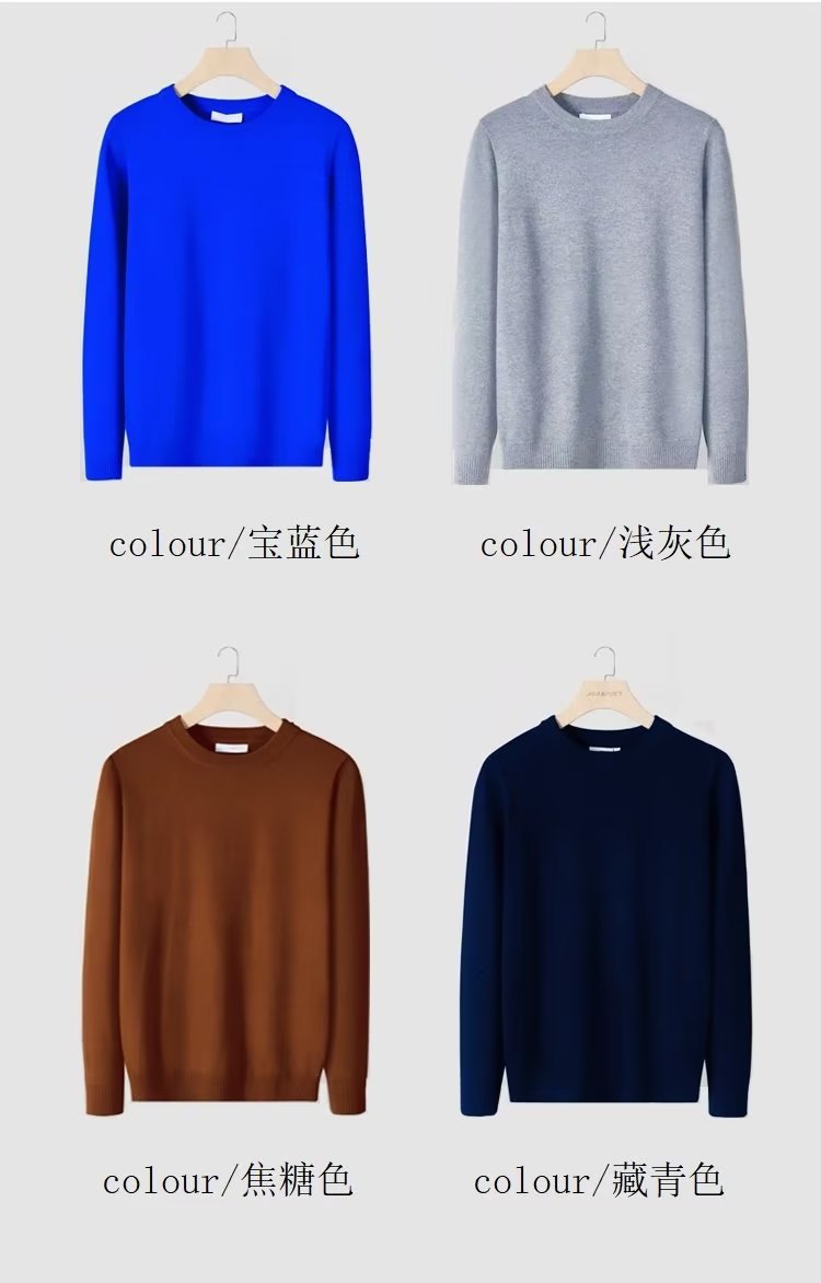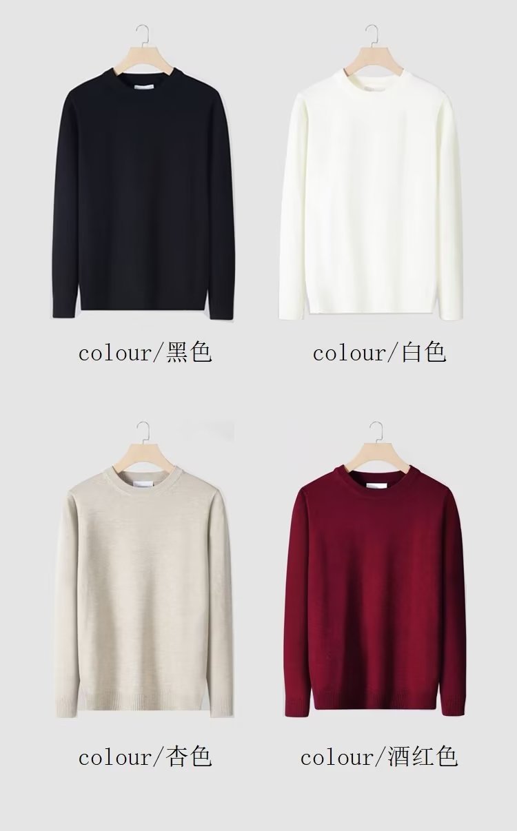 Hombres camisetas delgadas de punto de invierno jóvenes hombres cuello redondo de color sólido casual hoodie de manga larga suéter hombre transfronterizo mayorista