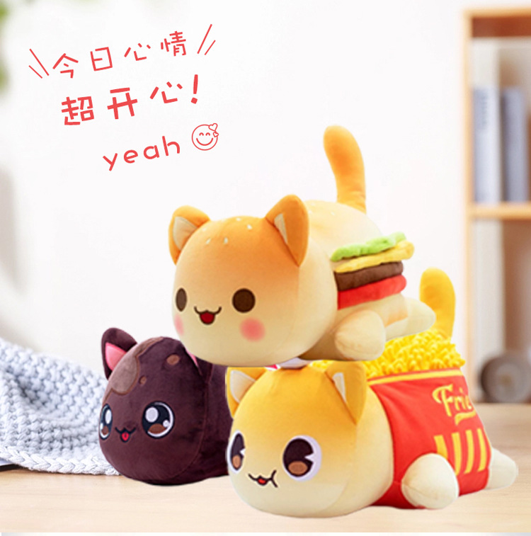 Nuevas papas fritas creativas, refresco, hamburguesa, peluche de gato, almohada de gato beta, en stock y listas para enviar inmediatamente.